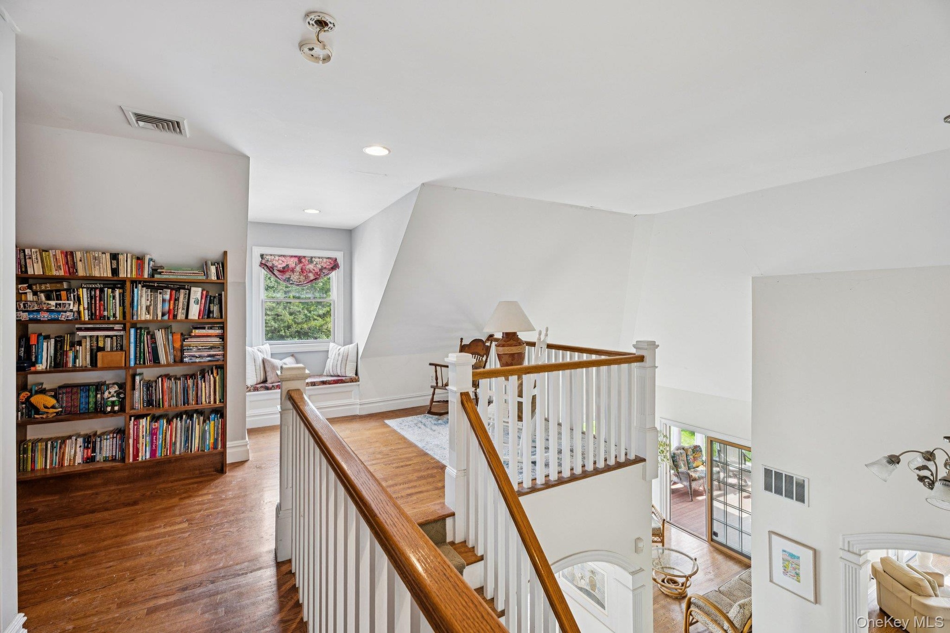 - A beautifully crafted built-in library on the second level, designed to complement the home’s sophistication and charm.