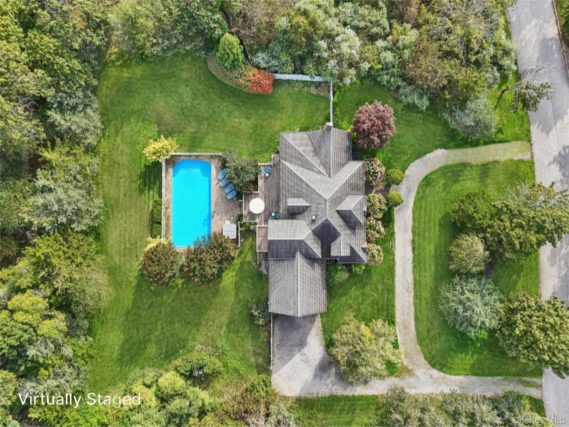 - A breathtaking aerial view capturing the full scope and beauty of the property. Virtually Staged to show open pool. Virtually Staged to show open pool