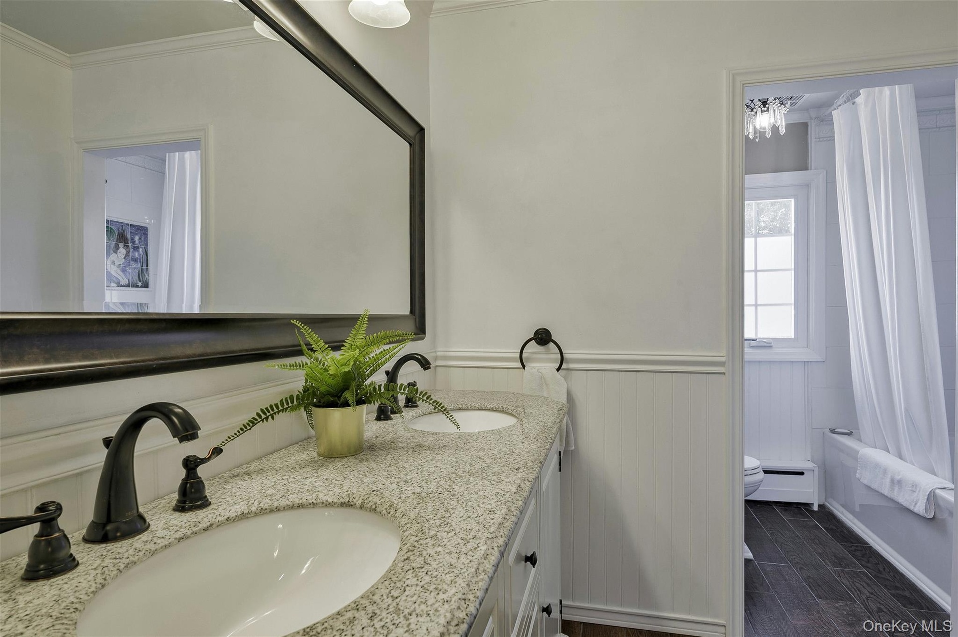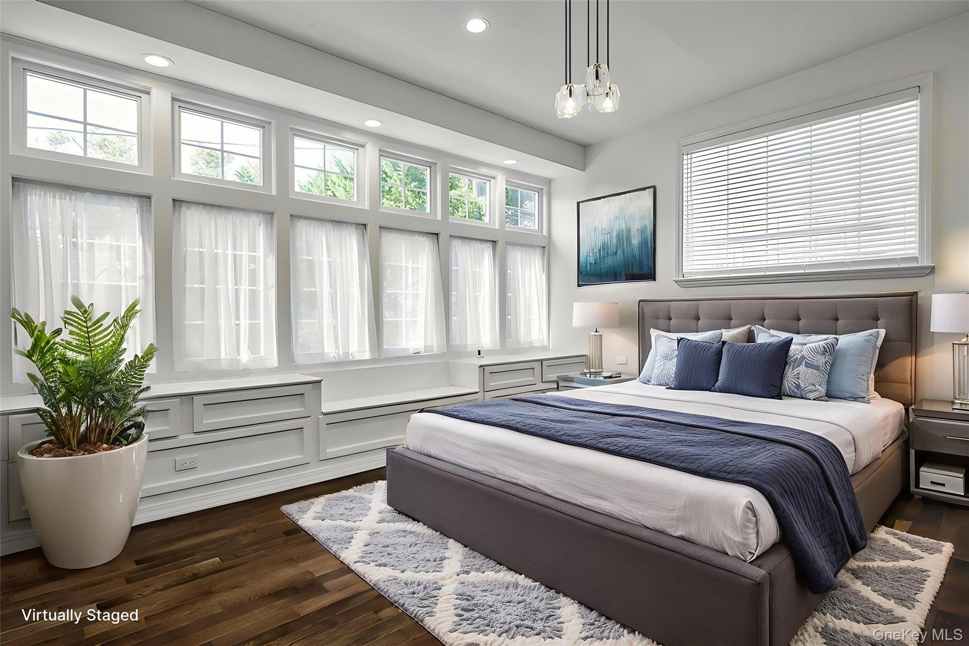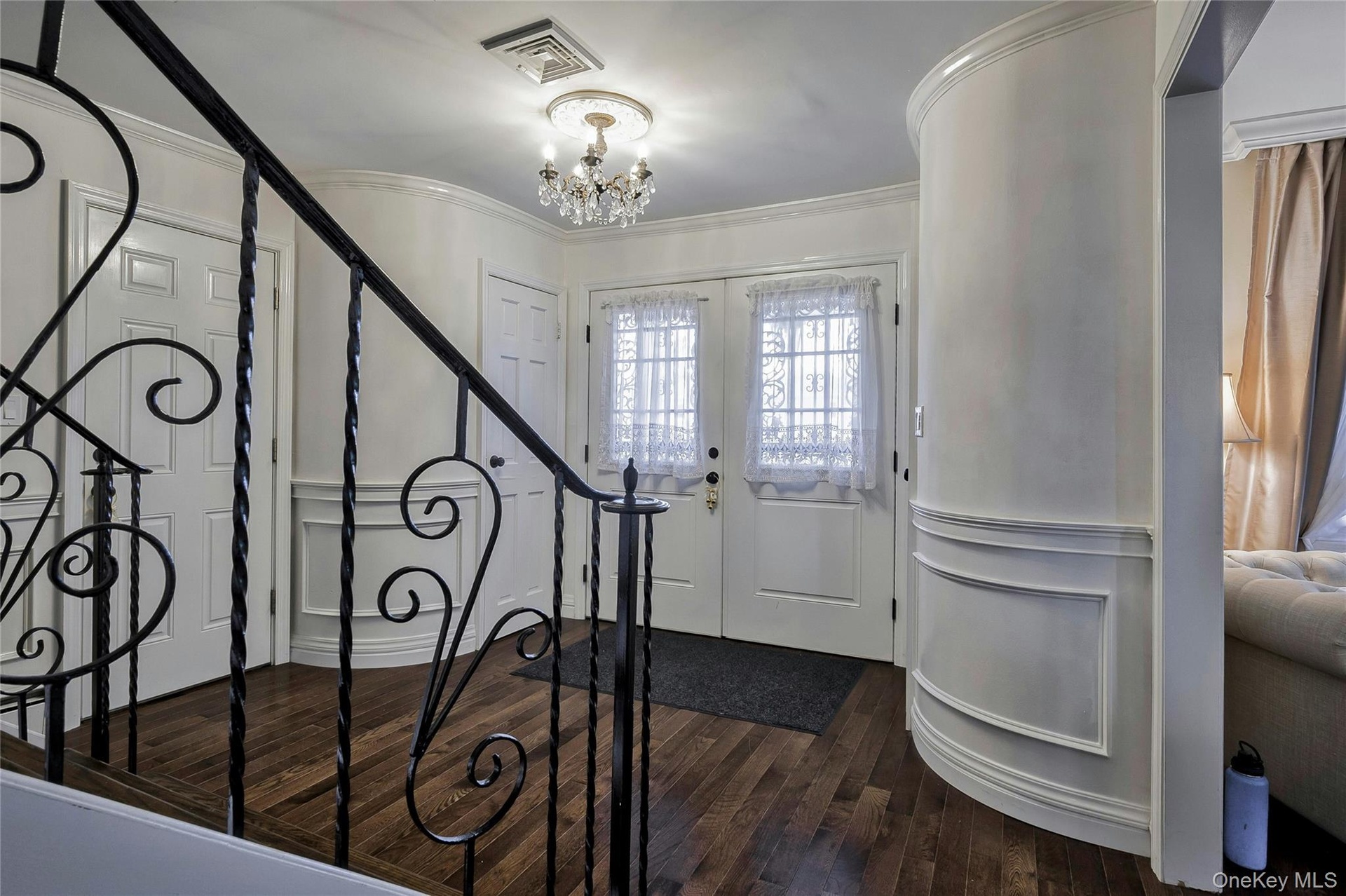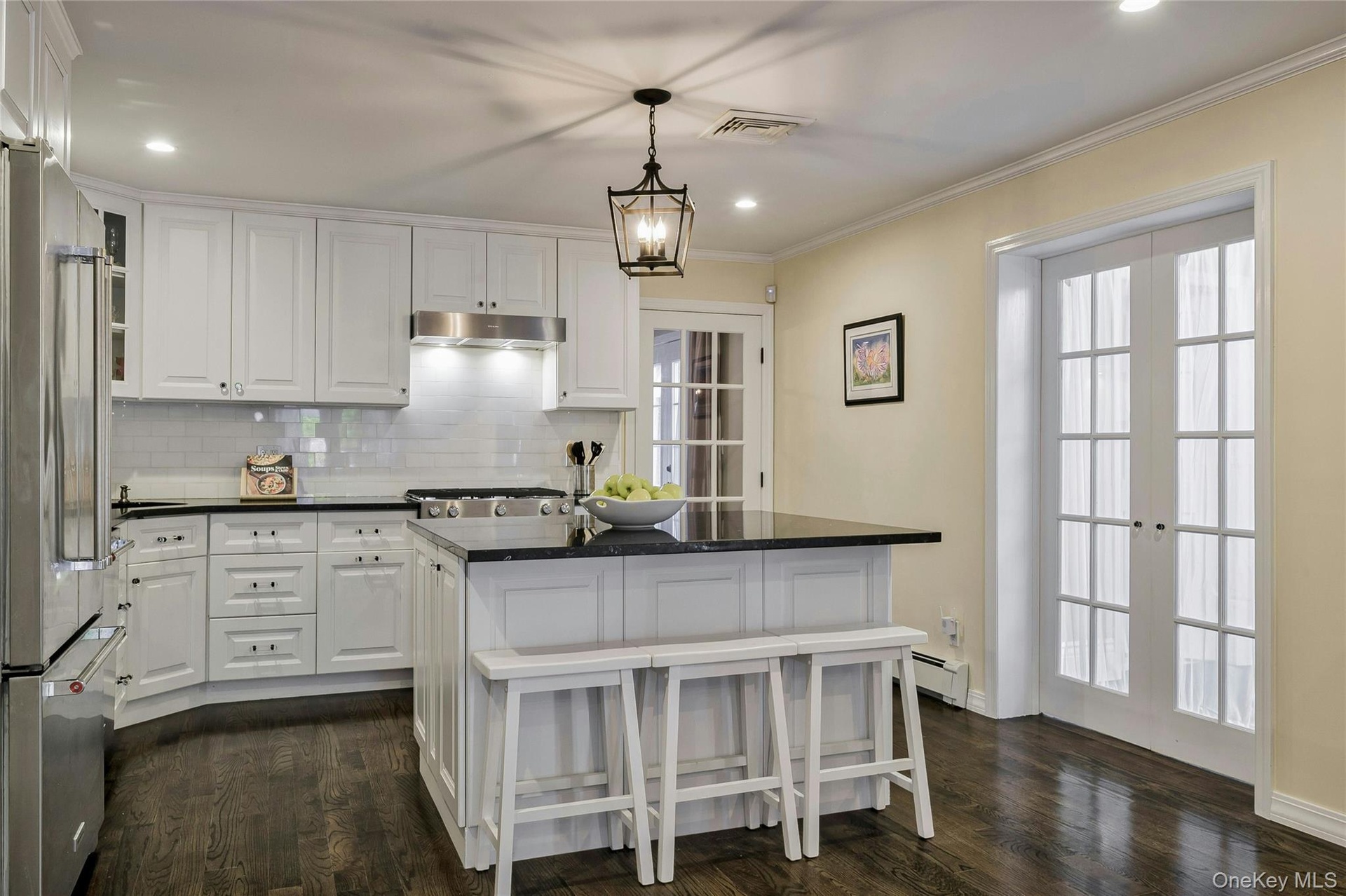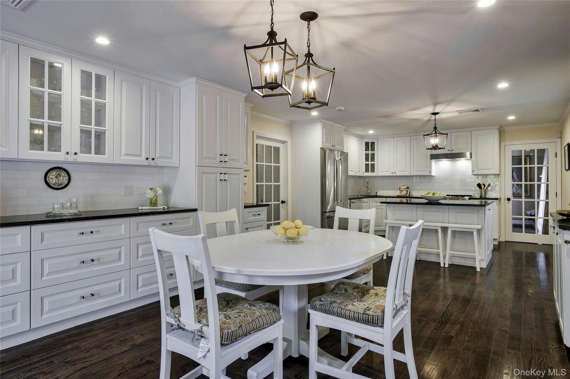 floors, moldings and wainscoting throughout, 6 bedrooms and 3.5 baths on a professionally landscaped lot in the heart of South Strathmore. A welcoming foyer leads to a formal living room with a gas fireplace, an elegant dining room, and a renovated kitchen with breakfast area. A bright, spacious family room/Custom Oak Den with fireplace, powder room, and first-floor guest suite complete the main level. Upstairs features a large primary suite, four additional bedrooms, one was extended less than ten years with high ceiling, and hallway bath. The finished basement includes outdoor access, ideal for recreation or entertaining. Renovated just 6 years ago, upgrades include a new kitchen, bathrooms, second-floor extension, patio, and driveway. Additional features: whole-house generator inlet, multi-zone sprinklers, and more. Low tax. Gas heating. CAC. Zoned for Munsey Park Elementary and Manhasset Secondary Schools, and close to the Americana Mall, restaurants, and public transport.