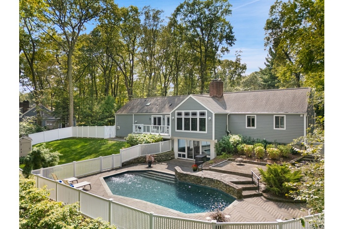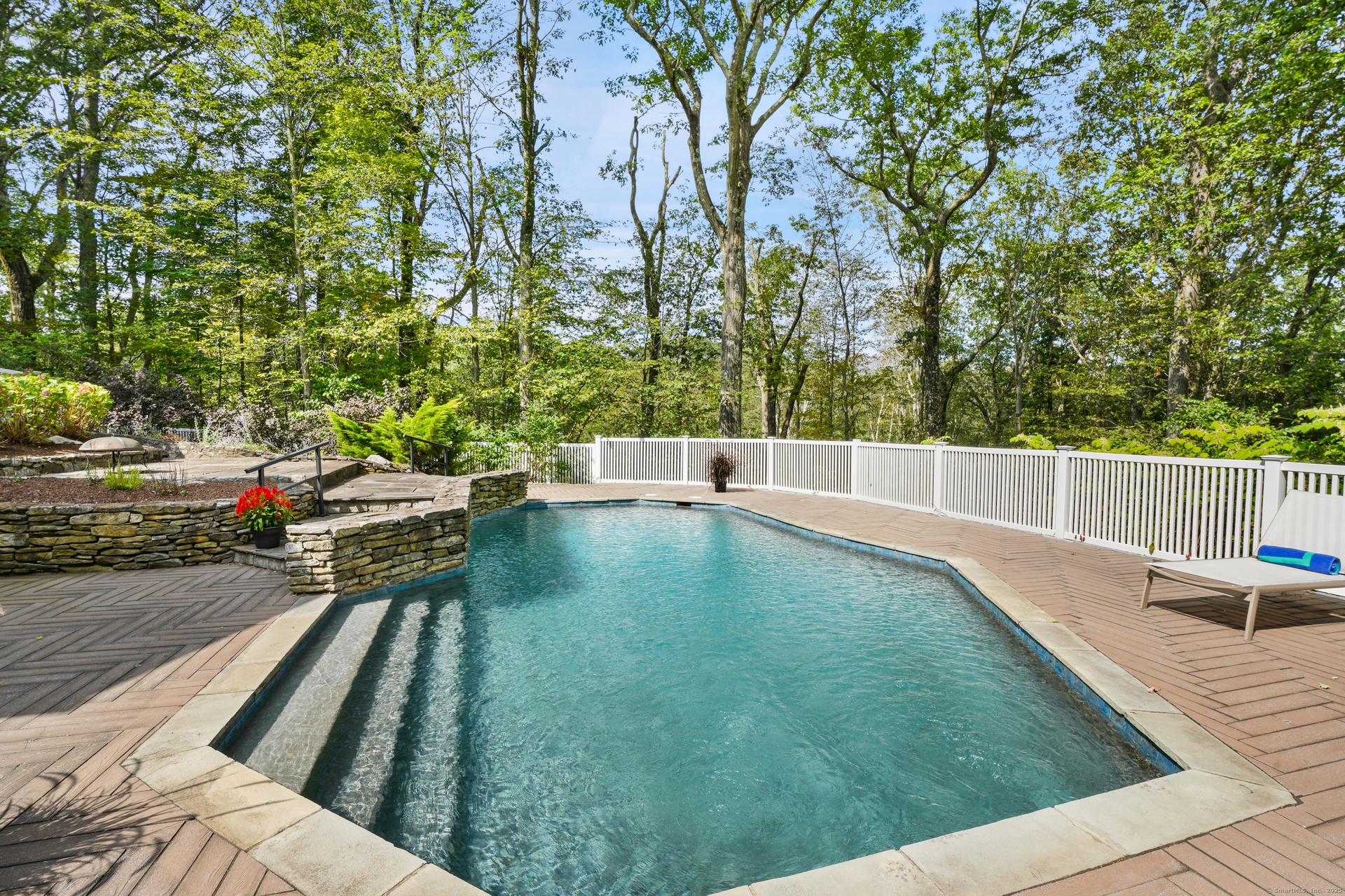 Discover sophisticated single level living in this stunning 3, 300 square foot ranch, privately set on over an acre with stone walls, heated gunite saltwater pool, and irrigation system.