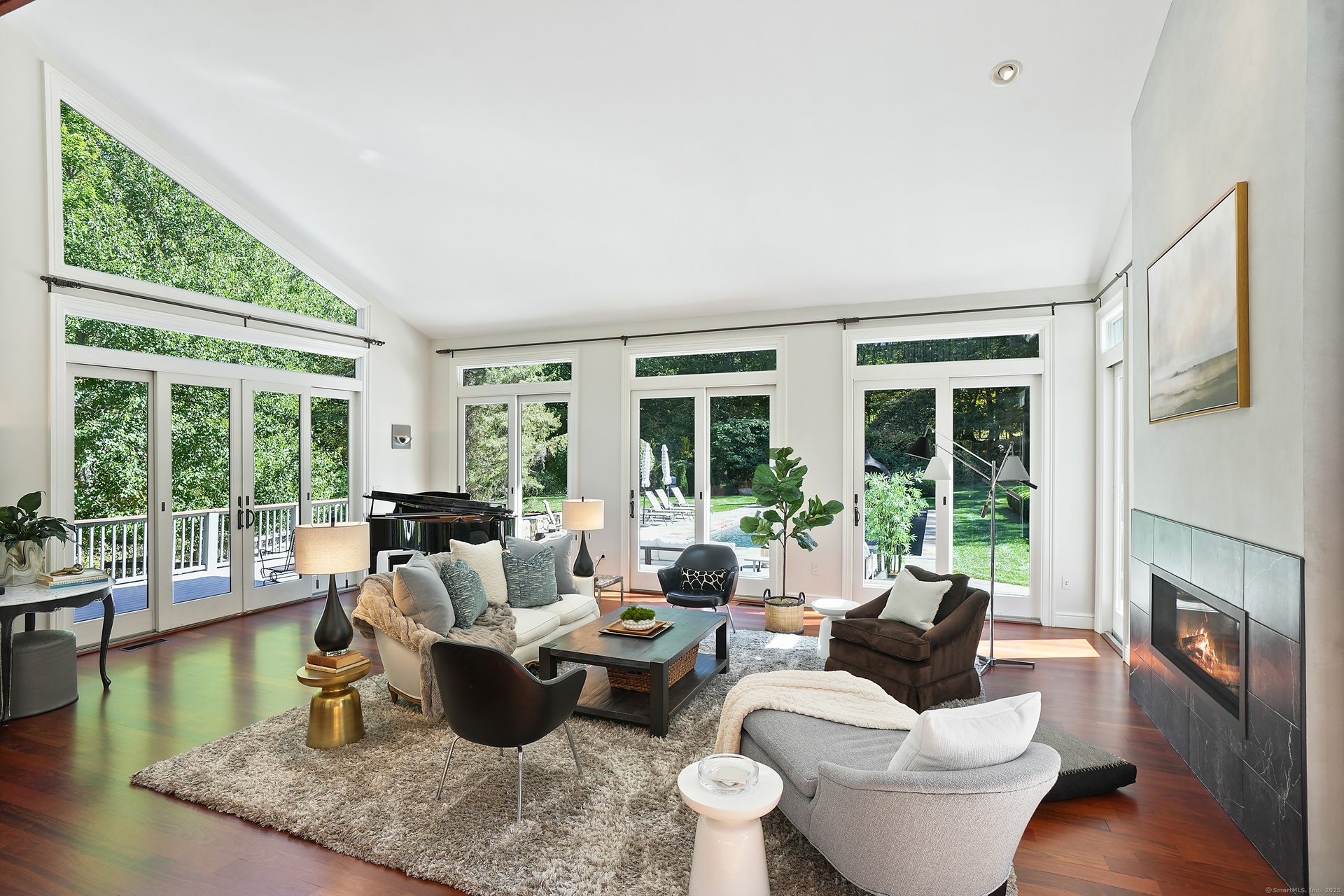 Set on more than two acres of exquisite, park like property in the coveted Red Coat estate section of Westport, this spectacular modern home with a glorious gunite pool offers ...