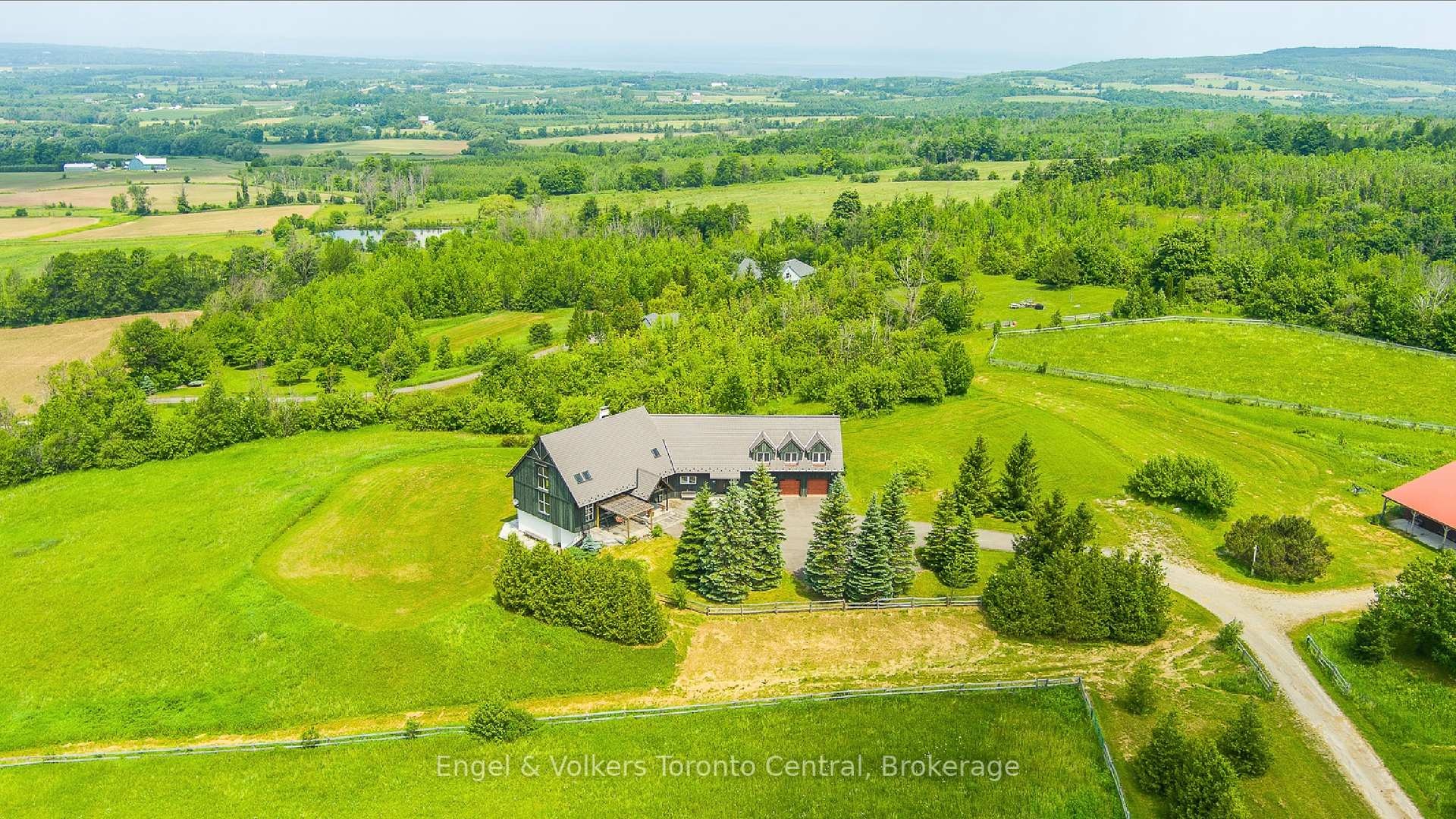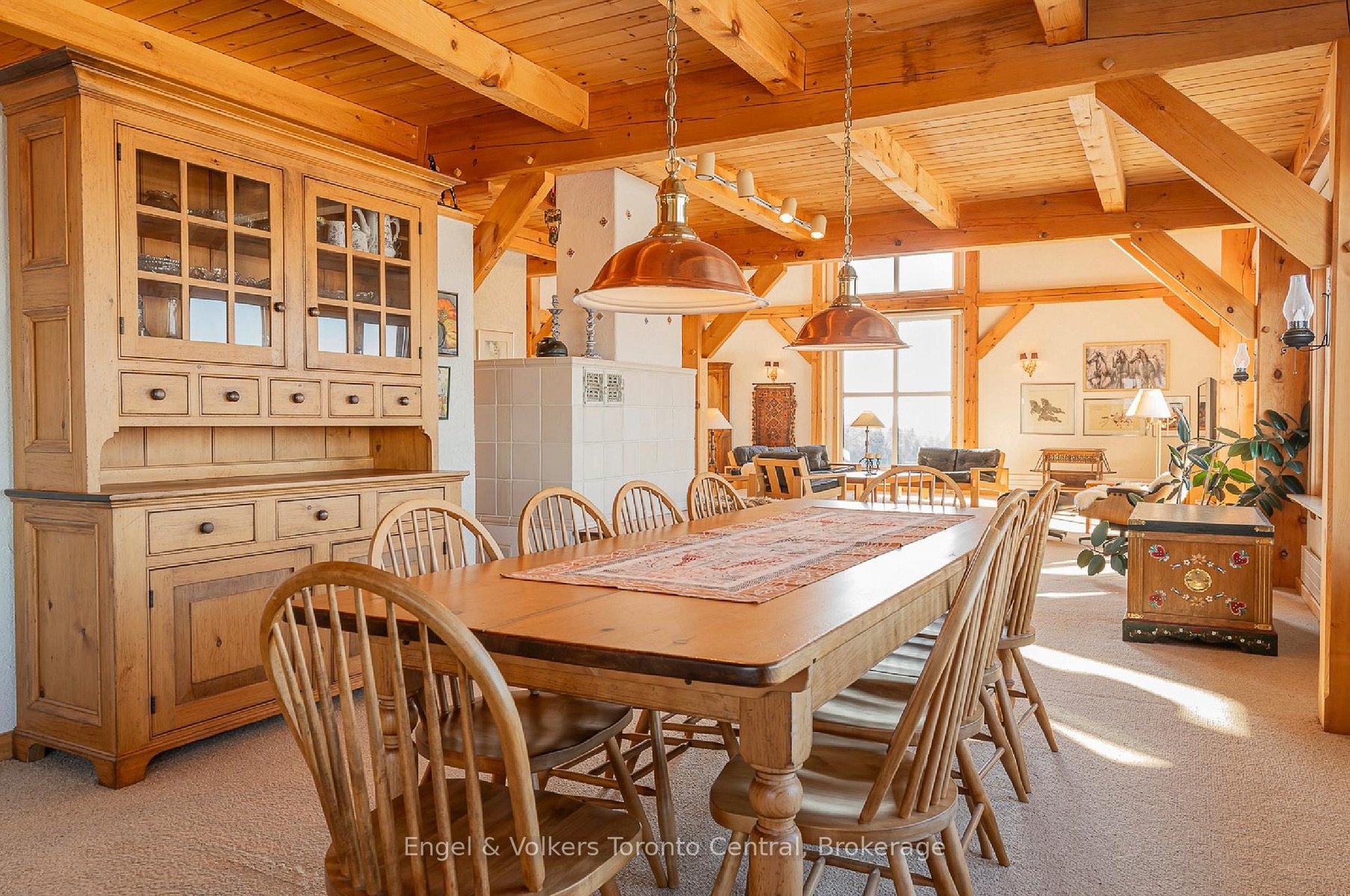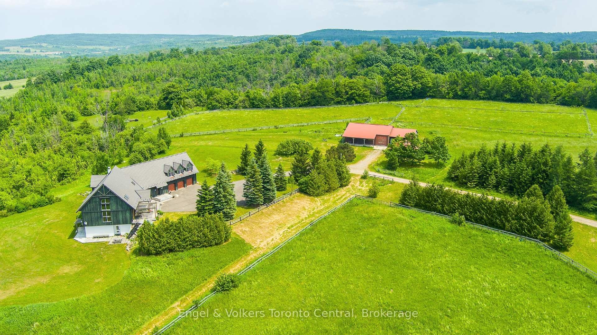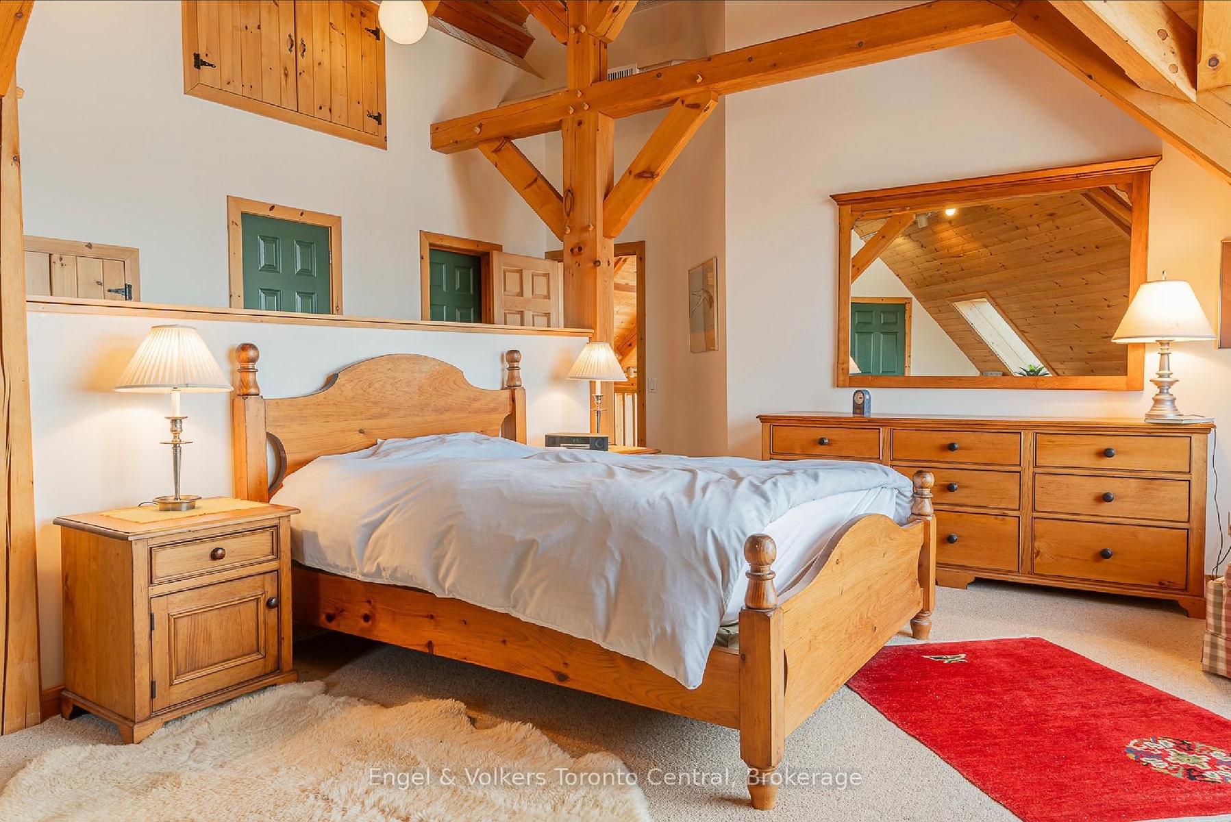 A Majestic Country Estate Overlooking Beaver Valley & Georgian Bay. Close your eyes and imagine waking up each morning to sweeping views of the Beaver Valley and the shimmering waters of Georgian Bay right from your own private 126-acre country estate. Designed and masterfully crafted by renowned architect Juergen Rust, this stunning post and beam masterpiece is perfectly positioned to capture the sunrise, sunset, and the ever-changing beauty of The Blue Mountains. A long, winding driveway leads to your hilltop retreat, a home that exudes warmth, craftsmanship, and timeless design. The open-concept main level offers generous living spaces, ideal for entertaining or quiet reflection, while each of the five bedrooms includes its own private ensuite bath, providing comfort and privacy for family and guests alike. The lower level is thoughtfully designed for independent living, perfect for extended family, visiting friends, or live-in support. Step outside and feel the serenity of country life. Ride horseback across rolling pastures, explore your own trails, or simply sip your morning coffee by the stable as the horses stir. There is ample space for a pond, pool, tennis court, or even a helipad, offering endless potential for recreation and luxury living.Conveniently located near the charming village of Thornbury, with its boutiques, restaurants, and scenic marina. This estate offers both peaceful seclusion and easy access to the regions four-season amenities from skiing and golf to hiking and boating.This is more than a home, it is a lifestyle. A rare opportunity to live in harmony with nature while surrounded by elegance, privacy, and breathtaking views that change with every season. Book a private viewing today and experience what few can truly imagine, life at the top of The Blue Mountains.