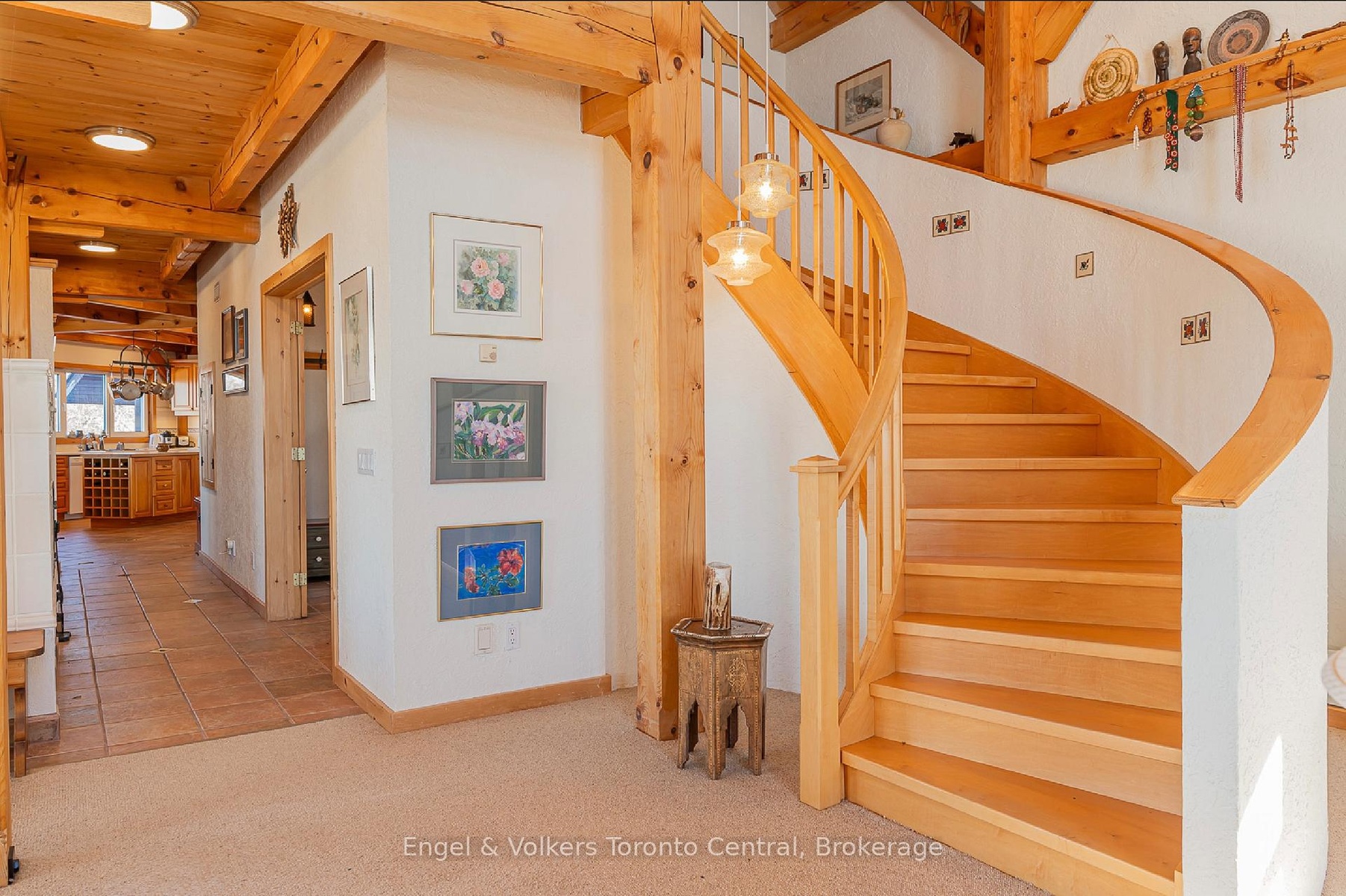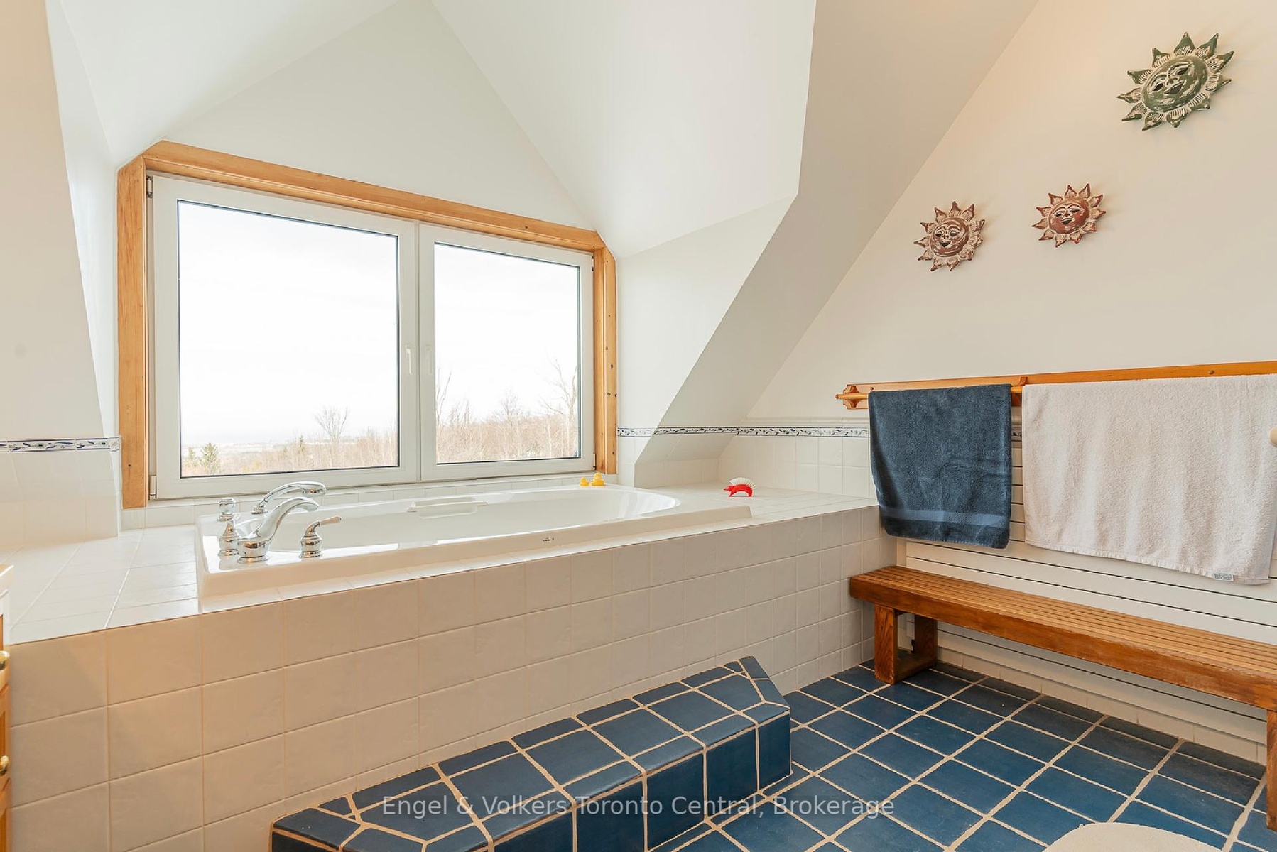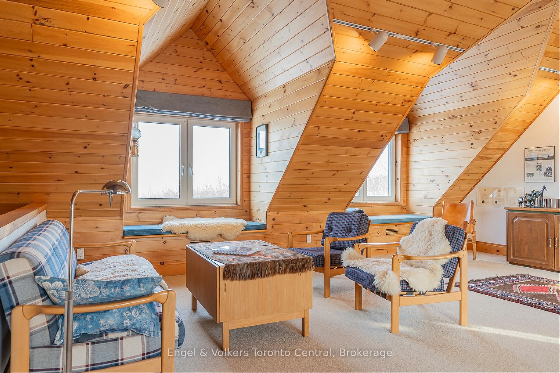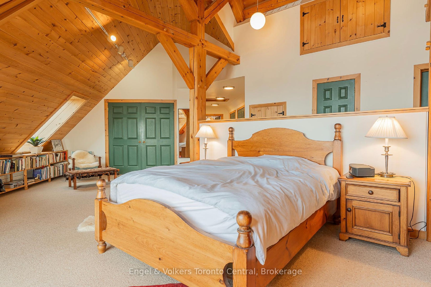 A Majestic Country Estate Overlooking Beaver Valley & Georgian Bay. Close your eyes and imagine waking up each morning to sweeping views of the Beaver Valley and the shimmering waters of Georgian Bay right from your own private 126-acre country estate. Designed and masterfully crafted by renowned architect Juergen Rust, this stunning post and beam masterpiece is perfectly positioned to capture the sunrise, sunset, and the ever-changing beauty of The Blue Mountains. A long, winding driveway leads to your hilltop retreat, a home that exudes warmth, craftsmanship, and timeless design. The open-concept main level offers generous living spaces, ideal for entertaining or quiet reflection, while each of the five bedrooms includes its own private ensuite bath, providing comfort and privacy for family and guests alike. The lower level is thoughtfully designed for independent living, perfect for extended family, visiting friends, or live-in support. Step outside and feel the serenity of country life. Ride horseback across rolling pastures, explore your own trails, or simply sip your morning coffee by the stable as the horses stir. There is ample space for a pond, pool, tennis court, or even a helipad, offering endless potential for recreation and luxury living.Conveniently located near the charming village of Thornbury, with its boutiques, restaurants, and scenic marina. This estate offers both peaceful seclusion and easy access to the regions four-season amenities from skiing and golf to hiking and boating.This is more than a home, it is a lifestyle. A rare opportunity to live in harmony with nature while surrounded by elegance, privacy, and breathtaking views that change with every season. Book a private viewing today and experience what few can truly imagine, life at the top of The Blue Mountains.