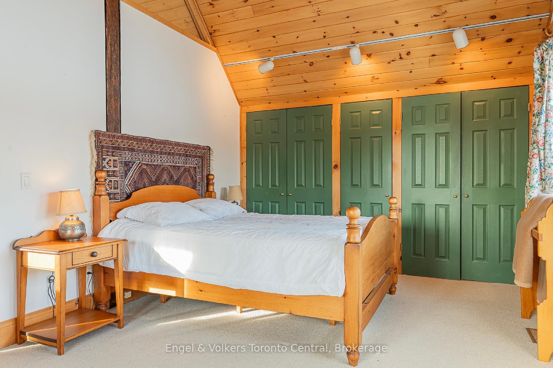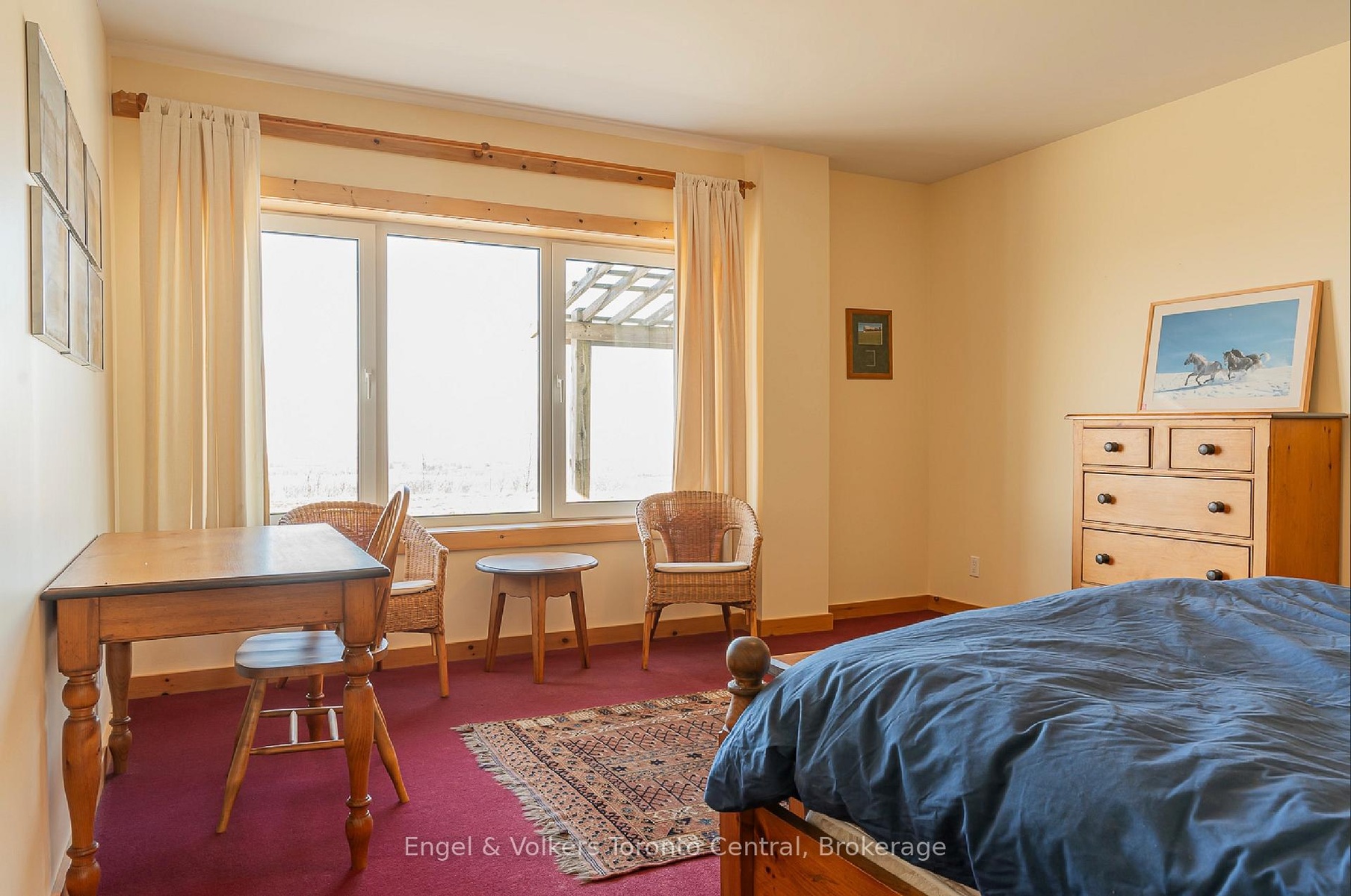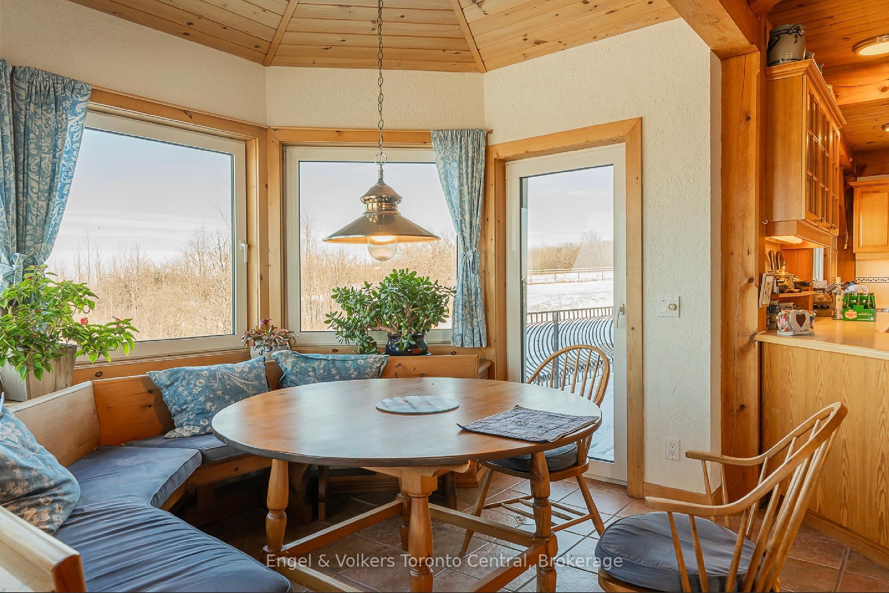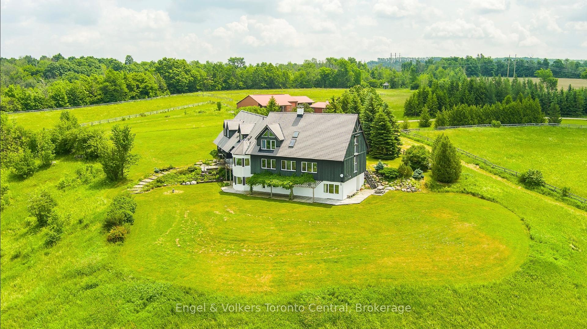 A Majestic Country Estate Overlooking Beaver Valley & Georgian Bay. Close your eyes and imagine waking up each morning to sweeping views of the Beaver Valley and the shimmering waters of Georgian Bay right from your own private 126-acre country estate. Designed and masterfully crafted by renowned architect Juergen Rust, this stunning post and beam masterpiece is perfectly positioned to capture the sunrise, sunset, and the ever-changing beauty of The Blue Mountains. A long, winding driveway leads to your hilltop retreat, a home that exudes warmth, craftsmanship, and timeless design. The open-concept main level offers generous living spaces, ideal for entertaining or quiet reflection, while each of the five bedrooms includes its own private ensuite bath, providing comfort and privacy for family and guests alike. The lower level is thoughtfully designed for independent living, perfect for extended family, visiting friends, or live-in support. Step outside and feel the serenity of country life. Ride horseback across rolling pastures, explore your own trails, or simply sip your morning coffee by the stable as the horses stir. There is ample space for a pond, pool, tennis court, or even a helipad, offering endless potential for recreation and luxury living.Conveniently located near the charming village of Thornbury, with its boutiques, restaurants, and scenic marina. This estate offers both peaceful seclusion and easy access to the regions four-season amenities from skiing and golf to hiking and boating.This is more than a home, it is a lifestyle. A rare opportunity to live in harmony with nature while surrounded by elegance, privacy, and breathtaking views that change with every season. Book a private viewing today and experience what few can truly imagine, life at the top of The Blue Mountains.