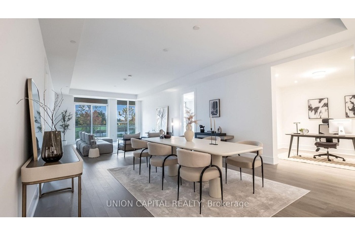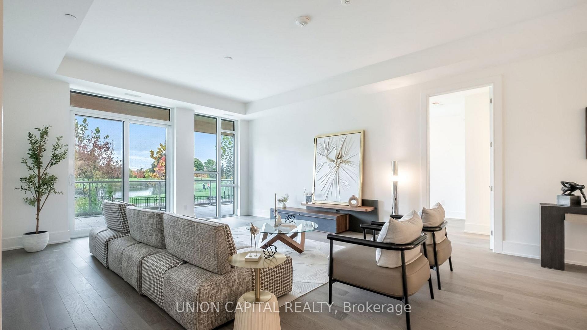 Welcome to Royal Bayview, Thornhill's Most Prestigious New Address by Tridel. Discover refined living in this new and rarely offered garden level suite with golf course views at Royal Bayview, the latest luxury development by Tridel. With over 1,800 sq. ft. of impeccably finished living space, this elegant residence combines sophistication, comfort, and the serenity of nature. Enjoy unparalleled panoramic views of the golf course and tranquil pond, framed by floor-to-ceiling windows and your own expansive private terrace, the perfect retreat for morning coffee or evening entertaining. Inside, the open-concept layout features a chef-inspired kitchen with a large centre island, high-end finishes, and premium appliances. The spacious living and dining areas flow seamlessly, creating a bright, airy ambiance ideal for both everyday living and hosting. Designed with versatility in mind, this unit includes a dedicated den/home office, two generous bedrooms, and three luxurious bathrooms, including a spa-like primary ensuite. Additional highlights include Resort-style amenities including an indoor swimming pool, fitness centre, saunas, outdoor patio, and a stylish party room in a landmark building. Experience the ultimate blend of luxury and lifestyle at Royal Bayview where every detail has been thoughtfully crafted for the discerning homeowner.