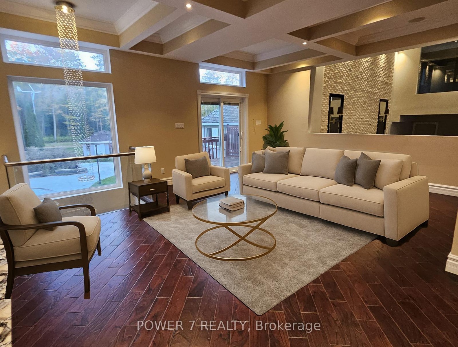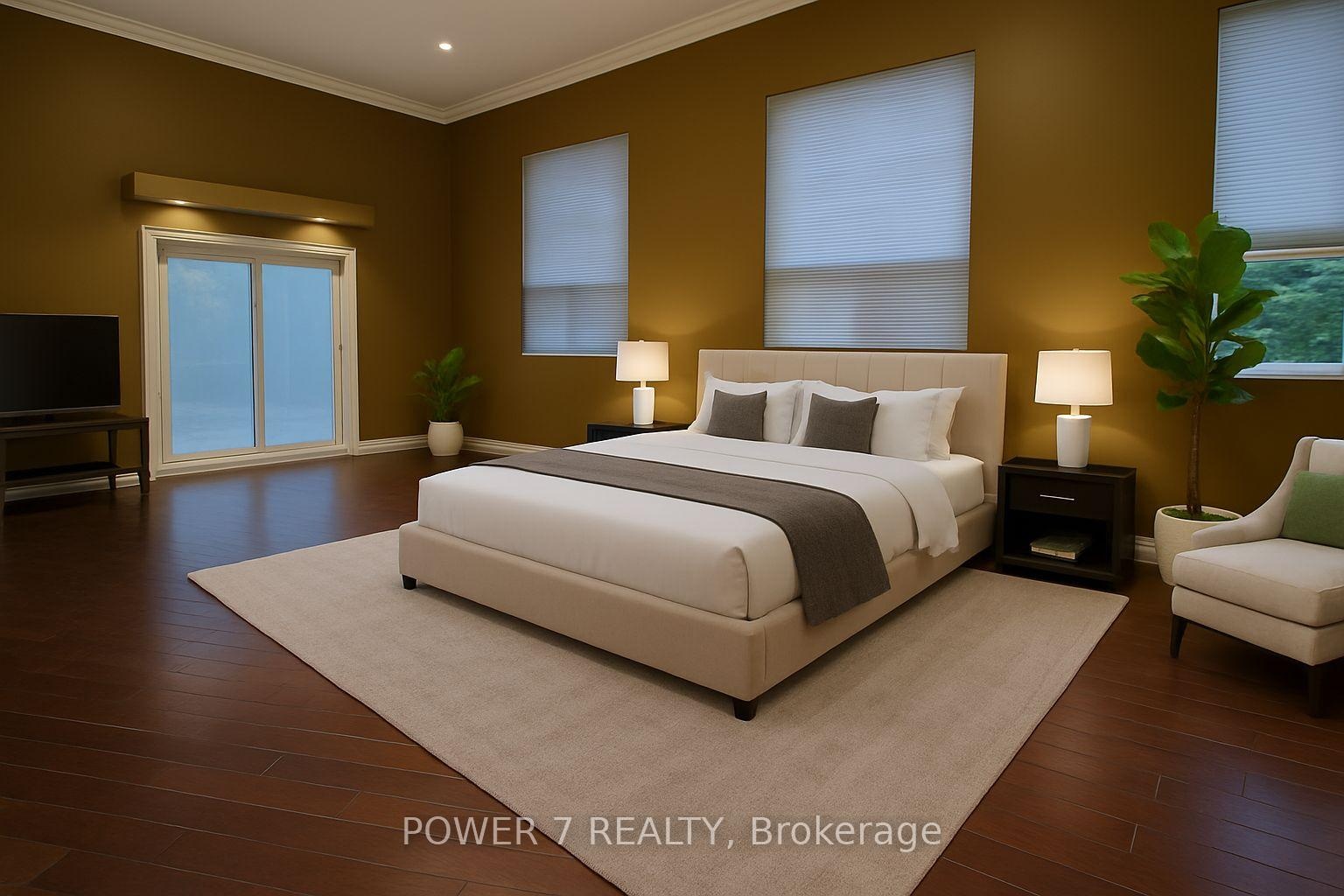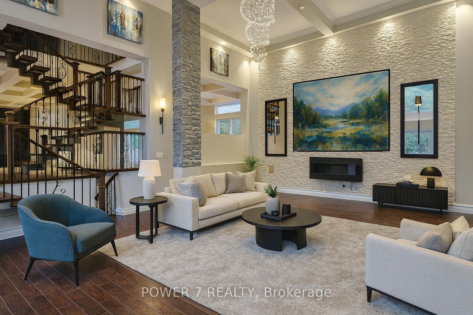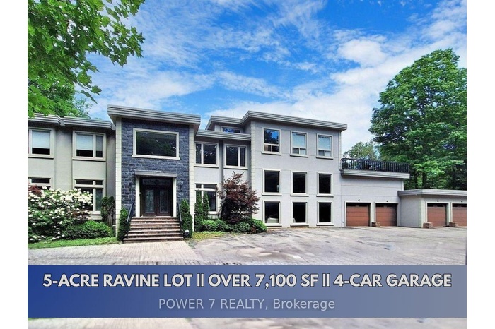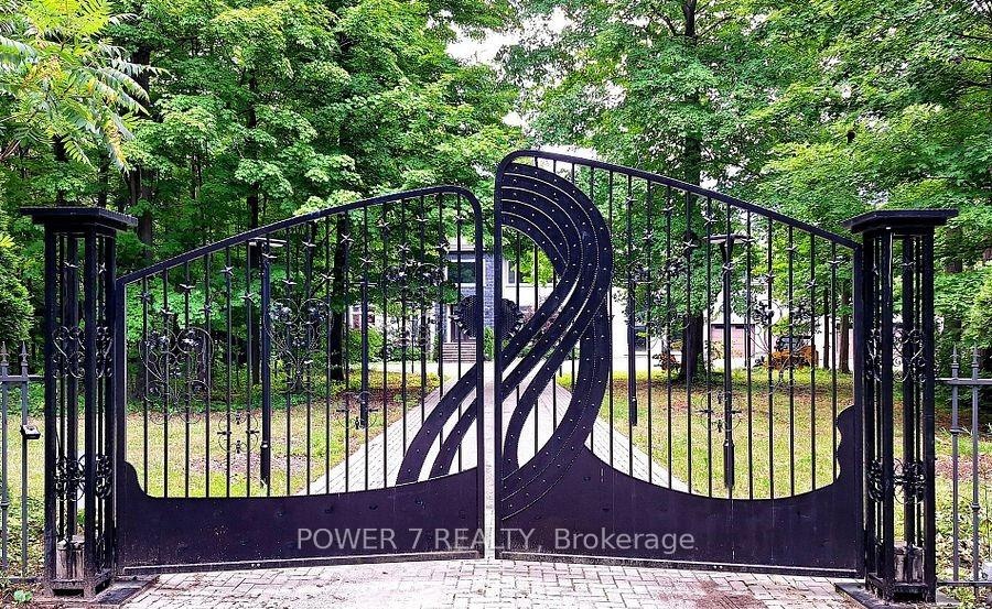 A Golden Opportunity Knocks! Welcome to this Exquisite Contemporary Custom Estate Home, privately nestled on just under 5 acres with 319 of frontage, surrounded by mature trees and backing onto the Serene York Regional Forest. Offering over 7,000 sq. ft. of luxury living plus an additional 2,000+ sq. ft. finished walk-out basement, this home delivers an unparalleled lifestyle in a tranquil forested setting. The striking exterior boasts a stucco & stone façade, 4-car garage, electronic gate, and a circular driveway. Inside, you'll find soaring ceilings on all levels, hardwood floors, waffle ceilings, floating hardwood stairs with wrought iron pickets, and floor-to-ceiling picture windows that flood the living and dining rooms with natural light. The gourmet chefs kitchen is a showpiece with a custom waterfall centre island, upgraded cabinetry, and premium stainless steel appliances perfect for hosting family gatherings and grand celebrations. All 5 oversized bedrooms feature private renovated ensuites. The primary suite offers a boutique-inspired walk-in closet with centre island, and a spa-like 5-pc ensuite with freestanding tub, glass shower, and dual vanities. The professionally finished walk-out basement is ideal for entertaining, complete with floor-to-ceiling windows, a custom-built wet bar, expansive recreation space, and 2 guest suites. Outdoors, enjoy your private garden oasis on a 677 deep lot, complete with a workshop and garden shed. This is truly a rare, one-of-a-kind estate that seamlessly blends modern elegance with peaceful natural surroundings. Don't miss your chance to own this extraordinary gem! Note: The subject is virtually staged.