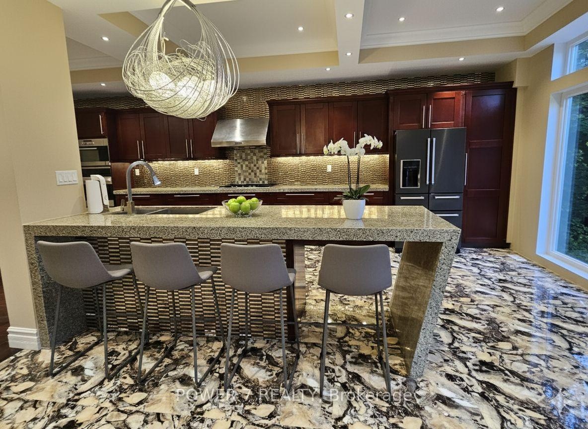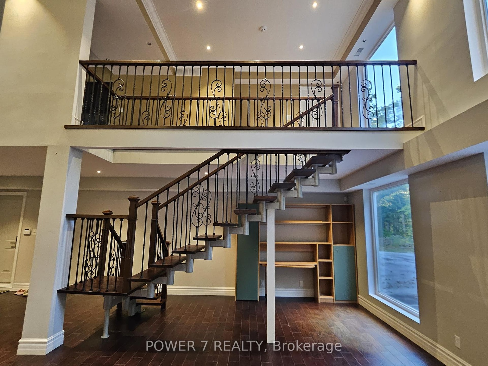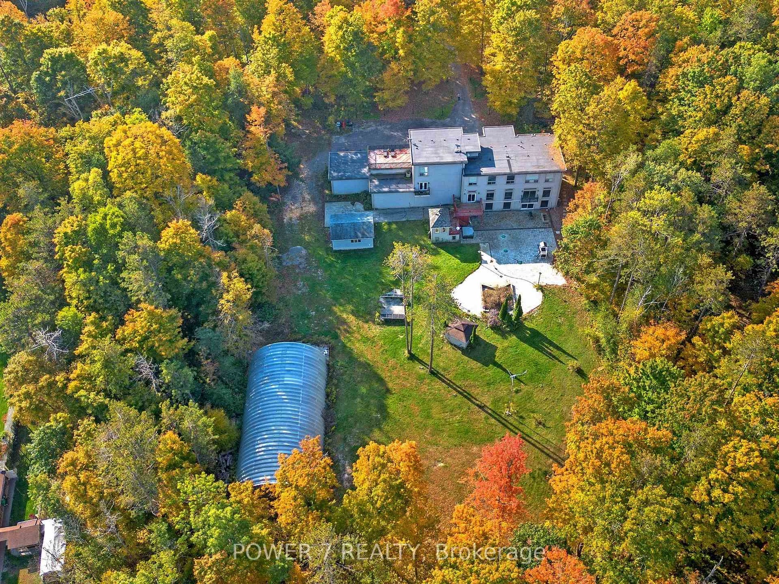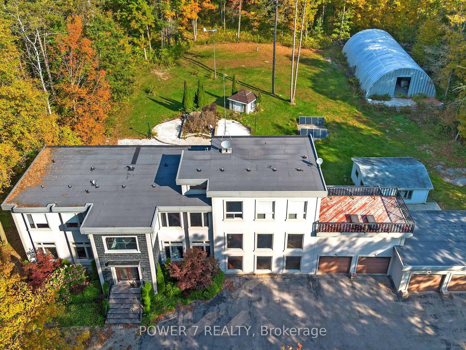 A Golden Opportunity Knocks! Welcome to this Exquisite Contemporary Custom Estate Home, privately nestled on just under 5 acres with 319 of frontage, surrounded by mature trees and backing onto the Serene York Regional Forest. Offering over 7,000 sq. ft. of luxury living plus an additional 2,000+ sq. ft. finished walk-out basement, this home delivers an unparalleled lifestyle in a tranquil forested setting. The striking exterior boasts a stucco & stone façade, 4-car garage, electronic gate, and a circular driveway. Inside, you'll find soaring ceilings on all levels, hardwood floors, waffle ceilings, floating hardwood stairs with wrought iron pickets, and floor-to-ceiling picture windows that flood the living and dining rooms with natural light. The gourmet chefs kitchen is a showpiece with a custom waterfall centre island, upgraded cabinetry, and premium stainless steel appliances perfect for hosting family gatherings and grand celebrations. All 5 oversized bedrooms feature private renovated ensuites. The primary suite offers a boutique-inspired walk-in closet with centre island, and a spa-like 5-pc ensuite with freestanding tub, glass shower, and dual vanities. The professionally finished walk-out basement is ideal for entertaining, complete with floor-to-ceiling windows, a custom-built wet bar, expansive recreation space, and 2 guest suites. Outdoors, enjoy your private garden oasis on a 677 deep lot, complete with a workshop and garden shed. This is truly a rare, one-of-a-kind estate that seamlessly blends modern elegance with peaceful natural surroundings. Don't miss your chance to own this extraordinary gem! Note: The subject is virtually staged.