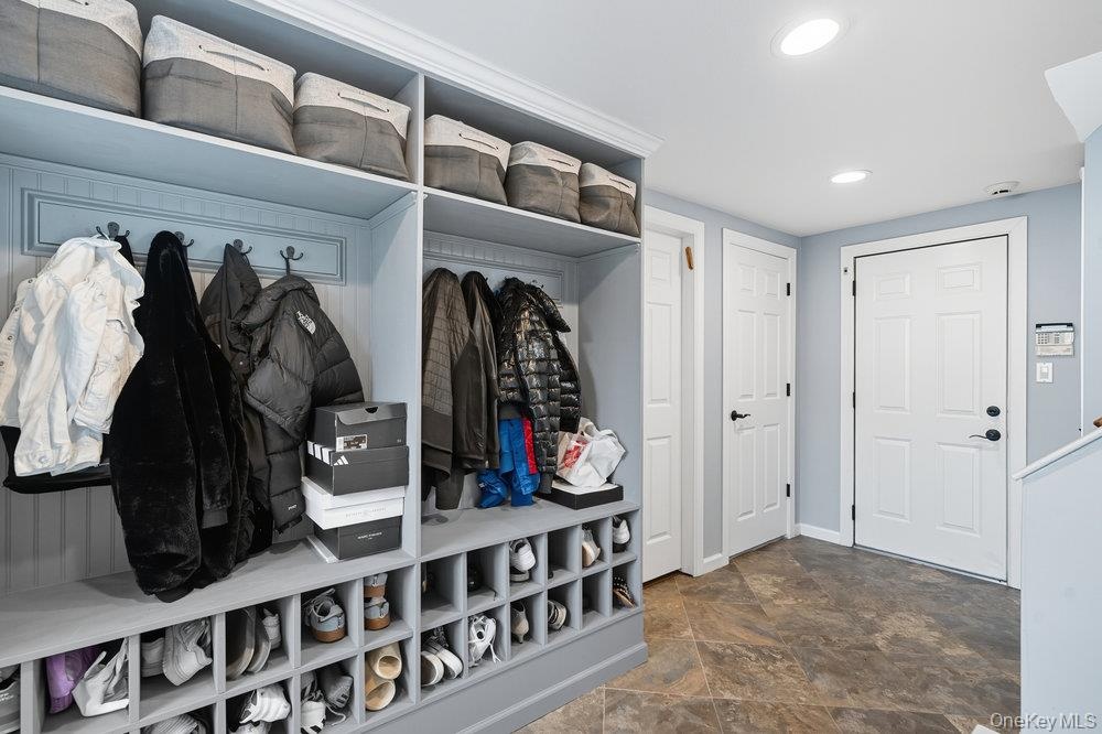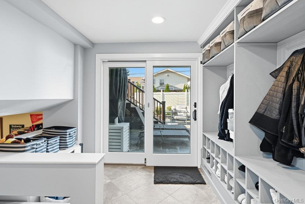 - Mudroom featuring light tile patterned floors and recessed lighting