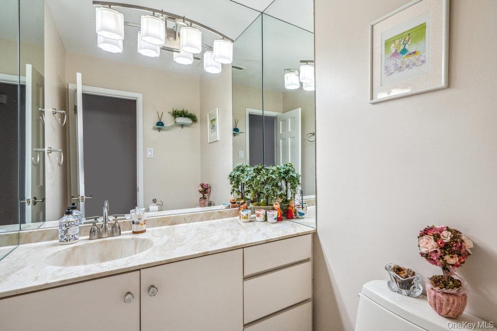 - Half bath featuring toilet and vanity
