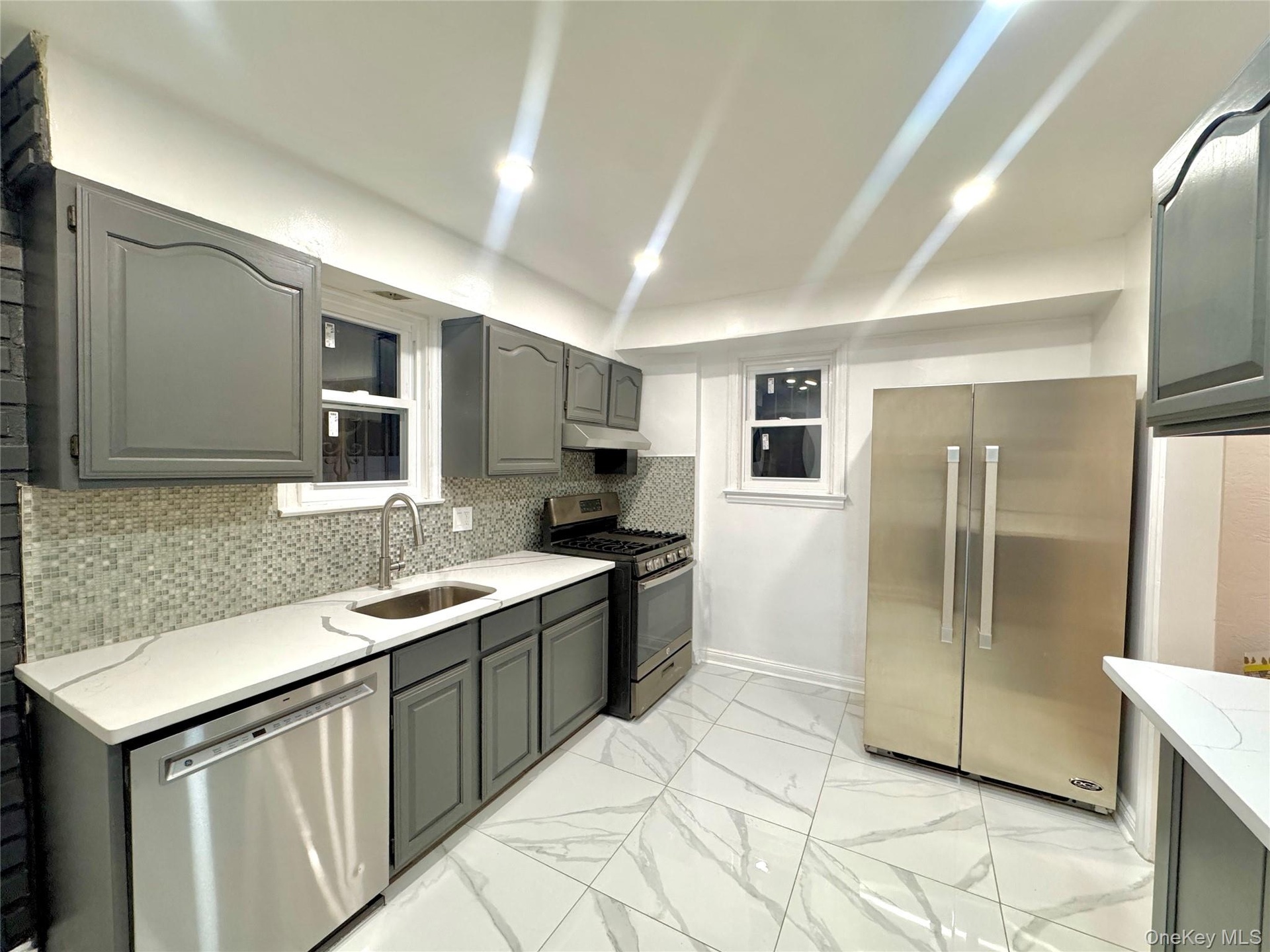 DescriptionNestled in the heart of Cambria Heights, this delightful one-family Tudor blends classic charm with modern convenience. Set on a generous 40x100 lot, this brick beauty features a welcoming layout with hardwood floors throughout. The spacious living room invites you in with a working fireplace and charming architectural details, including elegant arches. The eat-in kitchen has been tastefully renovated and comes complete with a brand-new refrigerator and dishwasher, making it perfect for both everyday meals and entertaining. Upstairs, you’ll find two generously sized bedrooms and a beautifully updated bathroom featuring both a stand-up shower and a separate bathtub. Additional perks include a full, finished basement with a half bath, ideal for extra storage or a recreation space. Outside, enjoy a private driveway, a detached garage, and a lovely backyard perfect for relaxing or entertaining. Conveniently located near the Q27, Q31, and Q88 bus lines, this home offers easy access to all the conveniences of Queens living.Amenities- Back Yard