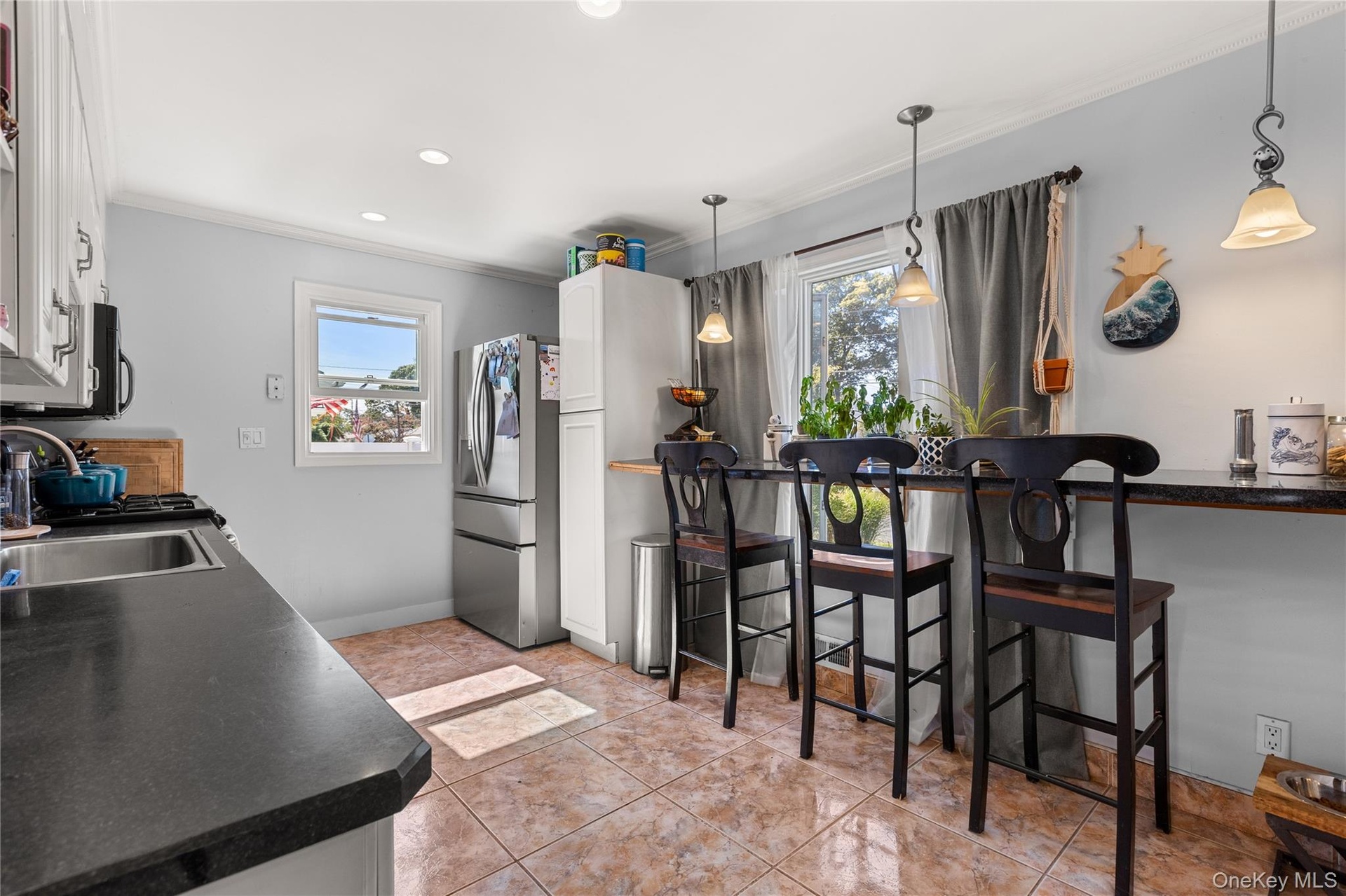 Welcome to this beautifully maintained Colonial featuring 3 spacious bedrooms and 3 full bathrooms, including one recently renovated bath. This home offers a bright and airy open-concept layout, seamlessly connecting the living room, dining area, and kitchen — perfect for entertaining and everyday living. Step through the dining area’s sliding doors into a fully fenced backyard, ideal for gatherings, pets, or relaxing in privacy. The property also includes a one-car garage for convenient parking or storage. Enjoy the bonus of a full finished basement, providing additional living space for a home office, gym, media room, or guest quarters. Recent upgrades include a brand-new roof and siding, ensuring peace of mind and great curb appeal. Located in a desirable Bay Shore neighborhood close to shopping, schools, and transportation. Don’t miss the opportunity to make this move-in ready home your own! Let me know if you want a more casual or luxury-oriented tone.
