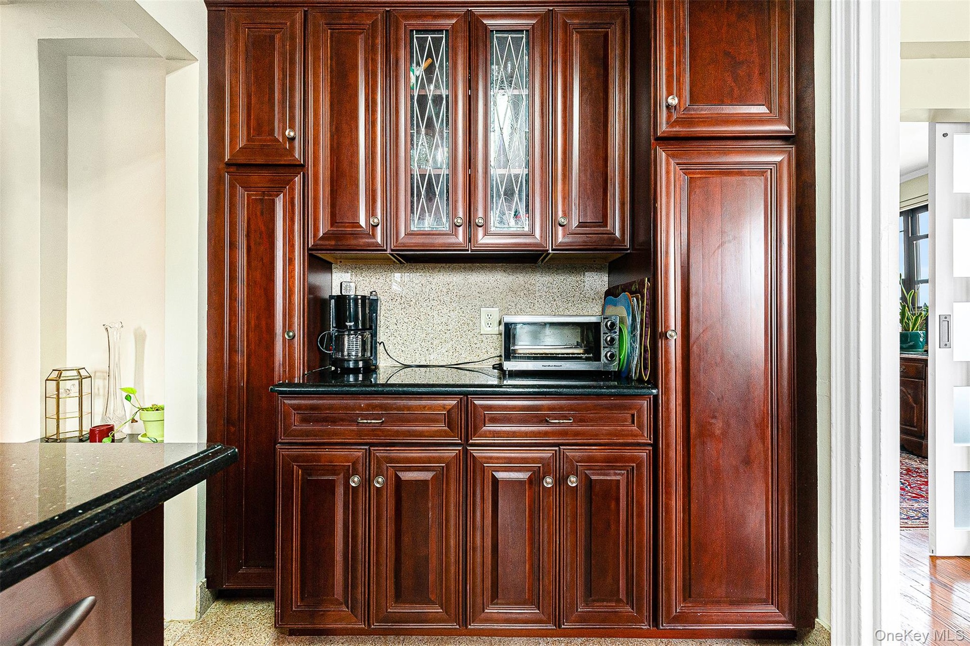 This unique, corner residence features an entry hallway which connects to a spacious corridor and expansive living room. Enjoy an updated kitchen with a pantry, rich cherry cabinets, and elegant granite countertops. An expansive corner formal dining room with stylish barn doors can easily convert to a 3rd bedroom or work from home office. 2 additional king-size bedrooms are set back for peace and tranquility. The unit’s desirable southeast exposures bring in abundant natural light all day highlighting the charming prewar details of 9ft ceilings and beautiful solid oak hardwood floors throughout.