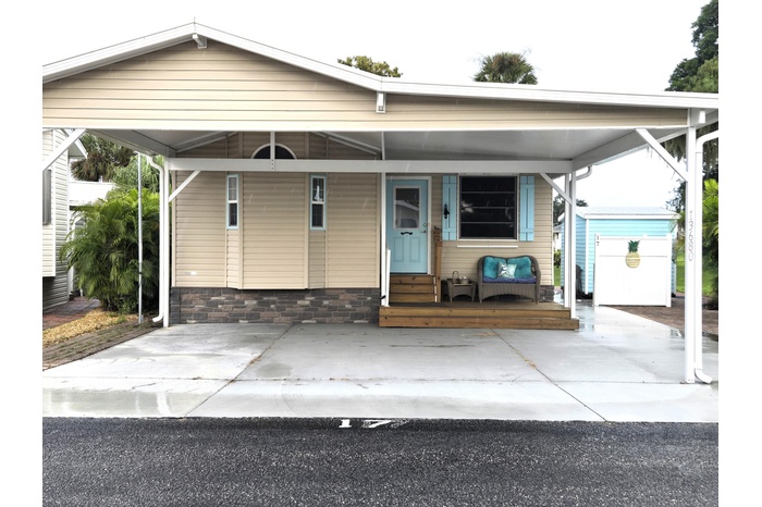 BLUE CYPRESS GOLF RV RESORT Meticulous 2014 home offers 1 bd 1 ba w 908 sf 3, 031 total sf.