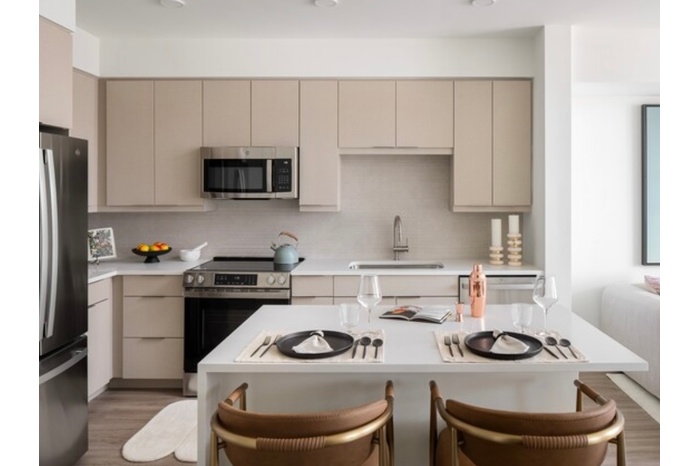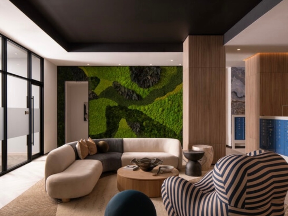 Residents can enjoy a host of amenities, including a state-of-the-art fitness center, a rooftop pool with stunning city views, and beautifully landscaped courtyards perfect for relaxation or social gatherings. The building's design incorporates elements of the local art scene, showcasing works from local artists throughout the common areas.