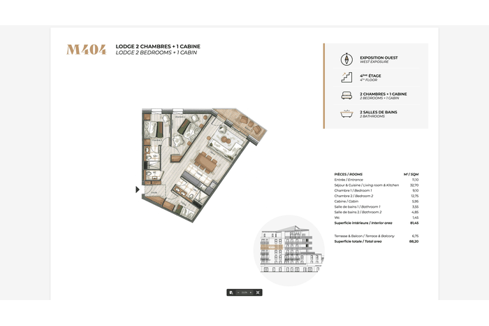 2 Bedrooms + Cabin | 2 Bathrooms | 88.2 m2 | 4th Floor | West-Facing Balcony