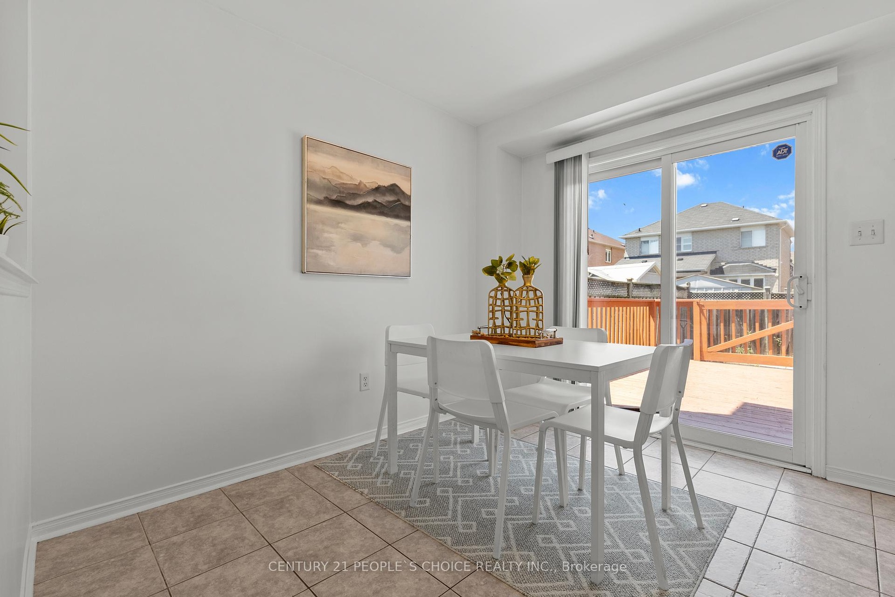 Step into comfort and style in this beautifully maintained 4 bedroom, 3 bathroom semi detached home, offering almost 1700 sqft of thoughtfully designed living space in the heart of Fletchers Meadow. An open and inviting foyer greets you with warmth and charm, leading into a combined living and dining area perfect for entertaining or relaxing. The open-concept kitchen features an eat in breakfast area that overlooks the backyard, creating a seamless blend of indoor and outdoor living. Step outside to a spacious deck, recently sanded and painted -- an ideal space for summer gatherings, barbeques or quiet evenings under the stars. Upstairs, you will find 4 generous sized bedrooms, all filled with natural light and offering ample closet space. The primary suite features a walk in closet and a 5 piece ensuite bathroom. A versatile bonus room on the second floor, previously used as a laundry room, can serve as a den, office, prayer room or secondary laundry space, depending on your needs. Recent upgrades include a freshly painted garage and front door, newly painted bedrooms and primary bath, and roof (2025). An extended driveway accommodates up to 4 vehicles, perfect for multi-car families or guests. A true pride of ownership, this home has been lovingly maintained by the original owners! Conveniently located close to schools, parks, shopping, public transit, Mt Pleasant GO, and major highways.