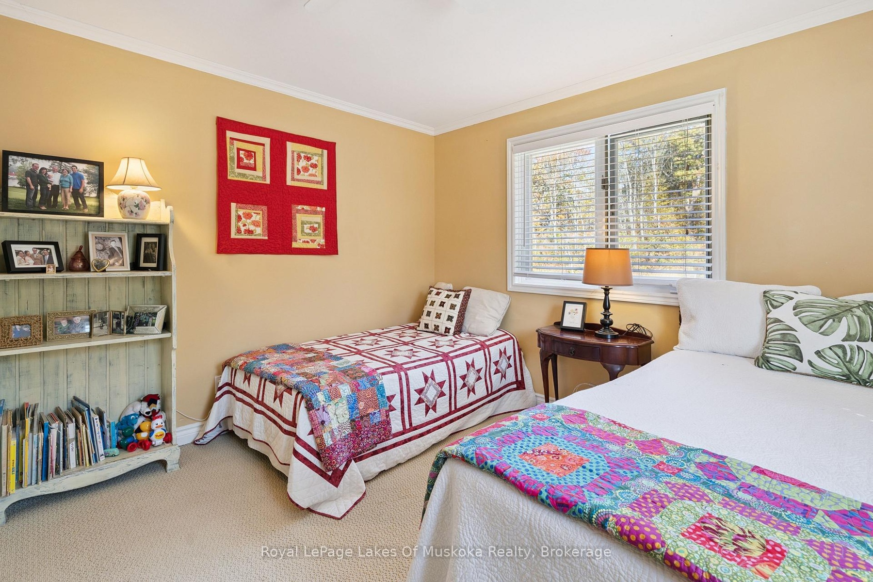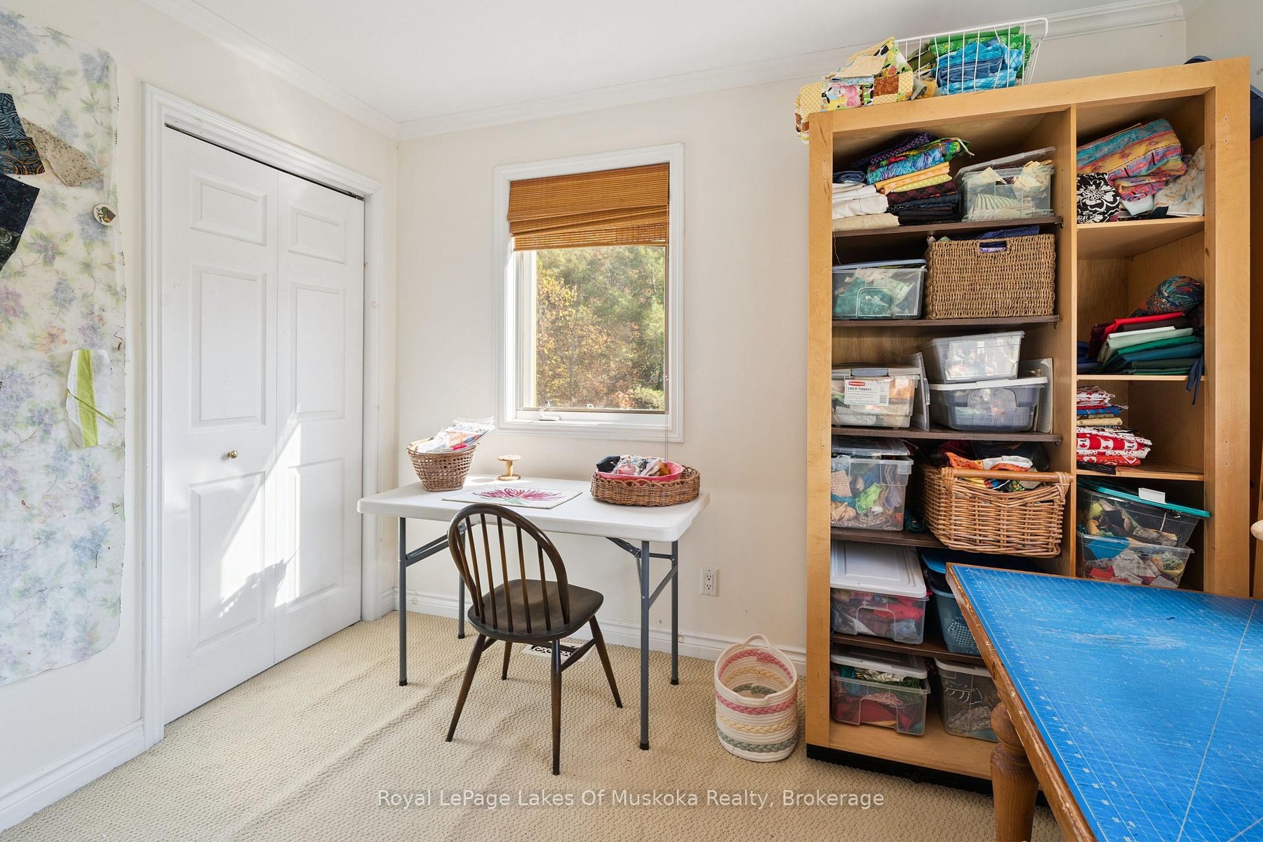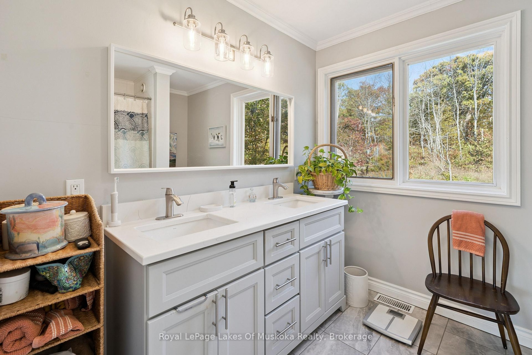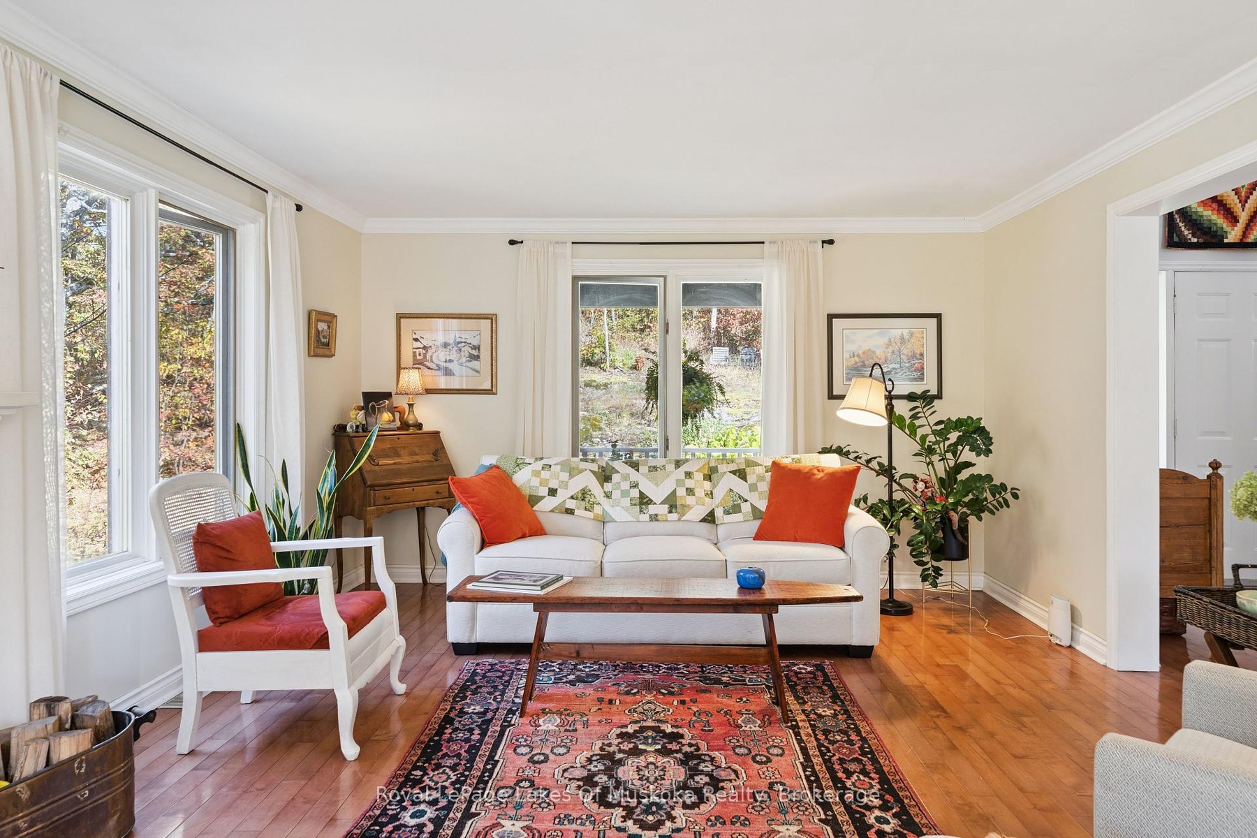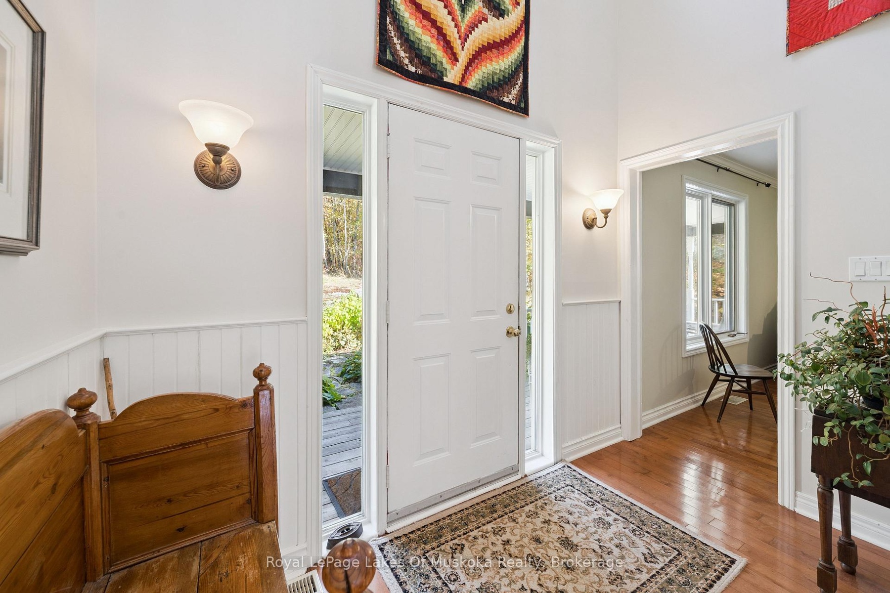 3-BDRM + DEN, 2.5 BATH, 1823 SQFT HOME ON 10 ACRES WITH DOUBLE GARAGE, JUST 6 MINUTES FROM IN-TOWN BRACEBRIDGE PLUS COLLECT OVER $220,000 IN PASSIVE INCOME OVER THE NEXT 15+ YEARS! Step through the covered front veranda into the foyer, complete with double closets. The main floor den provides a flexible space that can easily be adapted into an office, playroom, or an additional bedroom. The expansive living and dining area is bathed in natural light, featuring a wood-burning fireplace and direct access to the wrap-around deck. The eat-in kitchen includes a peninsula with a breakfast bar. A laundry closet and a side-entrance mudroom with a two-piece bathroom add to the home's practicality. The second floor features a large primary bedroom suite with a walk-in closet, a five-piece ensuite with a jetted tub, and a private balcony. Two more bedrooms and a spacious four-piece bathroom complete this level. The property sits on 10-acres of unique landscape of rock outcrops and mature forest, providing exceptional privacy and trails to explore. A detached, 23 x 23 double garage with a concrete floor and hydro can serve as a great workshop. The basement, with its exterior access under the deck, is perfect for storage and houses the home's utilities. This home is conveniently located just six minutes from the shops, restaurants, and entertainment in Bracebridge. It's also only 3-minutes from a Lake Muskoka marina and 1-minute from The Fairways at Kirrie Glen. * * * BONUS * * * Collect over $220,000 in passive income over the next 15 years! Bell Mobility leases a small part of the property for a cell tower and pays over $1000-$1300 each month. The tower can not be seen from the house. The property is still yours to enjoy as you desire.