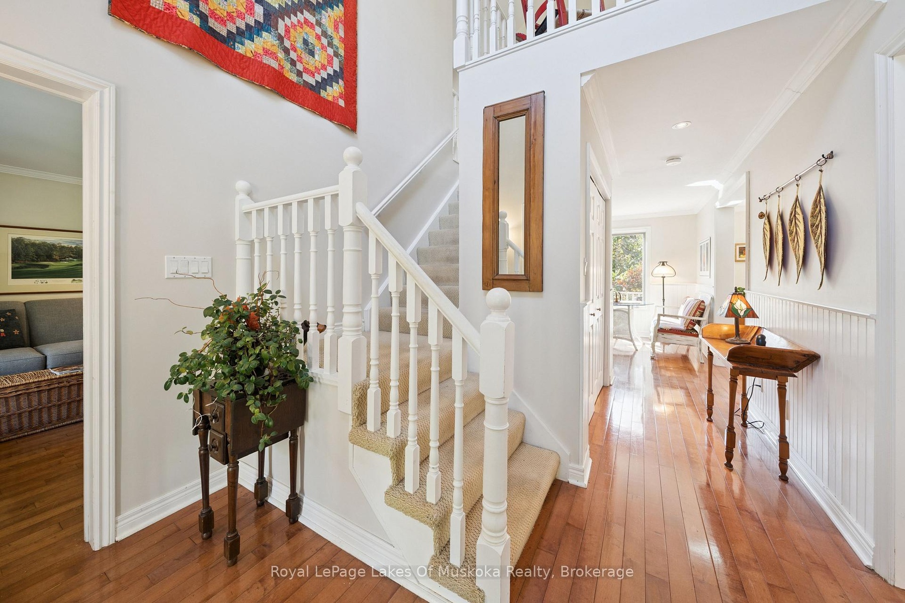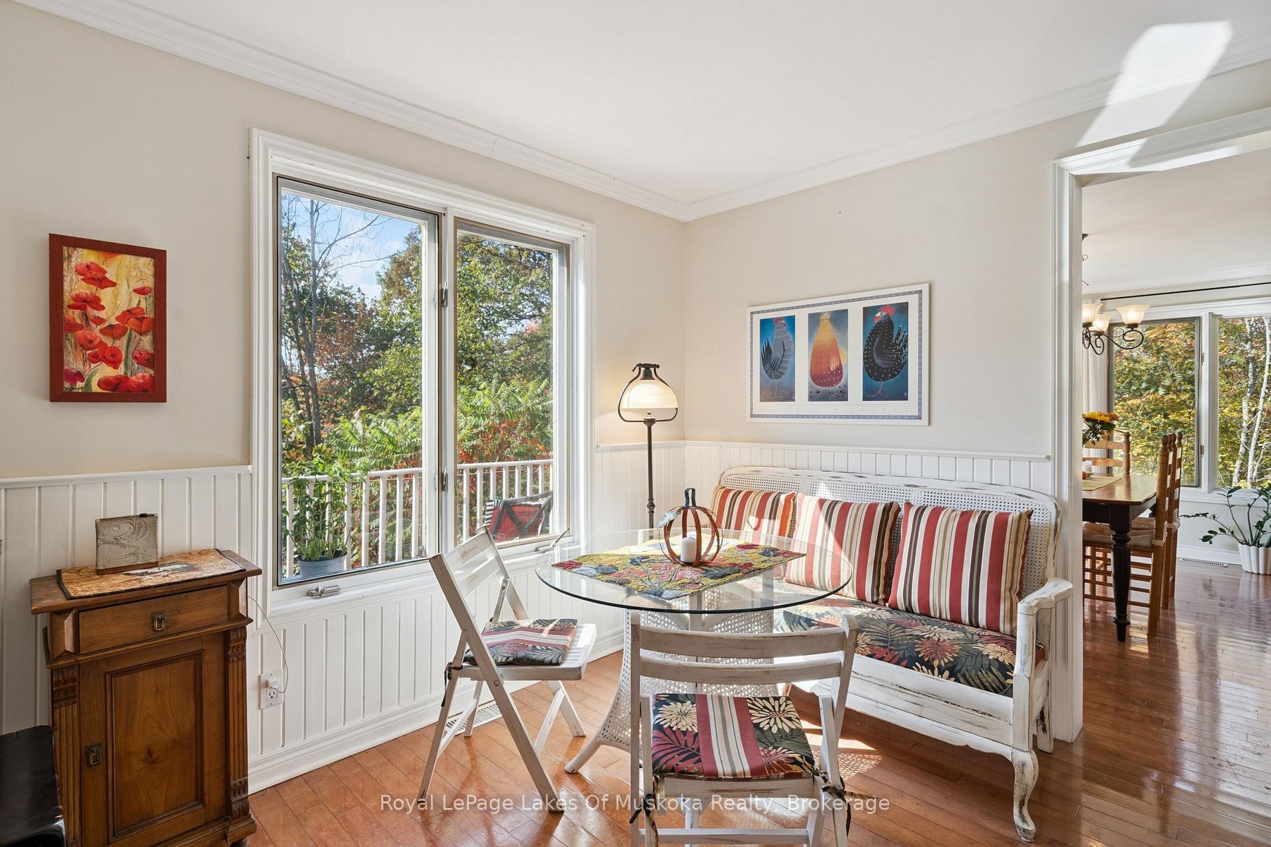 Description3-BDRM + DEN, 2.5 BATH, 1823 SQFT HOME ON 10 ACRES WITH DOUBLE GARAGE, JUST 6 MINUTES FROM IN-TOWN BRACEBRIDGE PLUS COLLECT OVER $220,000 IN PASSIVE INCOME OVER THE NEXT 15+ YEARS! Step through the covered front veranda into the foyer, complete with double closets. The main floor den provides a flexible space that can easily be adapted into an office, playroom, or an additional bedroom. The expansive living and dining area is bathed in natural light, featuring a wood-burning fireplace and direct access to the wrap-around deck. The eat-in kitchen includes a peninsula with a breakfast bar. A laundry closet and a side-entrance mudroom with a two-piece bathroom add to the home's practicality. The second floor features a large primary bedroom suite with a walk-in closet, a five-piece ensuite with a jetted tub, and a private balcony. Two more bedrooms and a spacious four-piece bathroom complete this level. The property sits on 10-acres of unique landscape of rock outcrops and mature forest, providing exceptional privacy and trails to explore. A detached, 23 x 23 double garage with a concrete floor and hydro can serve as a great workshop. The basement, with its exterior access under the deck, is perfect for storage and houses the home's utilities. This home is conveniently located just six minutes from the shops, restaurants, and entertainment in Bracebridge. It's also only 3-minutes from a Lake Muskoka marina and 1-minute from The Fairways at Kirrie Glen. * * * BONUS * * * Collect over $220,000 in passive income over the next 15 years! Bell Mobility leases a small part of the property for a cell tower and pays over $1000-$1300 each month. The tower can not be seen from the house. The property is still yours to enjoy as you desire.Amenities- Backs On Green Belt