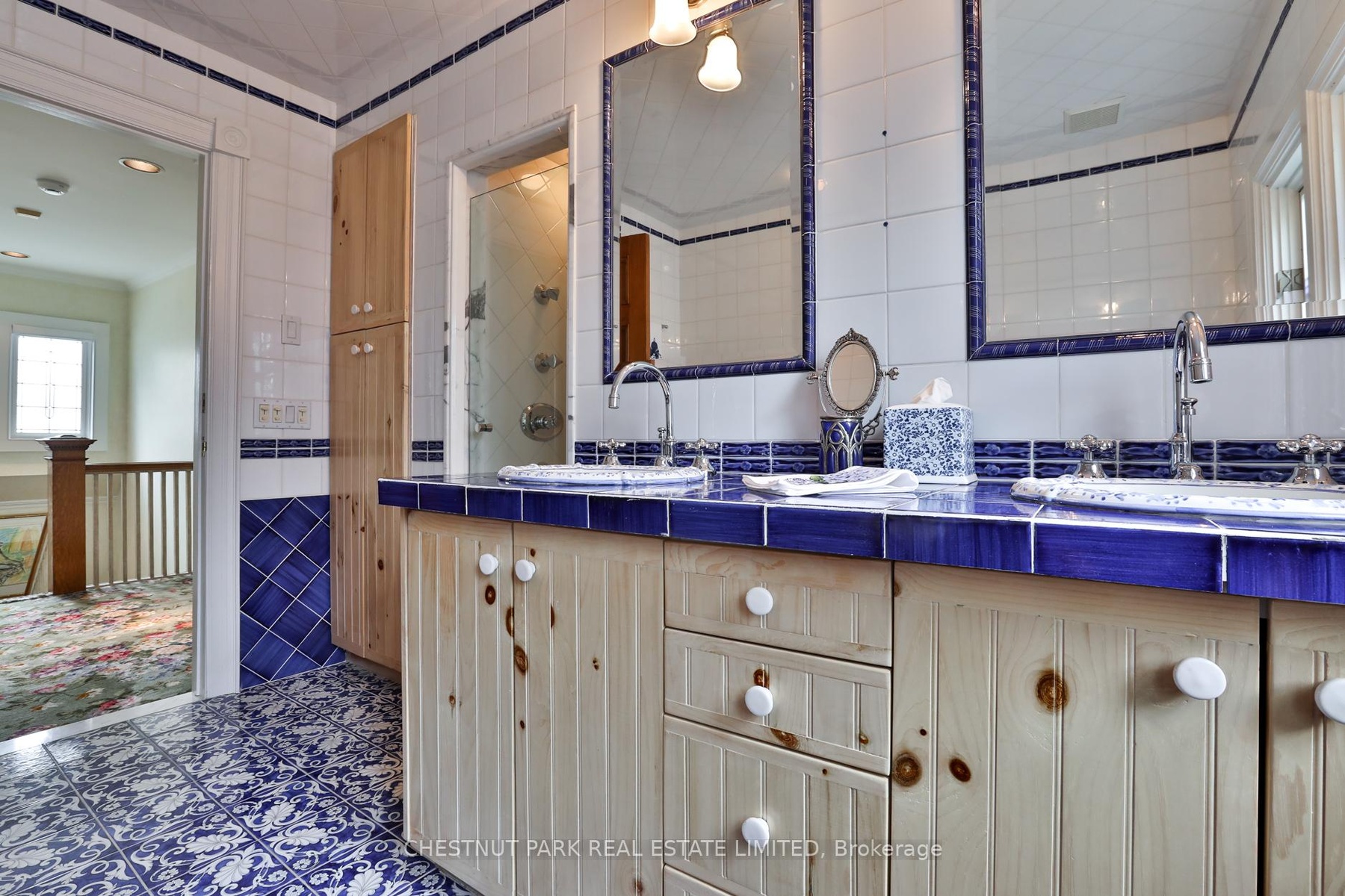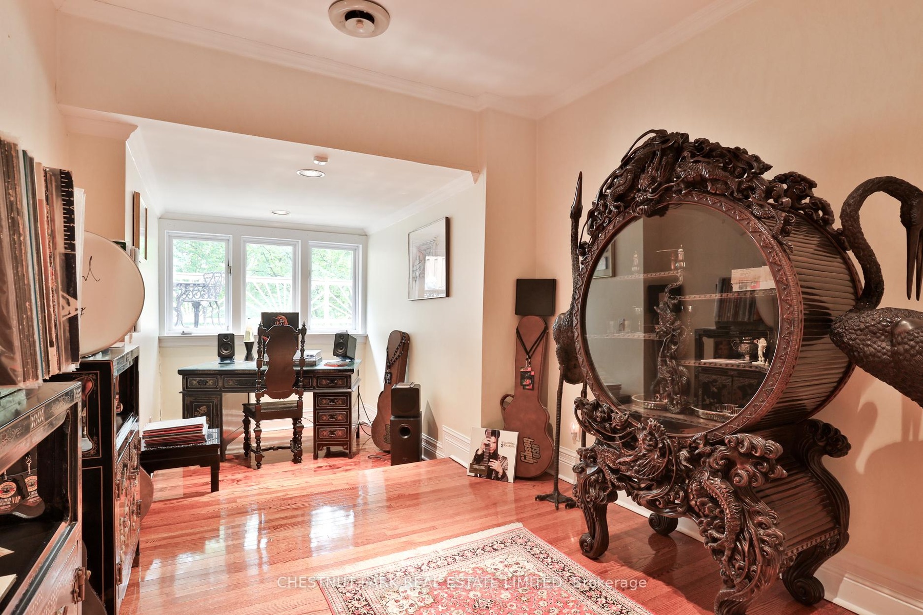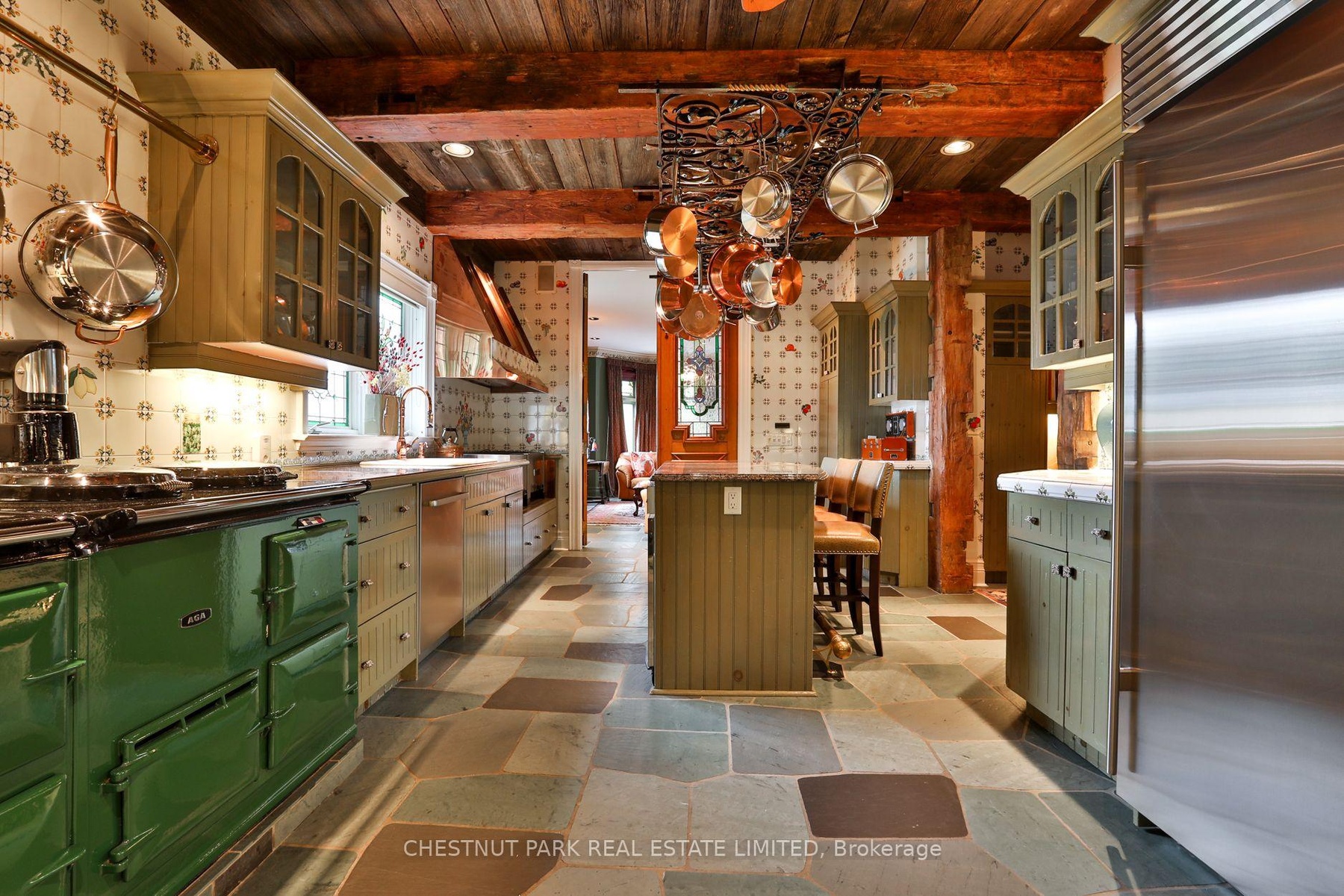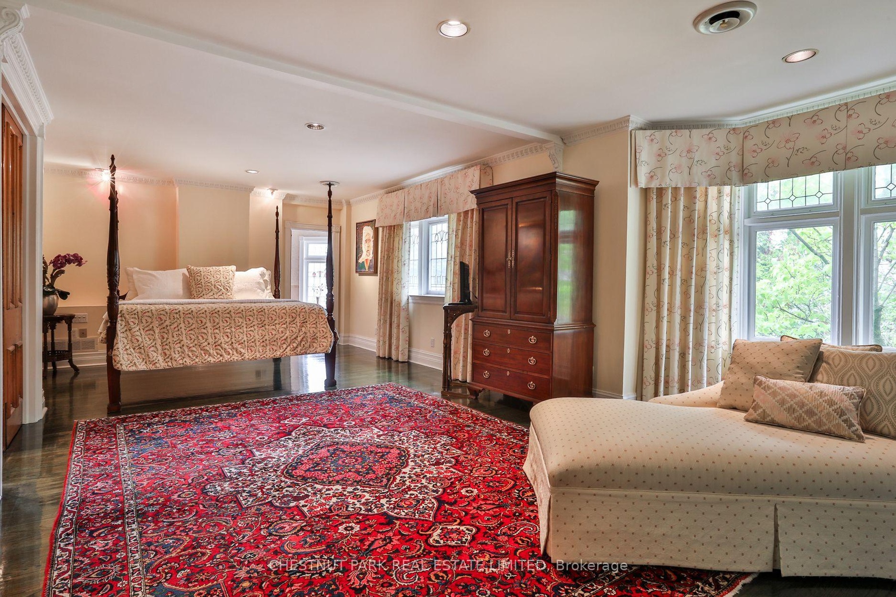 One of a kind old world European vibe. Over 7,000 square feet of incredible character filled space with 7 car gated parking. A unique blend of Ralph Lauren mixed with Aspen, Cabbagetown, Riverdale, the Annex and Rosedale. 4 gas fireplaces on main imported from Europe, 9 foot stained glass doors. Columns, pillars, high ceilings, 6 bedrooms, 6 bathrooms, an incredible chef's kitchen with aga stove and barbeque. Island warming ovens. Tranquil private ravine 245 ft in back with 2 tiered decks. Double car built-in garage.