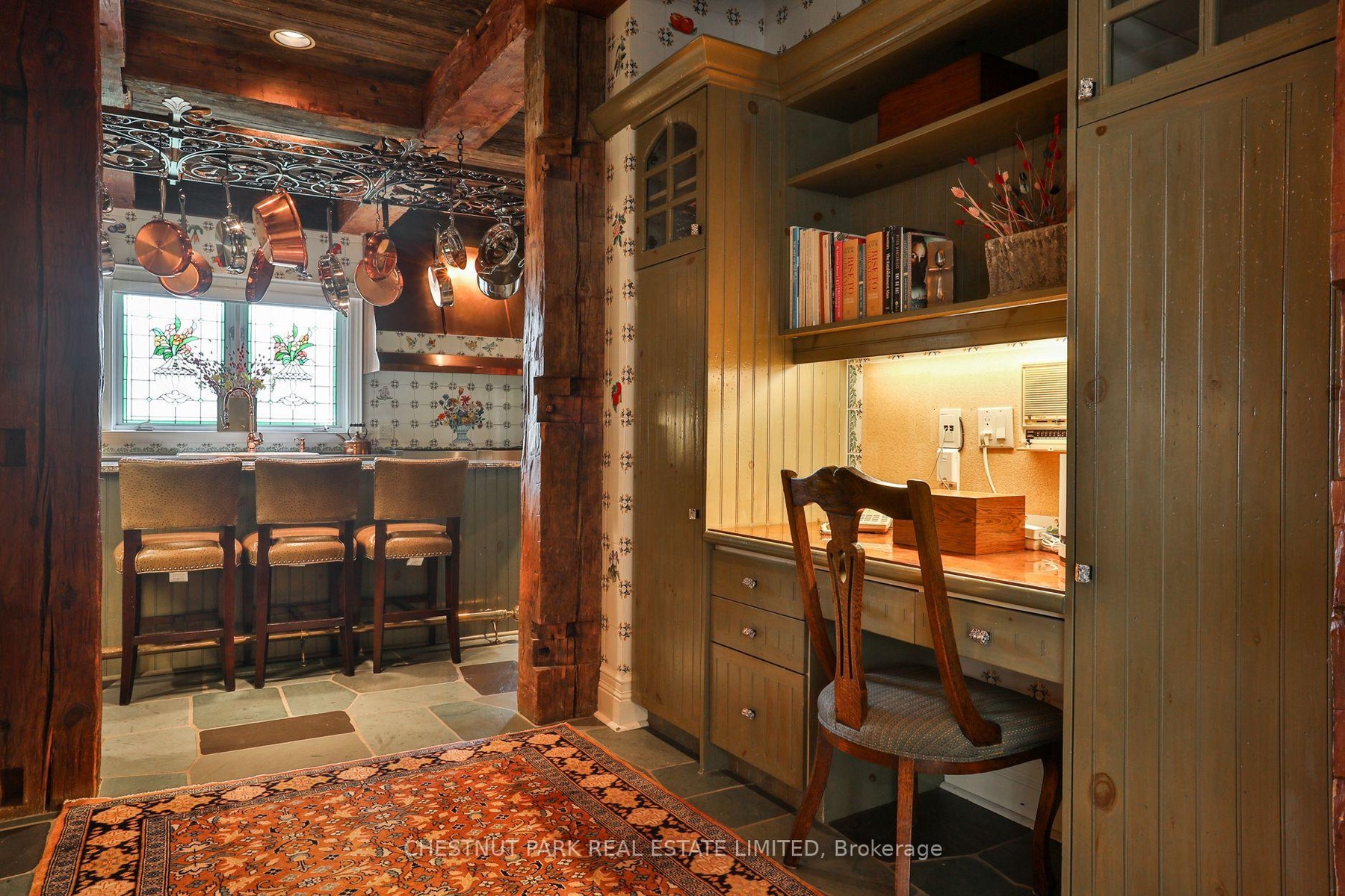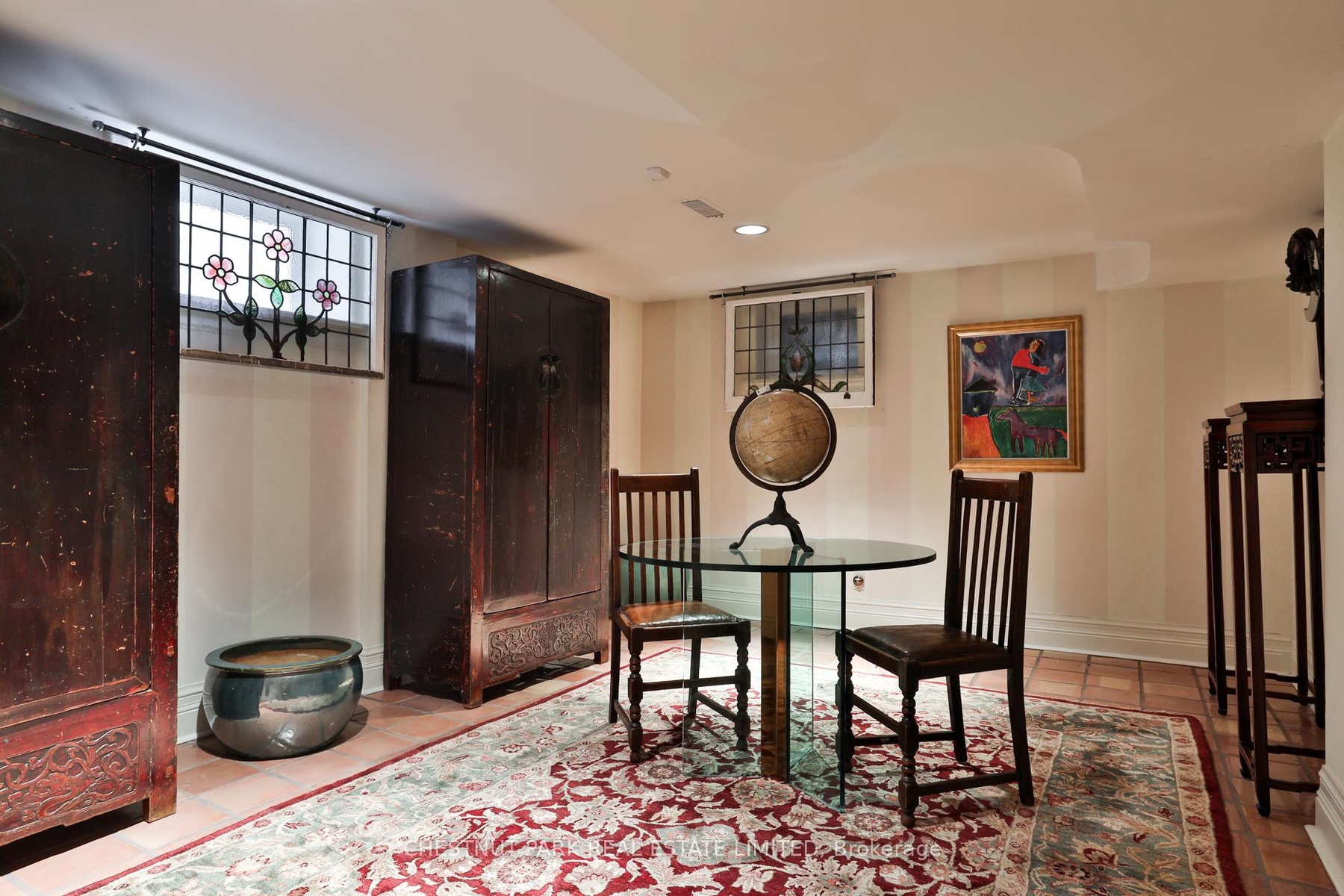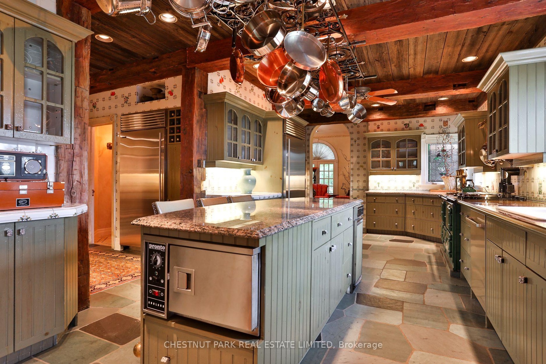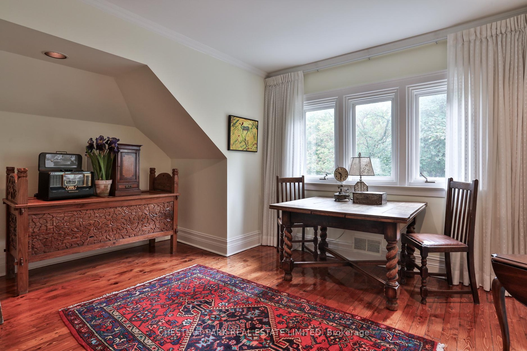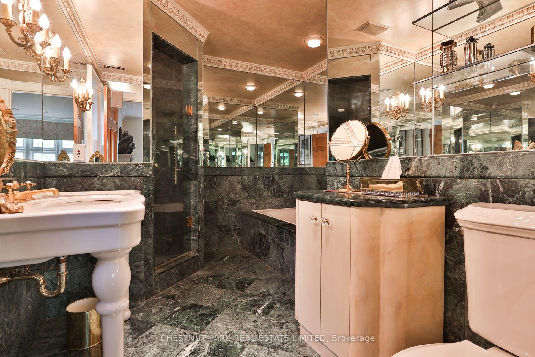 One of a kind old world European vibe. Over 7,000 square feet of incredible character filled space with 7 car gated parking. A unique blend of Ralph Lauren mixed with Aspen, Cabbagetown, Riverdale, the Annex and Rosedale. 4 gas fireplaces on main imported from Europe, 9 foot stained glass doors. Columns, pillars, high ceilings, 6 bedrooms, 6 bathrooms, an incredible chef's kitchen with aga stove and barbeque. Island warming ovens. Tranquil private ravine 245 ft in back with 2 tiered decks. Double car built-in garage.