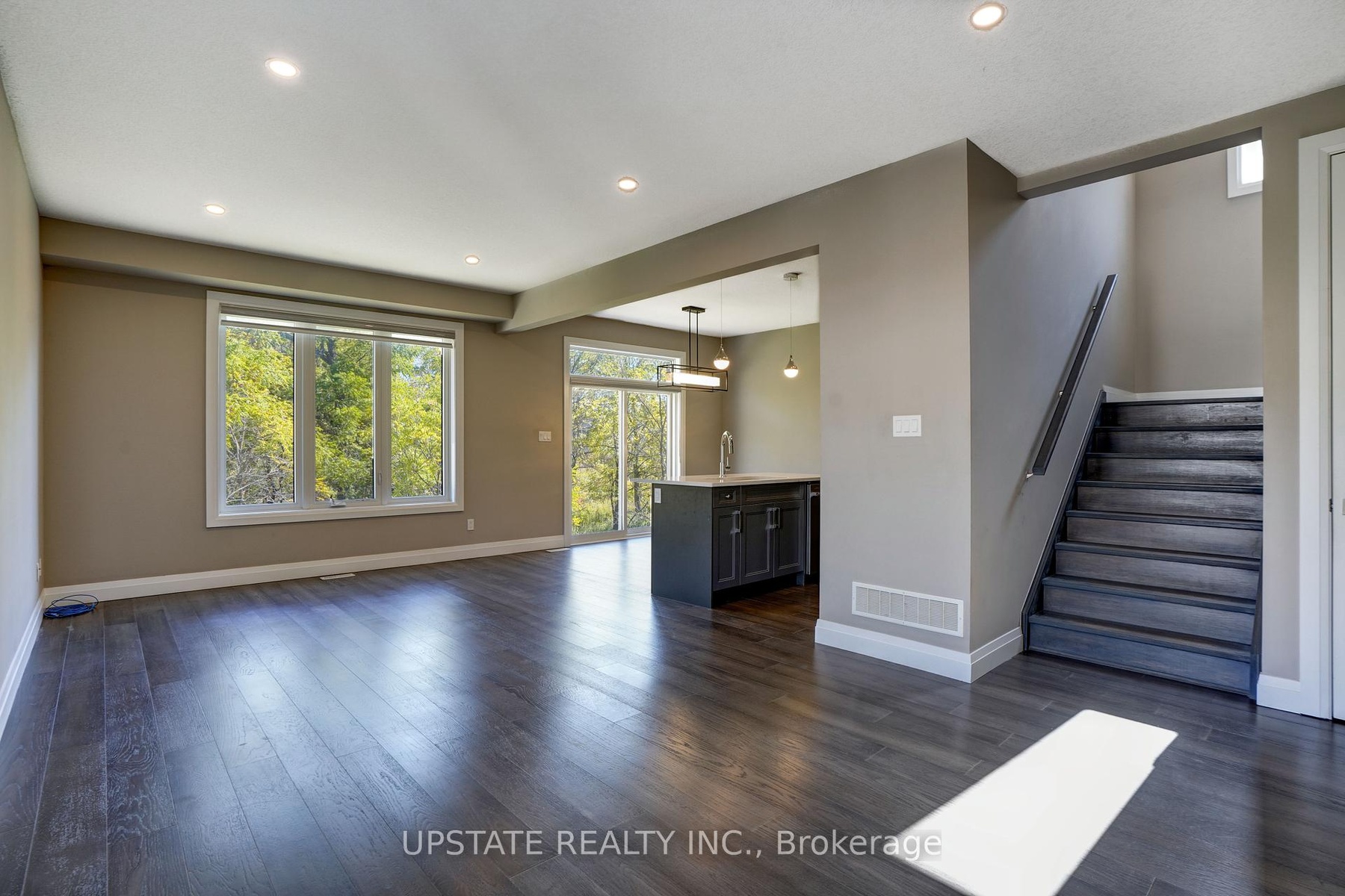 DescriptionSunlight Heritage Homes proudly offers 1,949 sq. ft. of thoughtfully crafted living space in the sought-after Old Victoria on the Thames community, perfectly situated with views of green space and a serene pond. The spacious open-concept main floor features a stylish kitchen with quartz countertops, 36" upper cabinets complete with valance and crown moulding, a microwave shelf, and a functional island with a breakfast bar. The adjoining great room boasts 9' ceilings and large windows that fill the space with natural light, while the dinette includes sliding doors leading to the backyard. A convenient 2-piece bathroom completes the main level. Upstairs, youll find four generous bedrooms, including a primary suite with a walk-in closet and a luxurious 4-piece ensuite featuring double sinks. The upper level also includes a laundry closet and a main bathroom. The bright walk-out basement offers access to the peaceful pond and green space.Standard features include laminate flooring on the main level (excluding the bathroom), a 5' patio slider, 9' ceilings on the main floor, a basement bathroom rough-in, a fully drywalled garage, and two pot lights above the island plus much more!Amenities- Forest