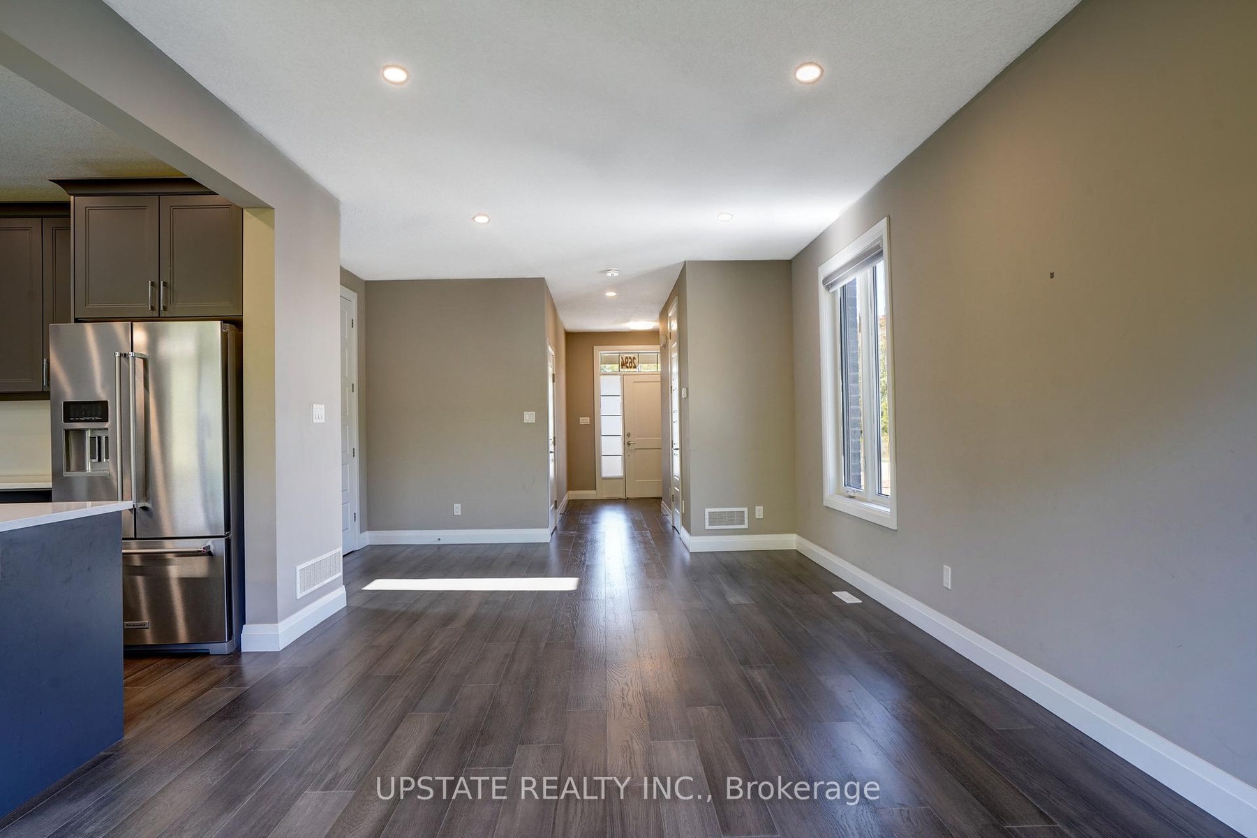 Sunlight Heritage Homes proudly offers 1,949 sq. ft. of thoughtfully crafted living space in the sought-after Old Victoria on the Thames community, perfectly situated with views of green space and a serene pond. The spacious open-concept main floor features a stylish kitchen with quartz countertops, 36" upper cabinets complete with valance and crown moulding, a microwave shelf, and a functional island with a breakfast bar. The adjoining great room boasts 9' ceilings and large windows that fill the space with natural light, while the dinette includes sliding doors leading to the backyard. A convenient 2-piece bathroom completes the main level. Upstairs, youll find four generous bedrooms, including a primary suite with a walk-in closet and a luxurious 4-piece ensuite featuring double sinks. The upper level also includes a laundry closet and a main bathroom. The bright walk-out basement offers access to the peaceful pond and green space.Standard features include laminate flooring on the main level (excluding the bathroom), a 5' patio slider, 9' ceilings on the main floor, a basement bathroom rough-in, a fully drywalled garage, and two pot lights above the island plus much more!