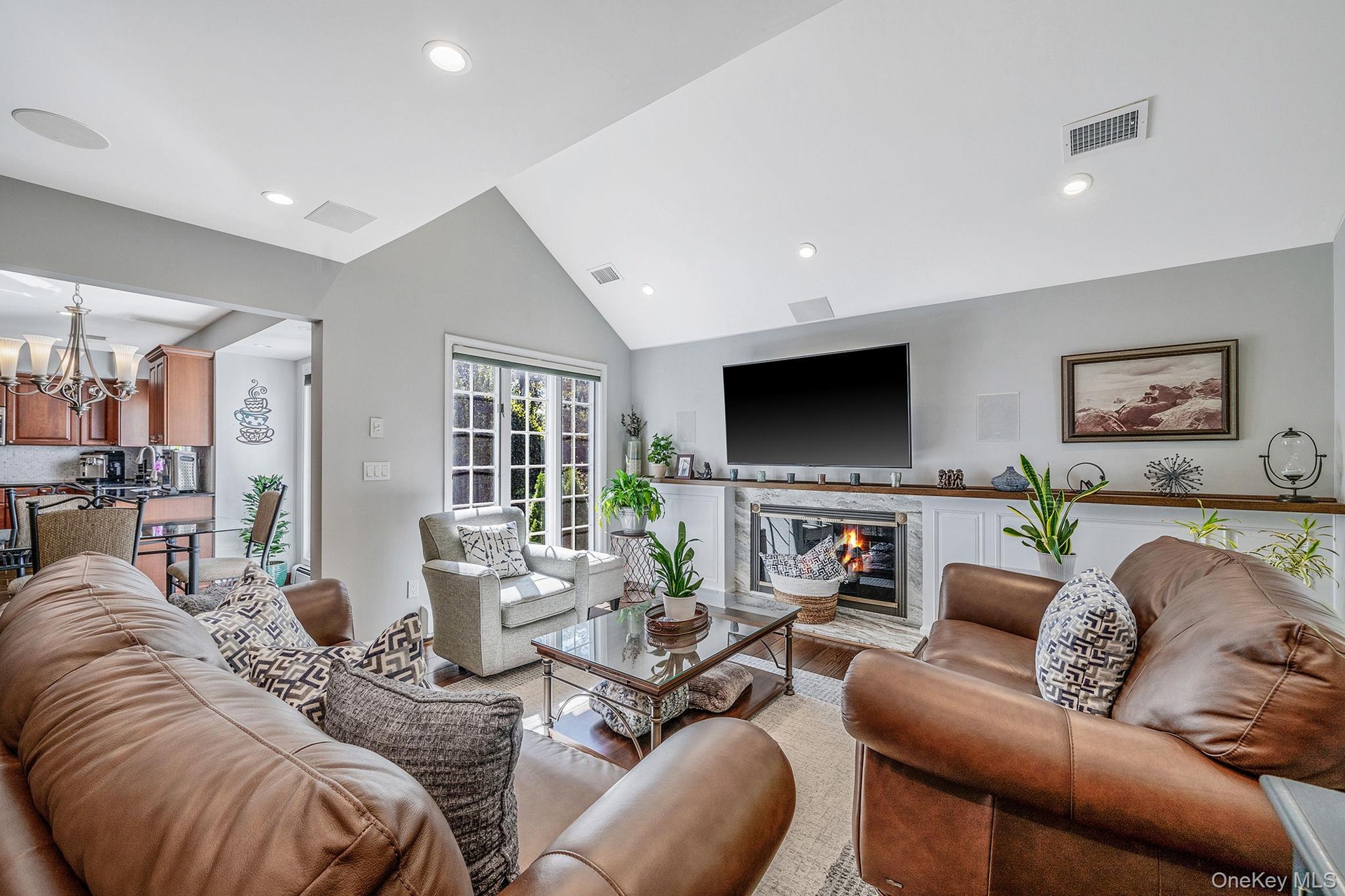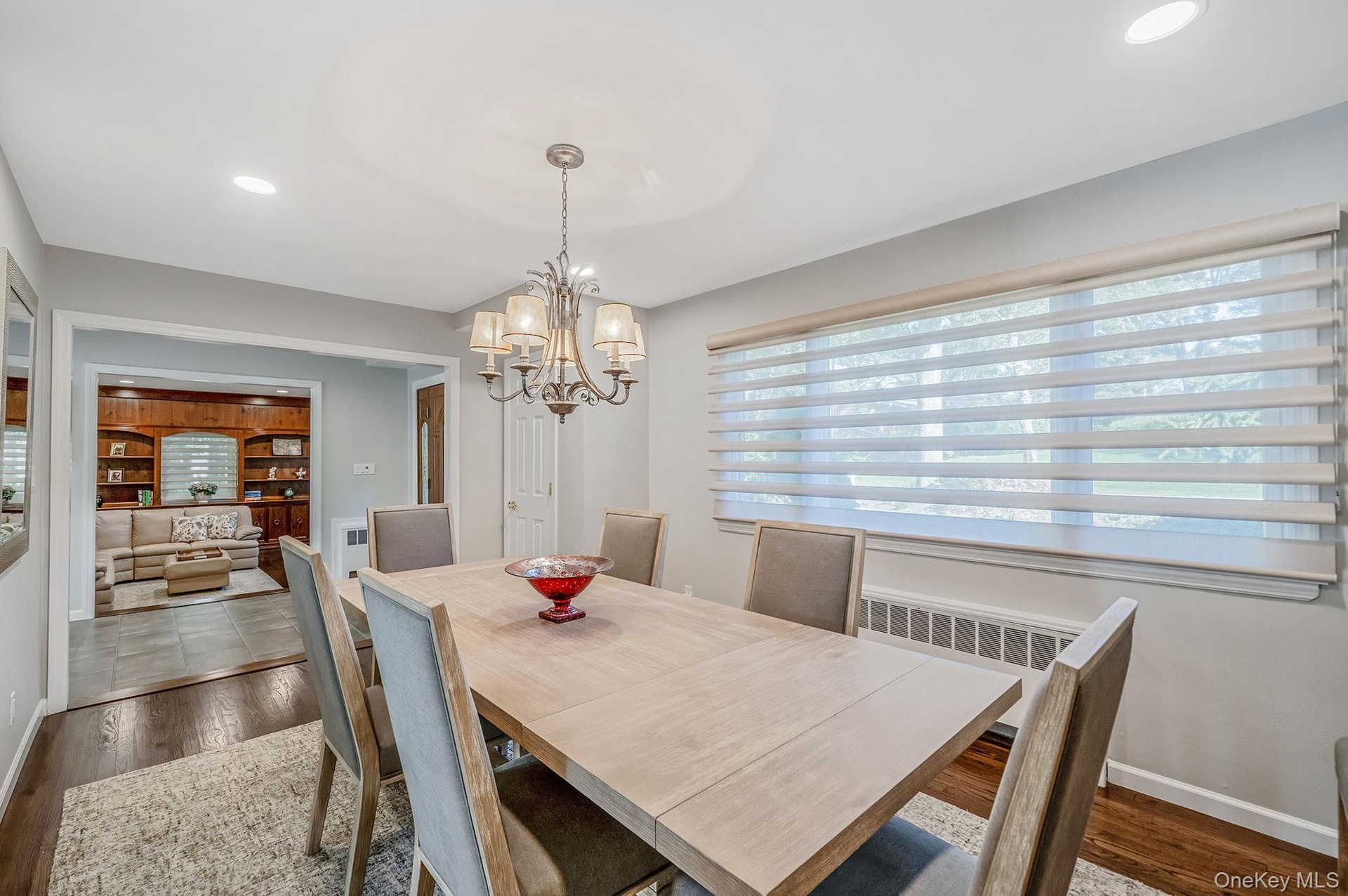 Welcome to 6 Buckingham Drive, a beautifully updated colonial nestled on a serene, perfectly located mid block on a 1-acre lot in the heart of Dix Hills. This spacious home features four bedrooms, three full bathrooms, and a powder room, offering a perfect blend of classic charm and modern updates. Inside, you'll find refinished hardwood floors (2019) and a raised ceiling that adds a dramatic sense of space. The kitchen, updated and featuring a 2019 tile backsplash, is in excellent condition and flows seamlessly into the main living areas, centered around a cozy wood-burning fireplace. The primary bathroom was tastefully renovated in 2017. Updated carpeting upstairs and hardwood lies beneath most carpeted areas. The home includes an insulated garage, a sub panel updated just a year ago, and a 200-amp main electrical panel. This home is move in ready and conveniently located. This is the ideal setting to enjoy Long Island living at its best.