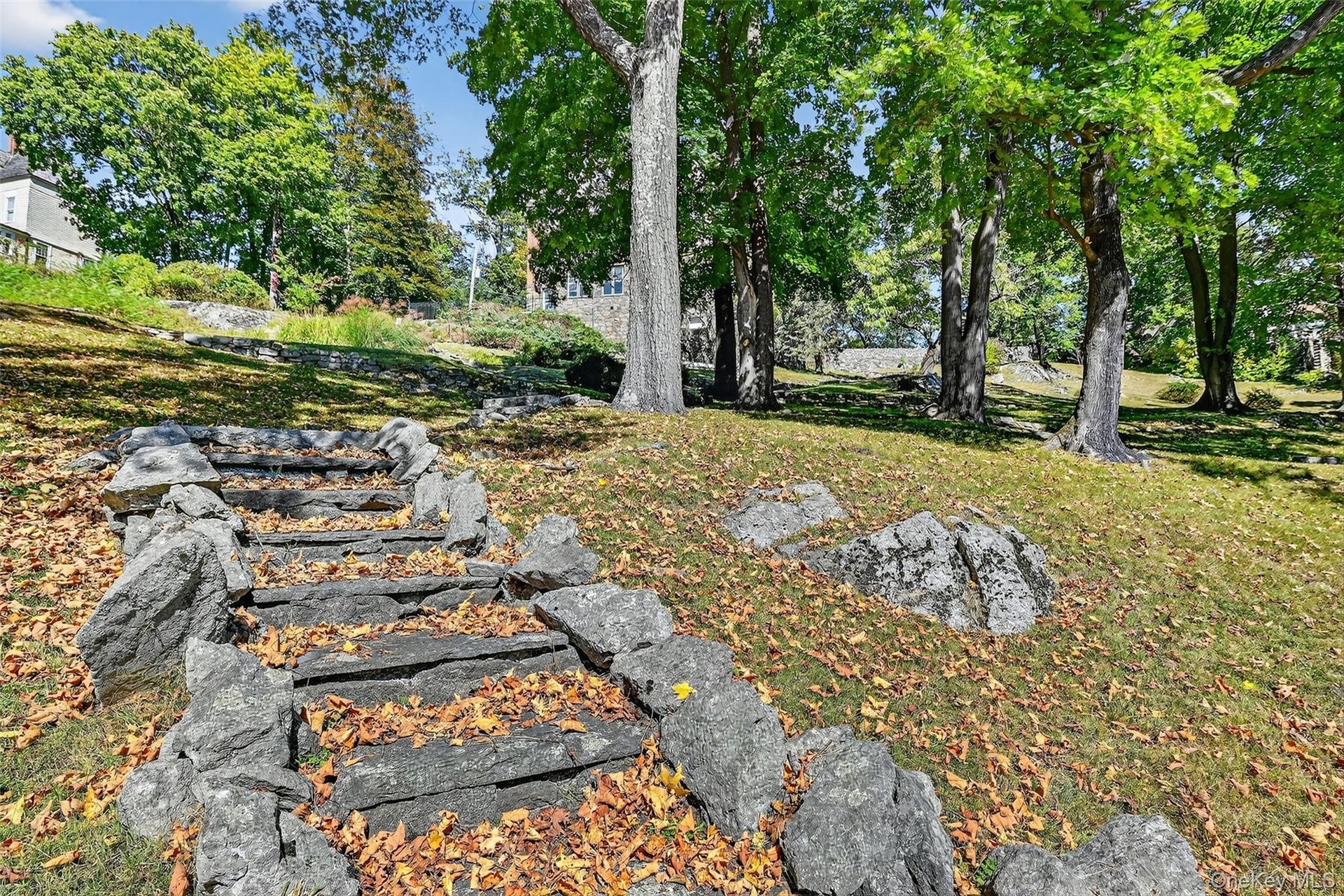 An architectural tour-de-force with commanding siting, the former Herbert C. Pell residence stands among the most distinguished homes in Tuxedo Park - one of few positioned at high elevation with panoramic lake and mountain views to the South, East, and West. Designed in the late 1890s by architect William A. Bates, this masterpiece rises from a monolithic, native stone foundation, its structure appearing to emerge naturally from the hillside as a testament to engineering and artistry. Finely laid brick and hand-crafted millwork form an exterior of remarkable beauty and enduring craftsmanship. The facade’s Neoclassical, Georgian, Queene Anne and Greek Revival details along with the Dutch-gambrel rooflines, create a residence of timeless appeal in the classic Tuxedo Park vernacular. Inside, the home is balanced between grandeur and comfort, making it as ideal for entertaining on a grand scale as it is for refined daily living. A formal entry and sweeping staircase introduce high-ceilinged rooms filled with natural light and long views over Tuxedo Lake. A columned octagonal living room with intricate millwork and large windows anchor the formal spaces, while the restored oak-paneled dining room features a wood-burning fireplace and generous scale for gatherings both intimate and large. Both rooms open to an elevated, covered porch that extends the living area outside to embrace breathtaking vistas with Tuxedo Lake shimmering below, under sunrise and sunset. Throughout the home, six distinctive fireplaces punctuate the interiors with warmth and architectural interest. Rounding out the main level are the kitchen and the richly appointed library with bar shelving, built-in book shelving, and oversized windows. The second floor offers five spacious bedrooms, some with striking lake or mountain views, fireplaces and en-suite baths. The primary suite offers exceptional views, fireplace, dressing room, walk-in-closet and ensuite bath. The partially renovated top floor invites customization as studios, playroom, exercise rooms, or guest suite, here also with outstanding scenic views. A walk-out lower level enhances versatility with a private office, summer kitchen, recreation room, full bath, three-season porch, and a climate-controlled wine room. Set on approximately 1.5 acres, the property features terraced lawns, and stone garden pathways. Mature trees, native plantings, and the elevated topography ensure privacy and scenic beauty in every season. Perfectly situated in the heart of historic, 24-hour-guarded Tuxedo Park - just about one hour from New York City - this landmark residence embodies the community’s architectural legacy and lakeside lifestyle, offering a rare combination of premium location, architectural provenance and comfortable, inspired living.