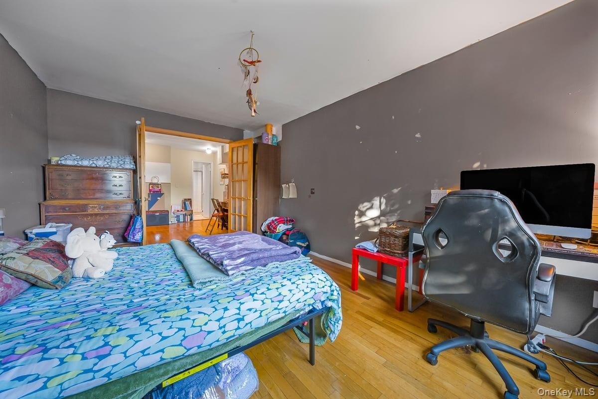 - Bedroom featuring hardwood / wood-style flooring and a desk