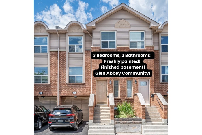 DescriptionWelcome to this beautifully maintained 3-bedroom townhouse in the highly sought-after Glen Abbey community one of Oakville's most desirable neighbourhoods known for its top-rated schools, parks, and family-friendly charm. This bright and inviting home offers an open-concept main floor with a spacious living and dining area, perfect for entertaining or relaxing with loved ones. The large windows flood the space with natural light, creating a warm and welcoming atmosphere. The well-designed kitchen features ample cabinet and counter space, making meal preparation both convenient and enjoyable. Upstairs, you will find three generous bedrooms, including a primary suite with a private ensuite bathroom and plenty of closet space. Each bedroom is designed for comfort, offering a peaceful retreat for every family member. The fully finished walk-out basement adds versatility perfect for a family room, home office, gym, or guest suite. From here, you can step directly into the backyard to enjoy outdoor living in a private and serene setting.This home is ideally located within minutes of the Glen Abbey Community Centre, major highways (QEW, 403, 407), shopping plazas, restaurants, and beautiful parks. Whether you are commuting, shopping, or exploring Oakville's vibrant amenities, everything you need is right at your doorstep.Amenities- Carpet Free