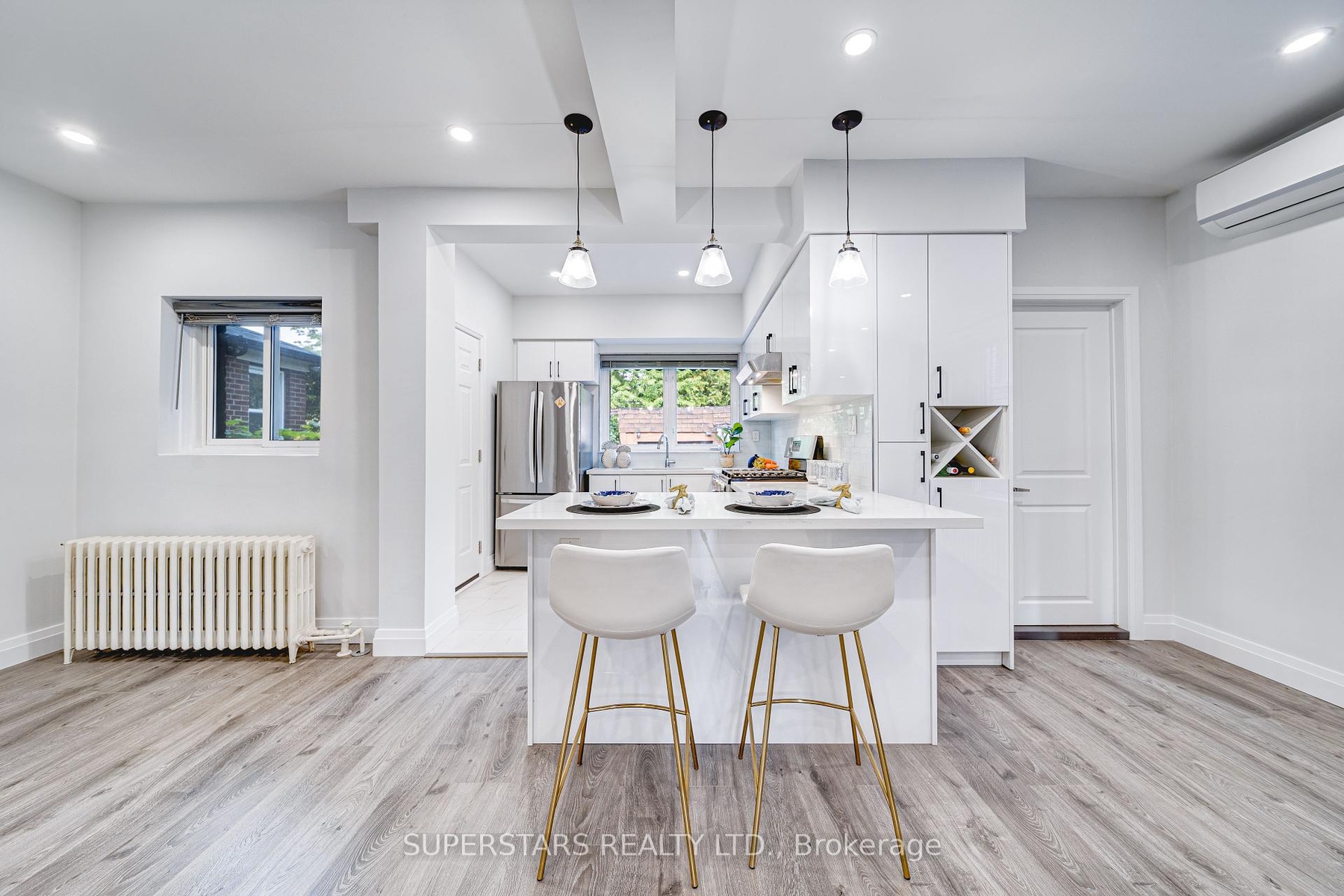 DescriptionWelcome to custom-renovated (2021) detached home on Oakwood Ave. Bright living room with natural light from windows. Open-concept dining room, modern kitchen with quartz countertops, ceramic backsplash, pot lights, and laminate flooring throughout. Cozy bedrooms designed for comfort and rest. Bonus loft space ideal for a home office, study, or play area. Double garage plus driveway parking for up to 6 cars. This home offers separate entrance to a 2-bedroom basement apartment, perfect for rental income. Minutes from Casa Loma, Upper Canada College, supermarkets, shops and restaurants.Amenities- Carpet Free