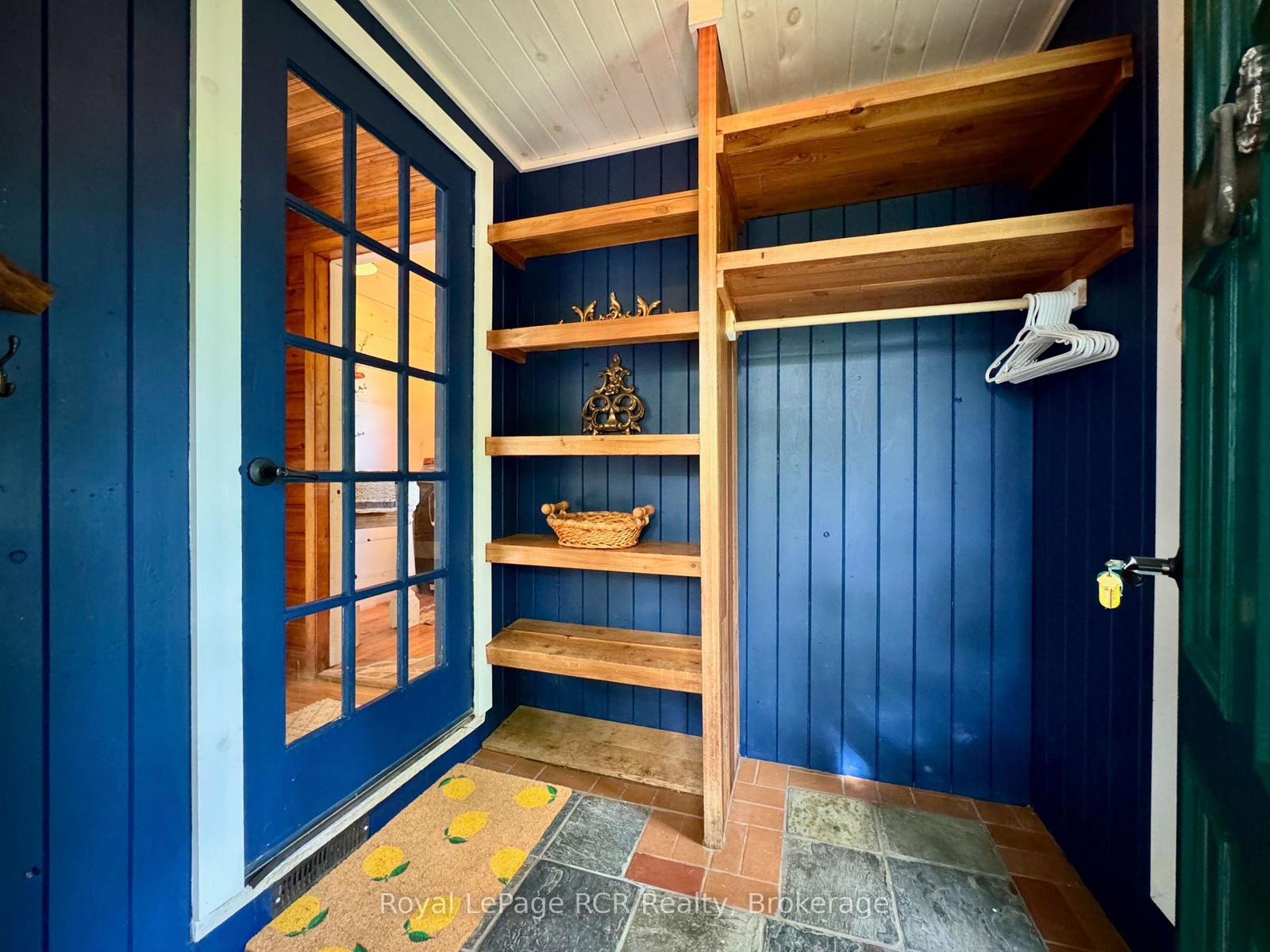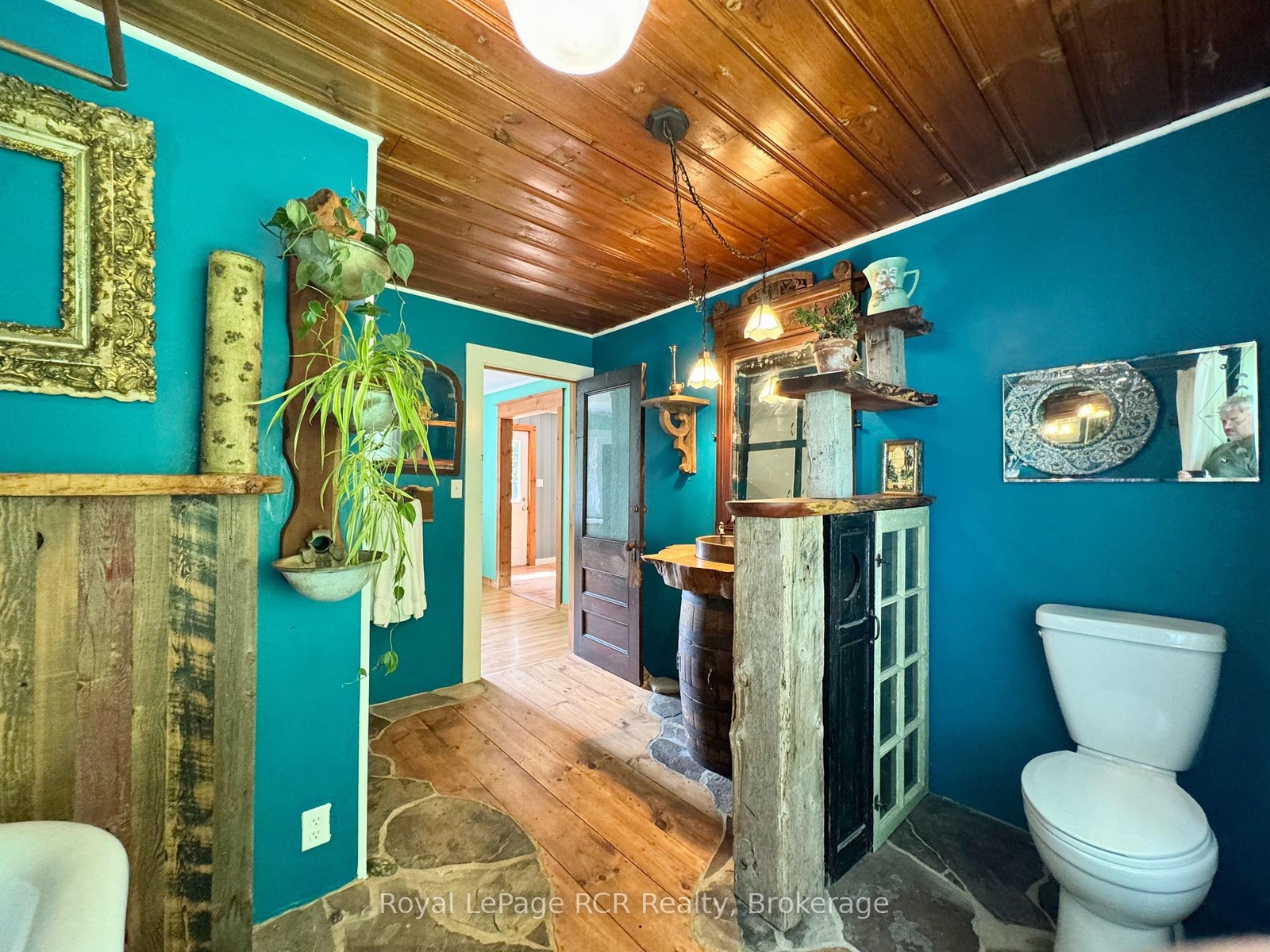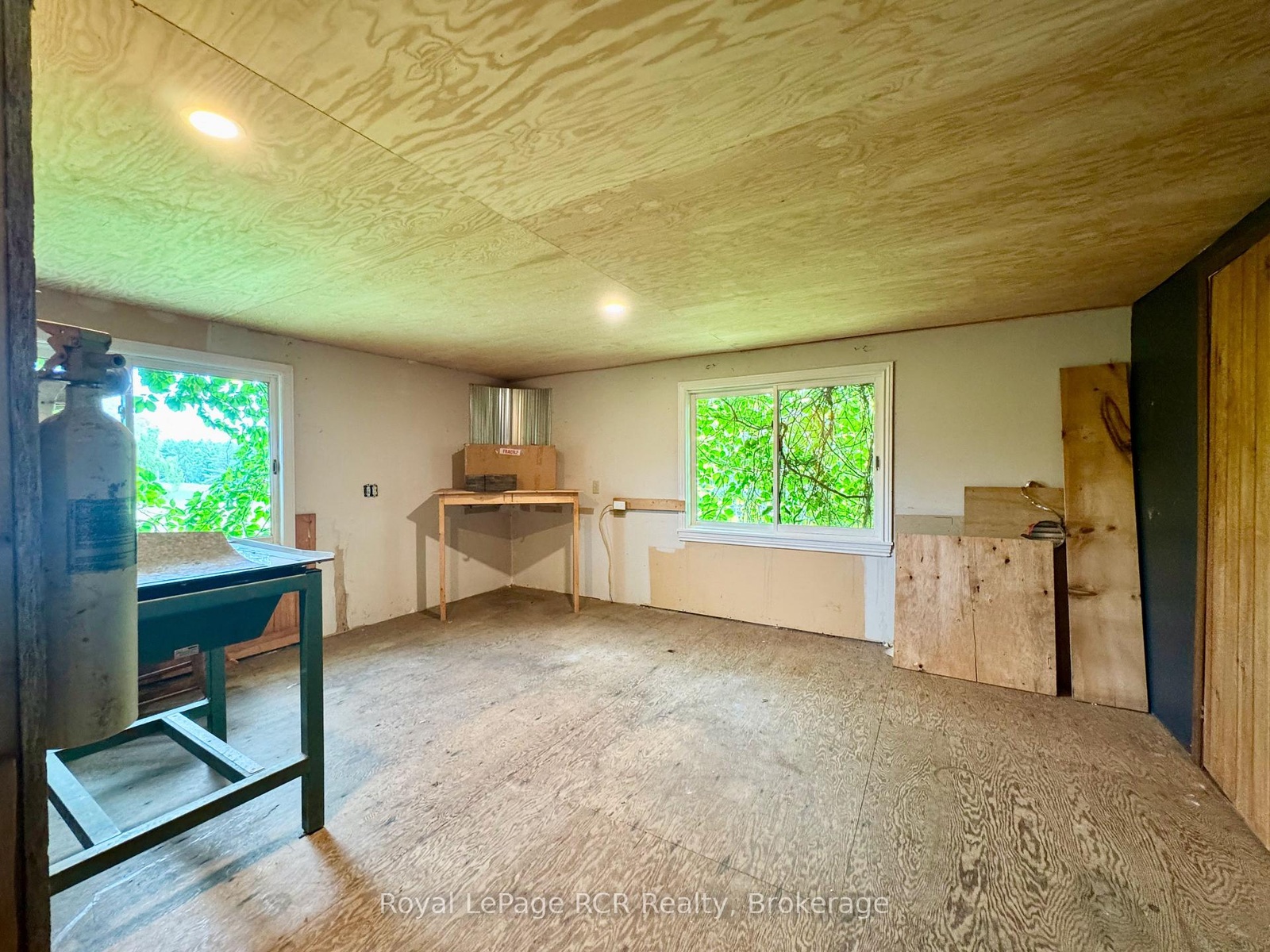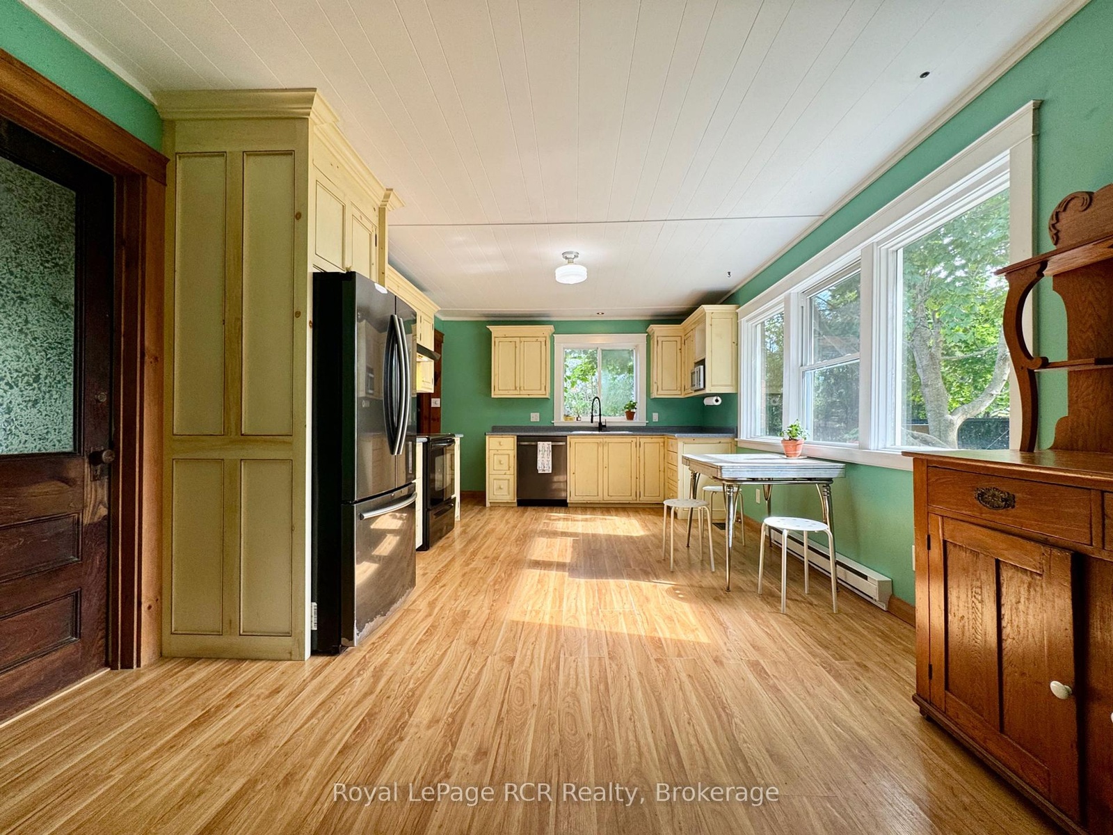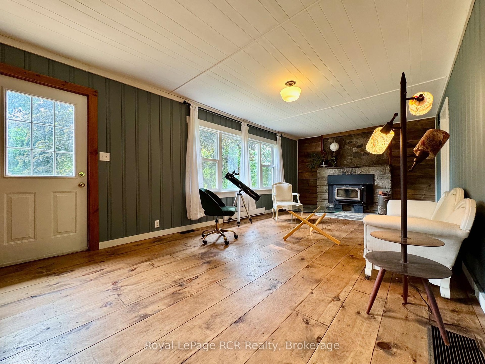 DescriptionA HIDDEN GEM only fully appreciated with a VISIT! This ONE-FLOOR LIVING HOME or 4-SEASON VACATION RETREAT + a 2,100+ SQ FT GARAGE/SHOP set on a 1+ ACRE PROPERTY surrounded by lush pasture farmland & forest, and steps to BRUCE TRAIL ACESS! Entire property shows MODERN RUSTIC COUNTRY charm! The real hidden gem is apparent from the moment you enter the mudroom foyer with bold nautical blue colour, CUSTOM STONE-TILE floor and WOOD BUILT-INS. Step further into this home, you see a MODERN FINISH LAUNDRY ROOM including LIVE-EDGE WOOD folding counter and shelving, OPEN CONCEPT KITCHEN-DINING with NEWER CABINETRY and MODERN APPLIANCES, living room offers WIDE-PLANK WOOD FLOORING, BARN-BOARD FEATURE-WALL and stone fireplace w/EFFICIENT AIR-TIGHT WOOD INSERT. Two large, bright bedrooms with built-ins and PAINTED T&G WOOD CEILINGS, a 'SHOW STOPPER' CUSTOM FINISH BATHROOM w/mix of WOOD & NATURAL-STONE FLOORING, wood counter & COPPER SINK & HARDWARE . ... this raised bungalow offers 1,100+ sq ft of COMPLETE UNIQUENESS + 700+ SQ FT of DECKING! 1+ acre of property with 400ft of frontage and LUSH GREEN SPACE FOR PRIVACY. A fully INSULATED GARAGE-SHOP with 2,100+ SQ FT of extra work-living space ON TWO LEVELS w/200amp power & plumbing rough-in would make a perfect STUDIO or SEPARATE RESIDENCE! A great 'country' setting on paved road less than 10mins to the QUANT VILLAGE of Lions Head (shopping, hospital w/24hr emerg, health clinic, library, post office, marina & sand beach), 22 mins to National Park/Grotto, 30mins to Tobermory! This unique property offers PRIVACY and is SURROUNDED BY NATURE... definitely WORTH BOOKING A VIEWING!!Amenities- Deck
