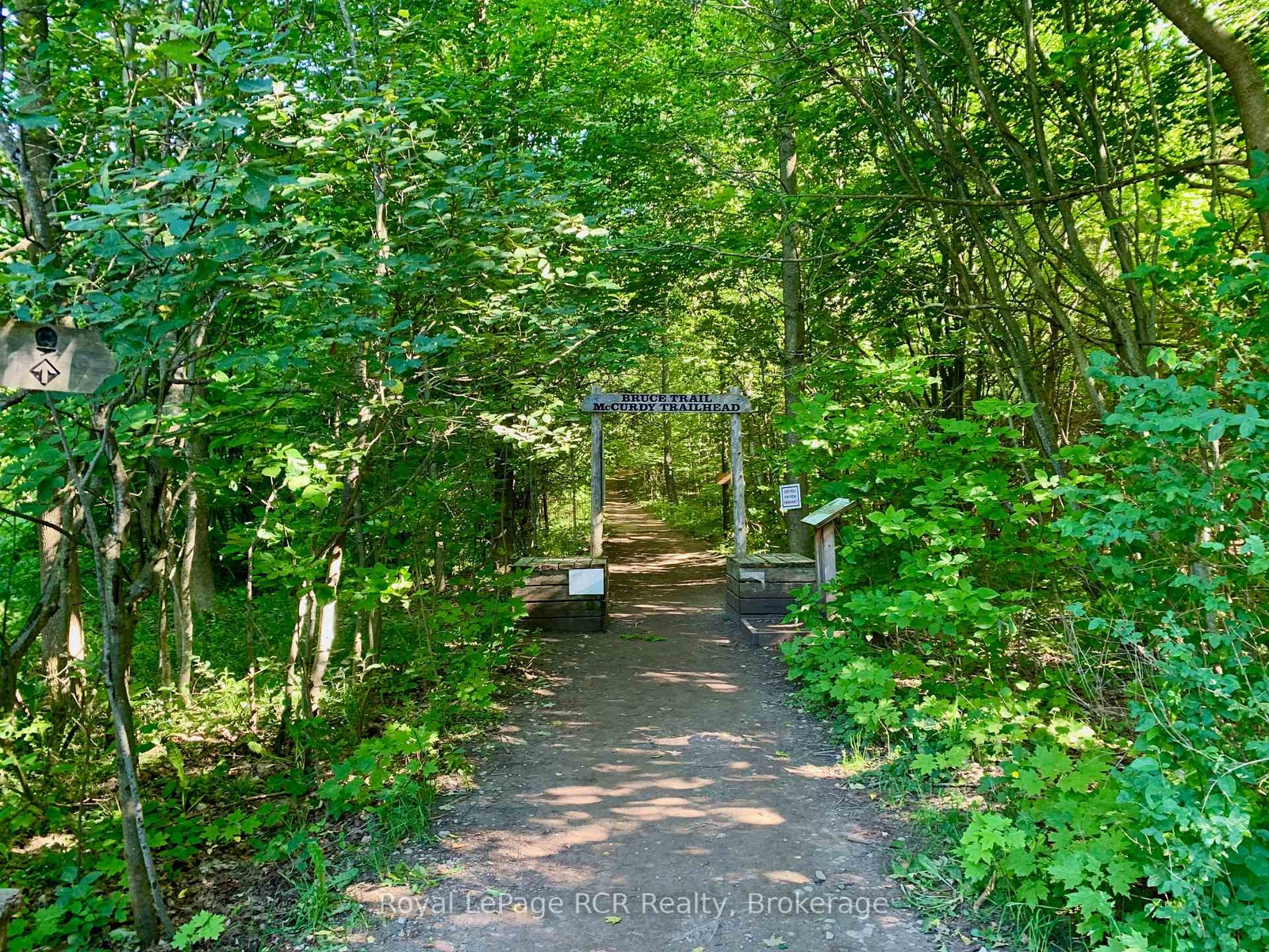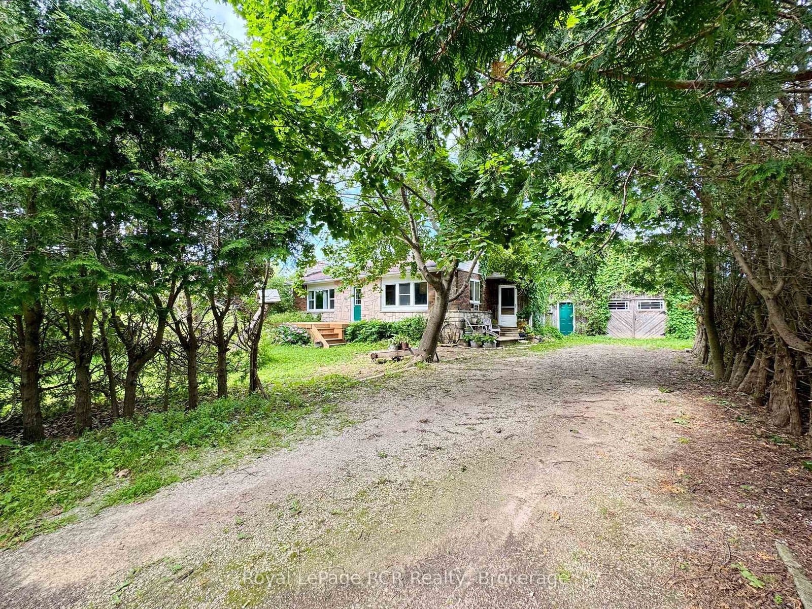 A HIDDEN GEM only fully appreciated with a VISIT! This ONE-FLOOR LIVING HOME or 4-SEASON VACATION RETREAT + a 2,100+ SQ FT GARAGE/SHOP set on a 1+ ACRE PROPERTY surrounded by lush pasture farmland & forest, and steps to BRUCE TRAIL ACESS! Entire property shows MODERN RUSTIC COUNTRY charm! The real hidden gem is apparent from the moment you enter the mudroom foyer with bold nautical blue colour, CUSTOM STONE-TILE floor and WOOD BUILT-INS. Step further into this home, you see a MODERN FINISH LAUNDRY ROOM including LIVE-EDGE WOOD folding counter and shelving, OPEN CONCEPT KITCHEN-DINING with NEWER CABINETRY and MODERN APPLIANCES, living room offers WIDE-PLANK WOOD FLOORING, BARN-BOARD FEATURE-WALL and stone fireplace w/EFFICIENT AIR-TIGHT WOOD INSERT. Two large, bright bedrooms with built-ins and PAINTED T&G WOOD CEILINGS, a 'SHOW STOPPER' CUSTOM FINISH BATHROOM w/mix of WOOD & NATURAL-STONE FLOORING, wood counter & COPPER SINK & HARDWARE . ... this raised bungalow offers 1,100+ sq ft of COMPLETE UNIQUENESS + 700+ SQ FT of DECKING! 1+ acre of property with 400ft of frontage and LUSH GREEN SPACE FOR PRIVACY. A fully INSULATED GARAGE-SHOP with 2,100+ SQ FT of extra work-living space ON TWO LEVELS w/200amp power & plumbing rough-in would make a perfect STUDIO or SEPARATE RESIDENCE! A great 'country' setting on paved road less than 10mins to the QUANT VILLAGE of Lions Head (shopping, hospital w/24hr emerg, health clinic, library, post office, marina & sand beach), 22 mins to National Park/Grotto, 30mins to Tobermory! This unique property offers PRIVACY and is SURROUNDED BY NATURE... definitely WORTH BOOKING A VIEWING!!