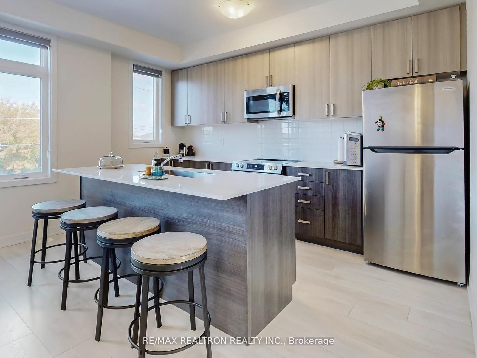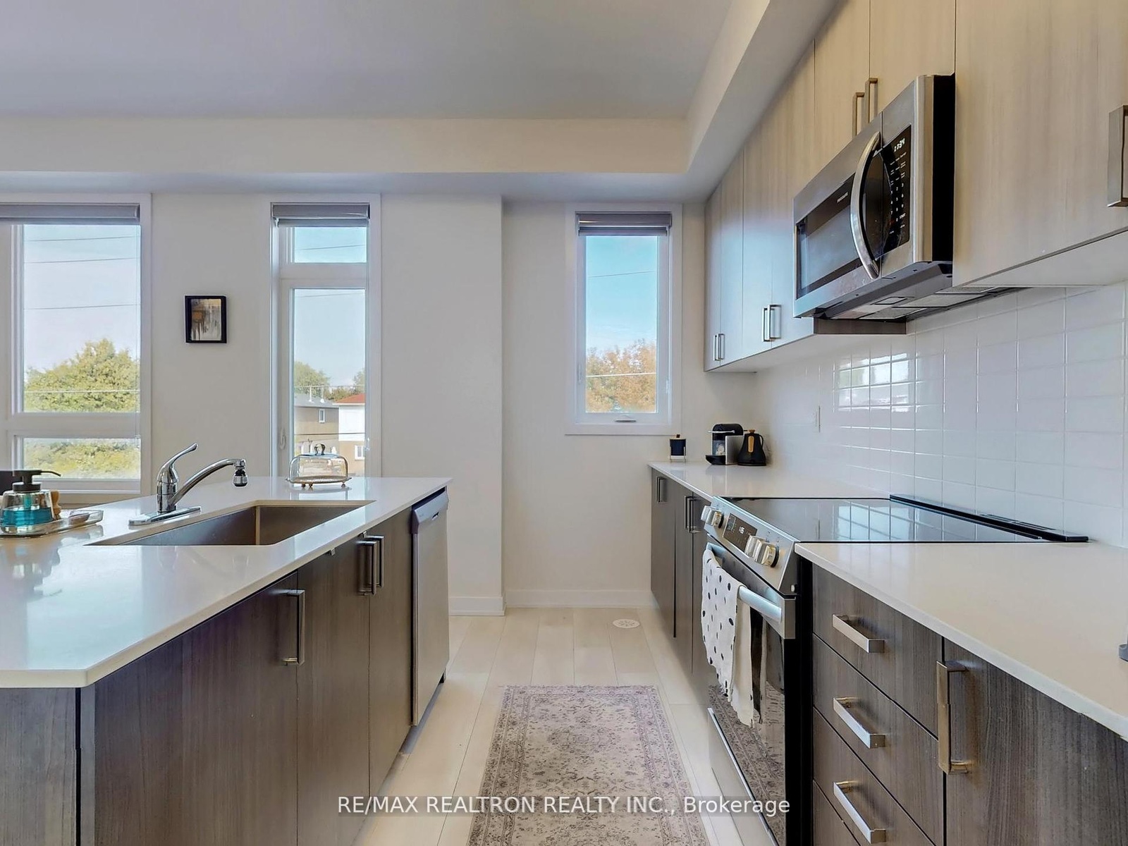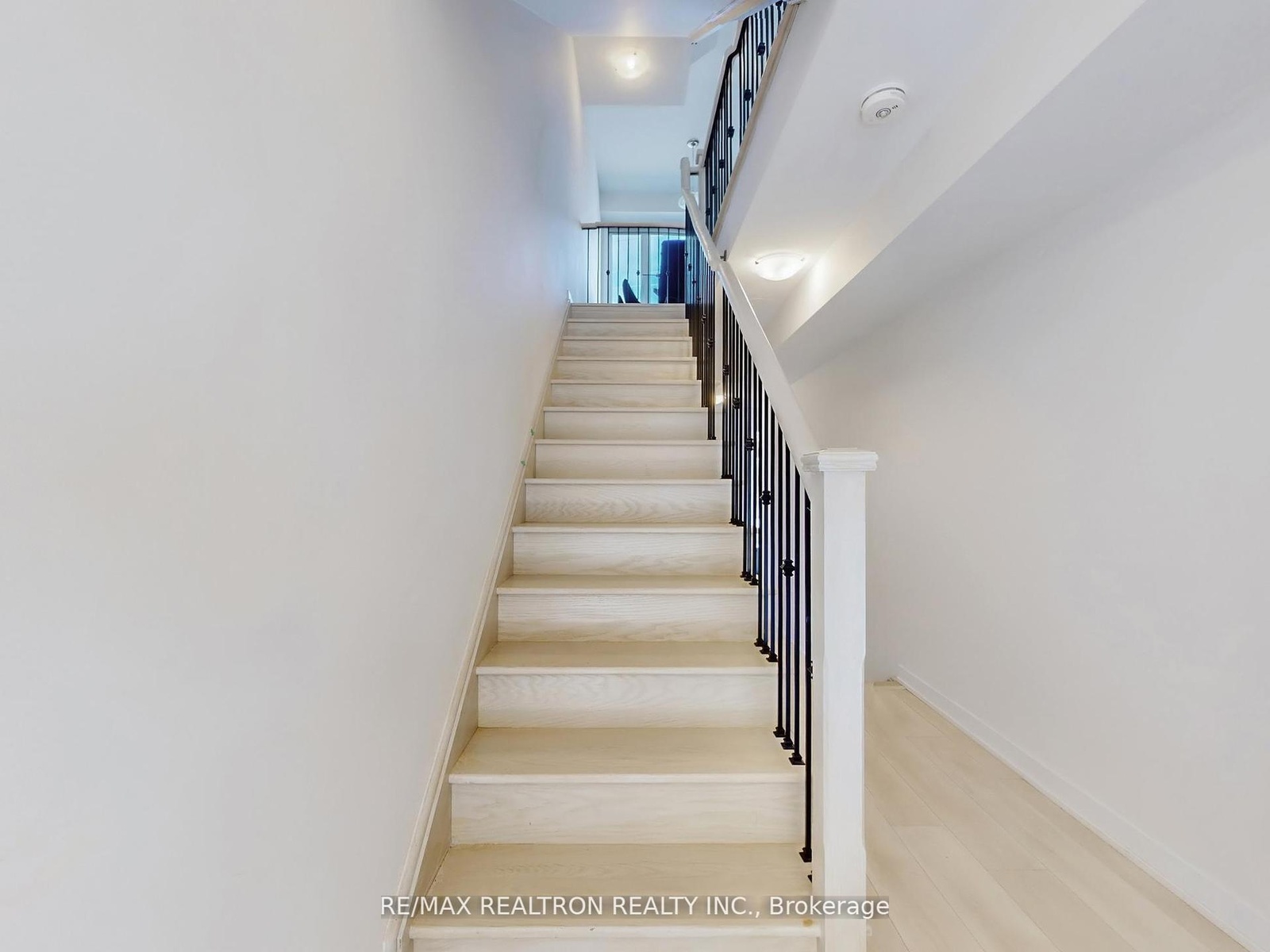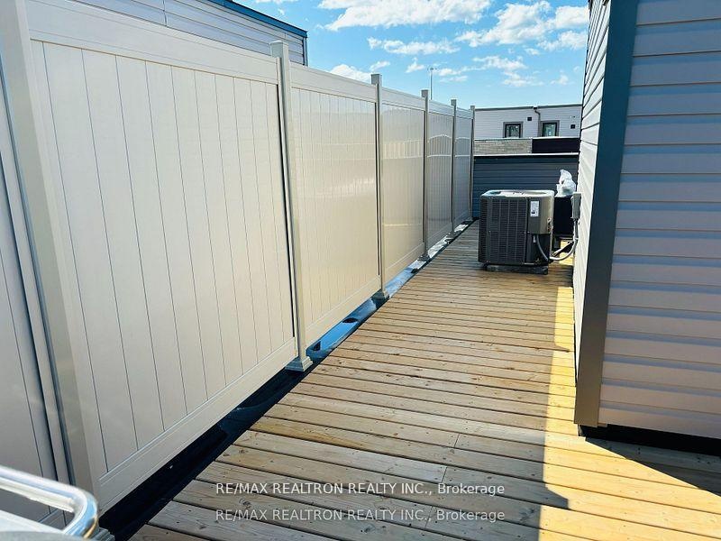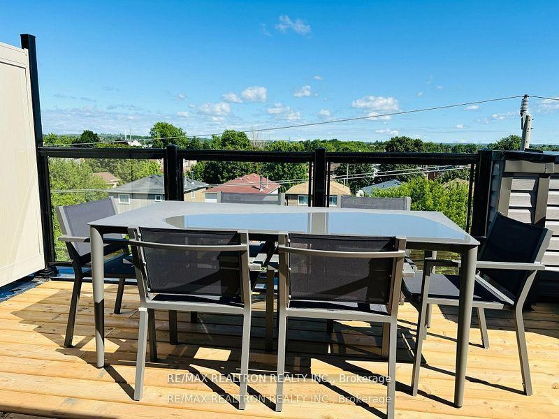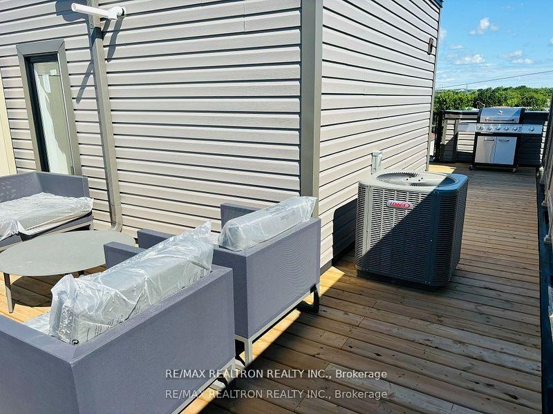 This stunning townhouse in City walk, Pickering, offers luxurious living with its modern finishes, functional layout, and expansive rooftop terrace. Here are the key features: Location: 1865 Pickering Parkway, Pickering, ON L1V 0H2, in the Village East neighborhood. Property Type: Condo Townhouse, 3-storey. Size: 1705 sq ft, lots of upgrades, one of the largest floor plans in the area. Bedrooms: 3. Bathrooms: 2.5. Rooftop Terrace: 410 sq ft, fully furnished with stunning panoramic views. Features and Amenities - Main Floor: Welcoming entrance with double closets, bonus den perfect for home office or rec room. Second Level: Sun-filled open-concept living and dining area with walk-out to balcony, upgraded gourmet eat-in kitchen with stainless steel appliances. Upper Level: Carpet-Free: 3 generously sized bedrooms, primary bedroom retreat with 4pc ensuite bath and large walk-in closet. Parking: Garage and parking for 2 vehicles. Amenities: Close to 401, Walmart & other major stores: Visitor parking, public transit, schools, hospital, park, and place of worship nearby*Additional Information. Maintenance Fees: $285.68. Heating: Forced air, natural gas. Cooling: Central air conditioning, air exchanger. Exterior Finish: Brick facing. Flooring: Laminate.