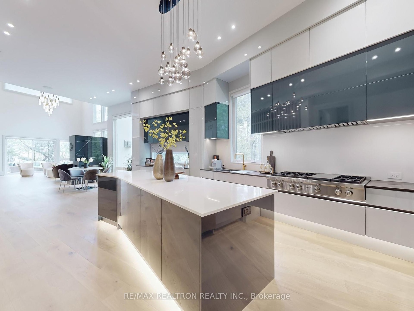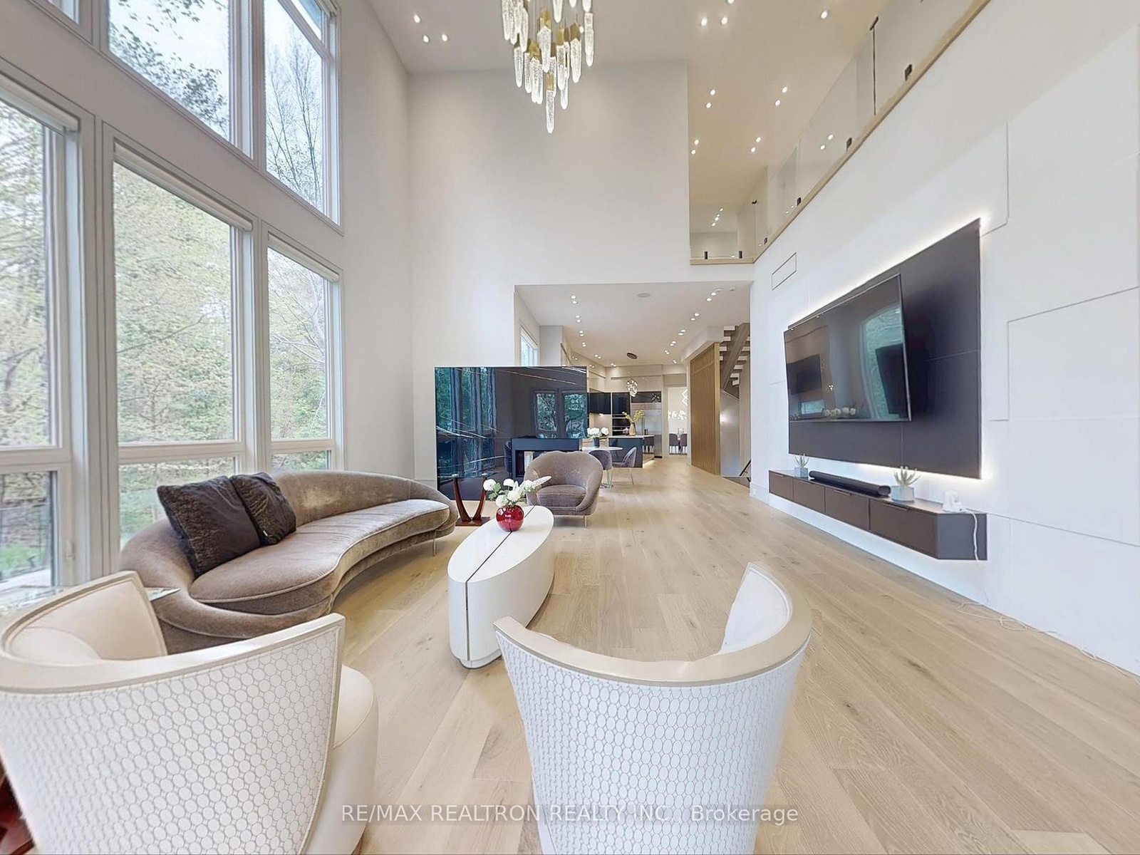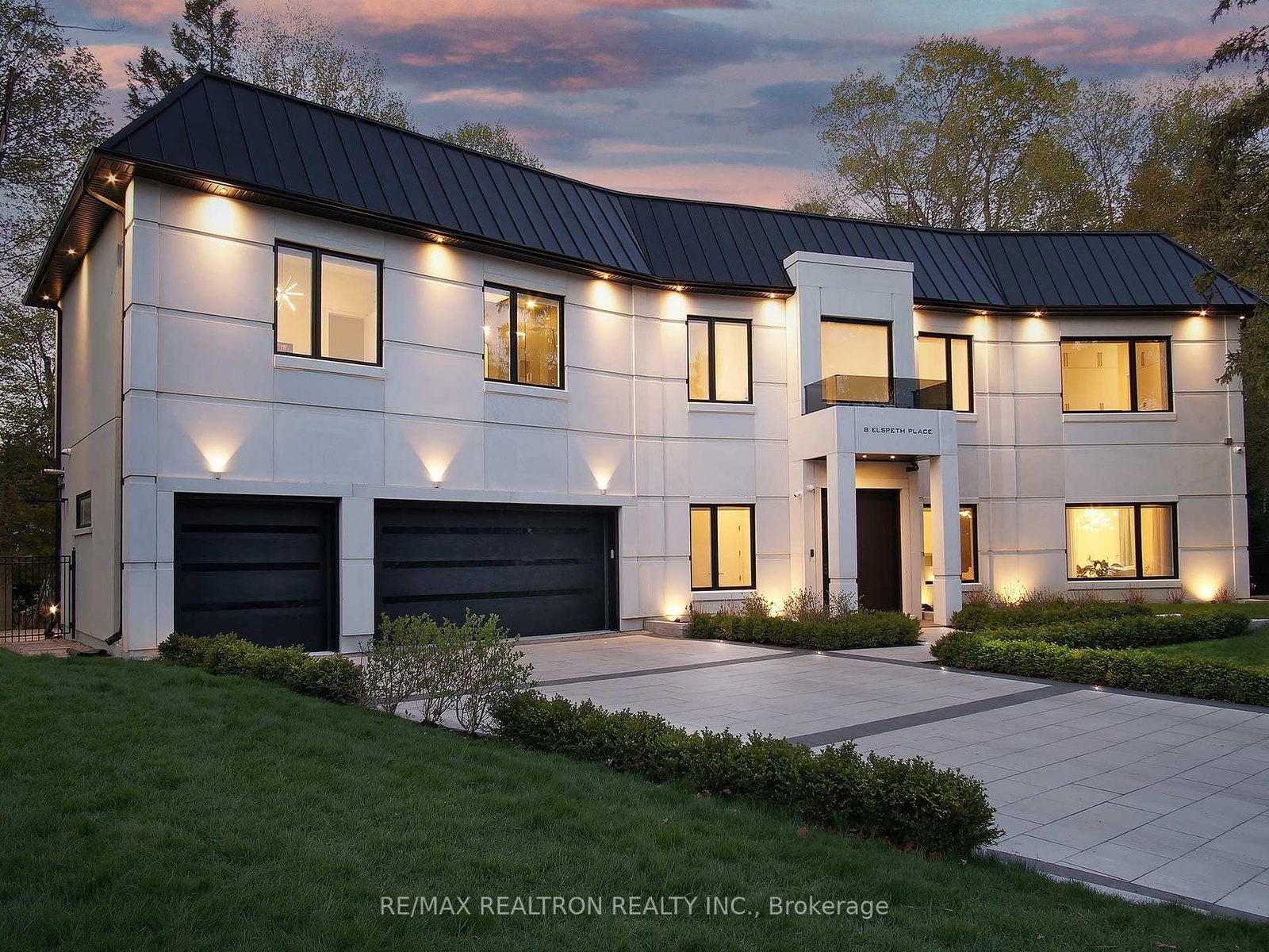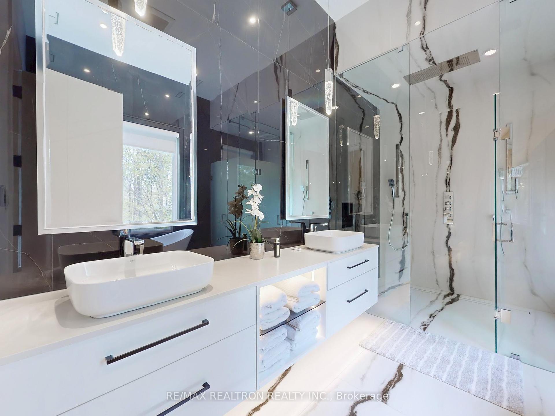 Introducing 8 Elspeth Place, a newly constructed *RAVINE LOT* luxury estate nestled on the prestigious Grandview enclave of Markham. Situated at the end of a tranquil cul-de-sac and backing onto a serene ravine, this architectural masterpiece offers over 8,200 sq ft of meticulously designed living space on a 0.5-acre lot. The exterior showcases elegant pre-cast concrete construction, blending timeless sophistication with durability. The main floor boasts12-foot ceilings adorned with exquisite chandeliers, while a grand 24-foot raised ceiling enhances the home's opulence. Designed for seamless modern living, the entire home features fully integrated smart technology, including Control4 automation for lighting, security, climate control, audio, and more accessible from your phone or built-in touchscreens throughout the house. The chef's kitchen is equipped with top-of-the-line Wolf and Sub-Zero appliances, complemented by a separate dirty kitchen for effortless entertaining. The residence features four spacious bedrooms upstairs, each with its own ensuite bathroom showcasing premium finishes and fixtures. An additional two bedrooms in the basement, one with an ensuite, provide ample space for family and guests. Additional highlights include a main floor office, a three-car garage with a car lift for luxury vehicles, and a three-lane heated driveway accommodating up to 12 cars. The basement is an entertainer's paradise, featuring a state-of-the-art gym, sauna, steam shower, home theater with surround sound and custom leather recliners, a recreation room, and a bar with a walk up to the ravine. This exceptional property combines unparalleled craftsmanship with cutting-edge smart home amenities, offering a lifestyle of sophistication, comfort, and tranquility.