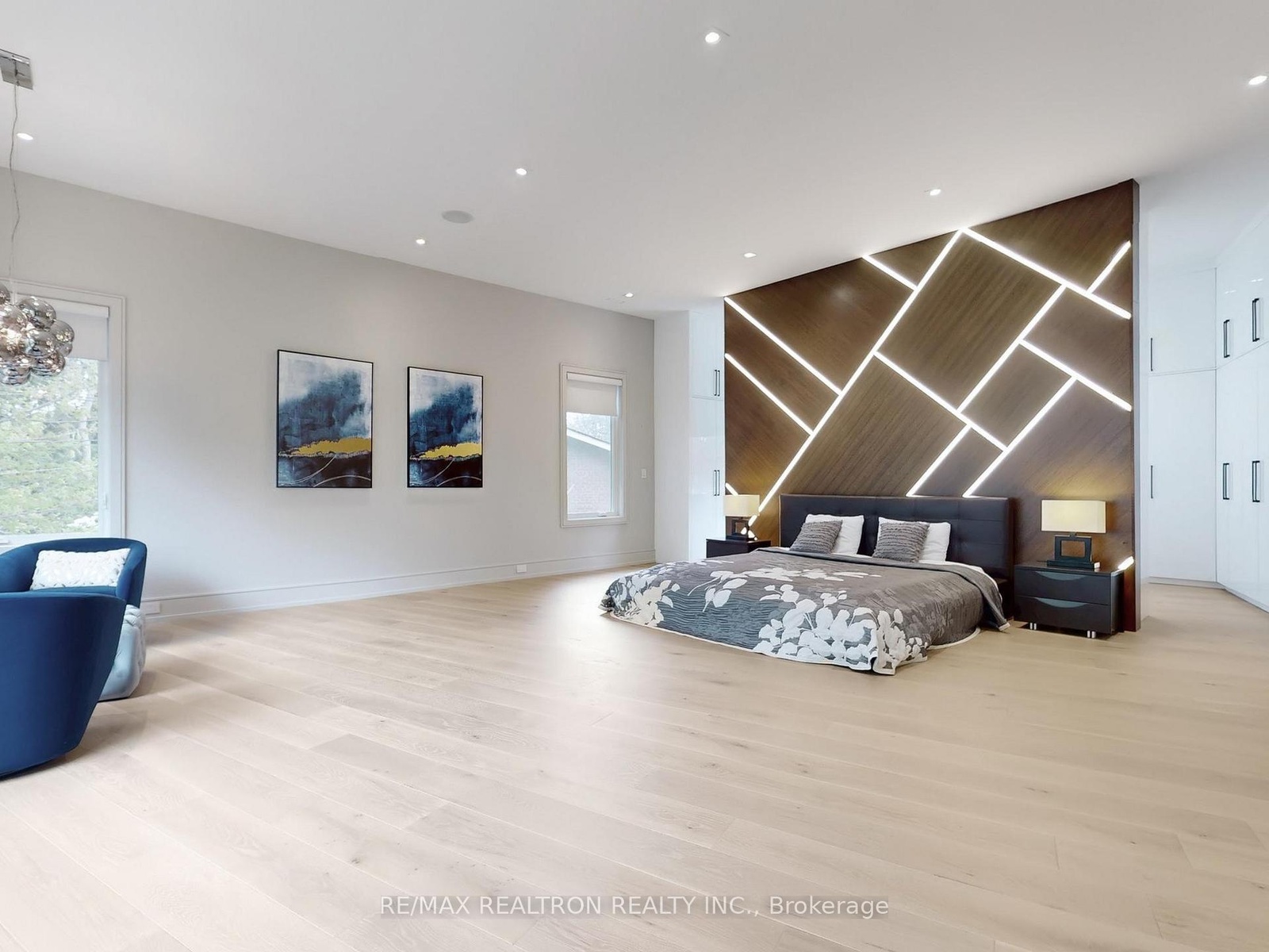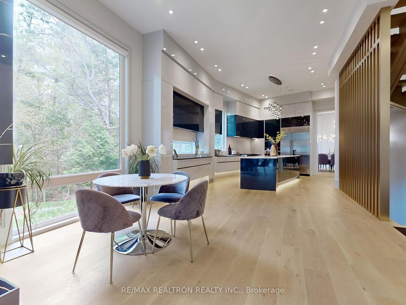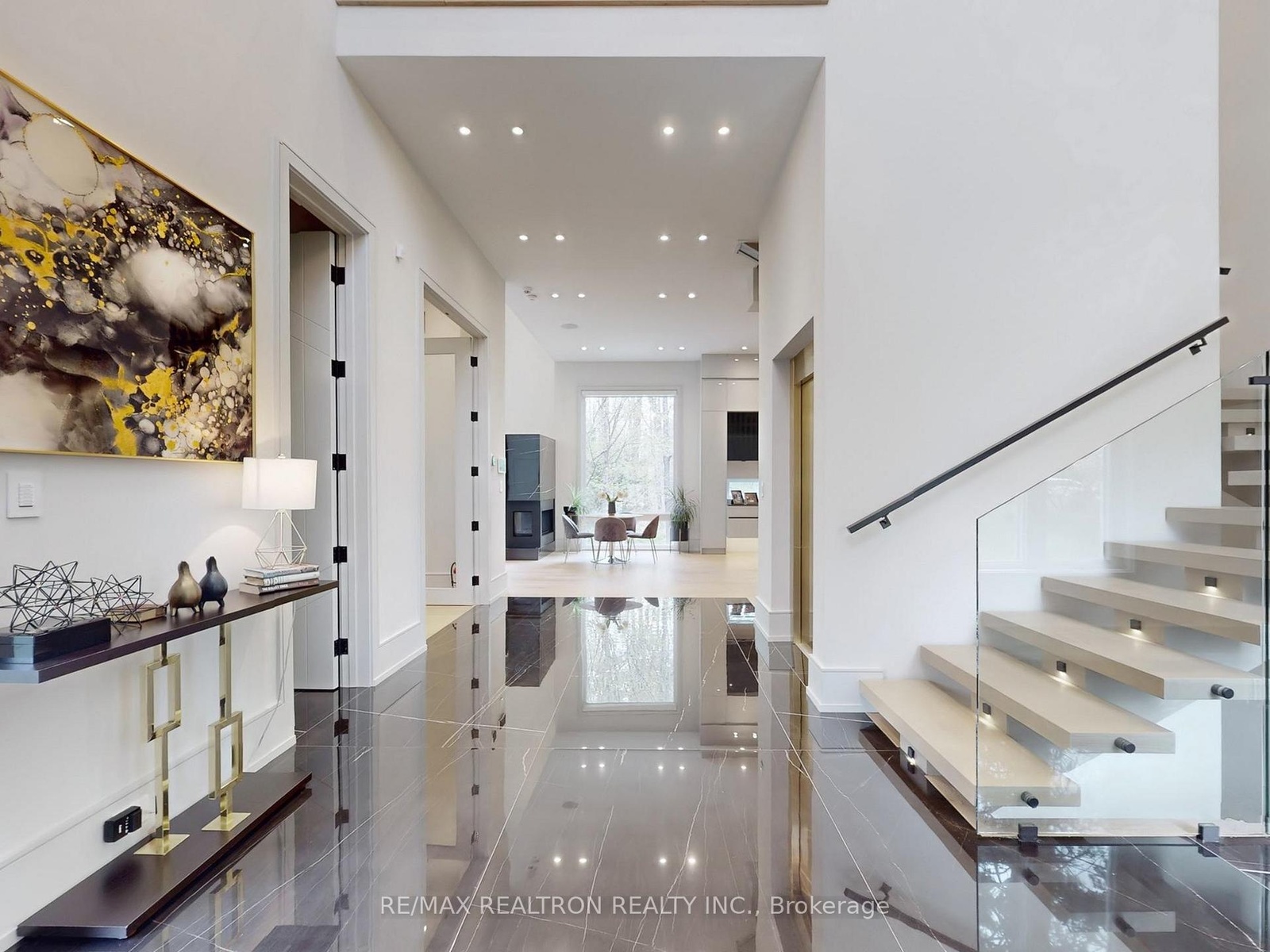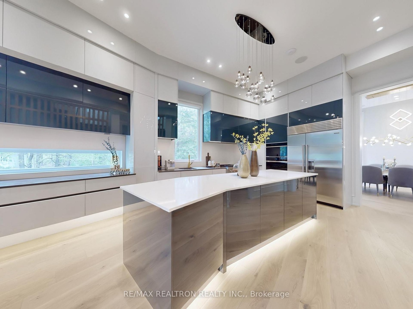 Introducing 8 Elspeth Place, a newly constructed *RAVINE LOT* luxury estate nestled on the prestigious Grandview enclave of Markham. Situated at the end of a tranquil cul-de-sac and backing onto a serene ravine, this architectural masterpiece offers over 8,200 sq ft of meticulously designed living space on a 0.5-acre lot. The exterior showcases elegant pre-cast concrete construction, blending timeless sophistication with durability. The main floor boasts12-foot ceilings adorned with exquisite chandeliers, while a grand 24-foot raised ceiling enhances the home's opulence. Designed for seamless modern living, the entire home features fully integrated smart technology, including Control4 automation for lighting, security, climate control, audio, and more accessible from your phone or built-in touchscreens throughout the house. The chef's kitchen is equipped with top-of-the-line Wolf and Sub-Zero appliances, complemented by a separate dirty kitchen for effortless entertaining. The residence features four spacious bedrooms upstairs, each with its own ensuite bathroom showcasing premium finishes and fixtures. An additional two bedrooms in the basement, one with an ensuite, provide ample space for family and guests. Additional highlights include a main floor office, a three-car garage with a car lift for luxury vehicles, and a three-lane heated driveway accommodating up to 12 cars. The basement is an entertainer's paradise, featuring a state-of-the-art gym, sauna, steam shower, home theater with surround sound and custom leather recliners, a recreation room, and a bar with a walk up to the ravine. This exceptional property combines unparalleled craftsmanship with cutting-edge smart home amenities, offering a lifestyle of sophistication, comfort, and tranquility.