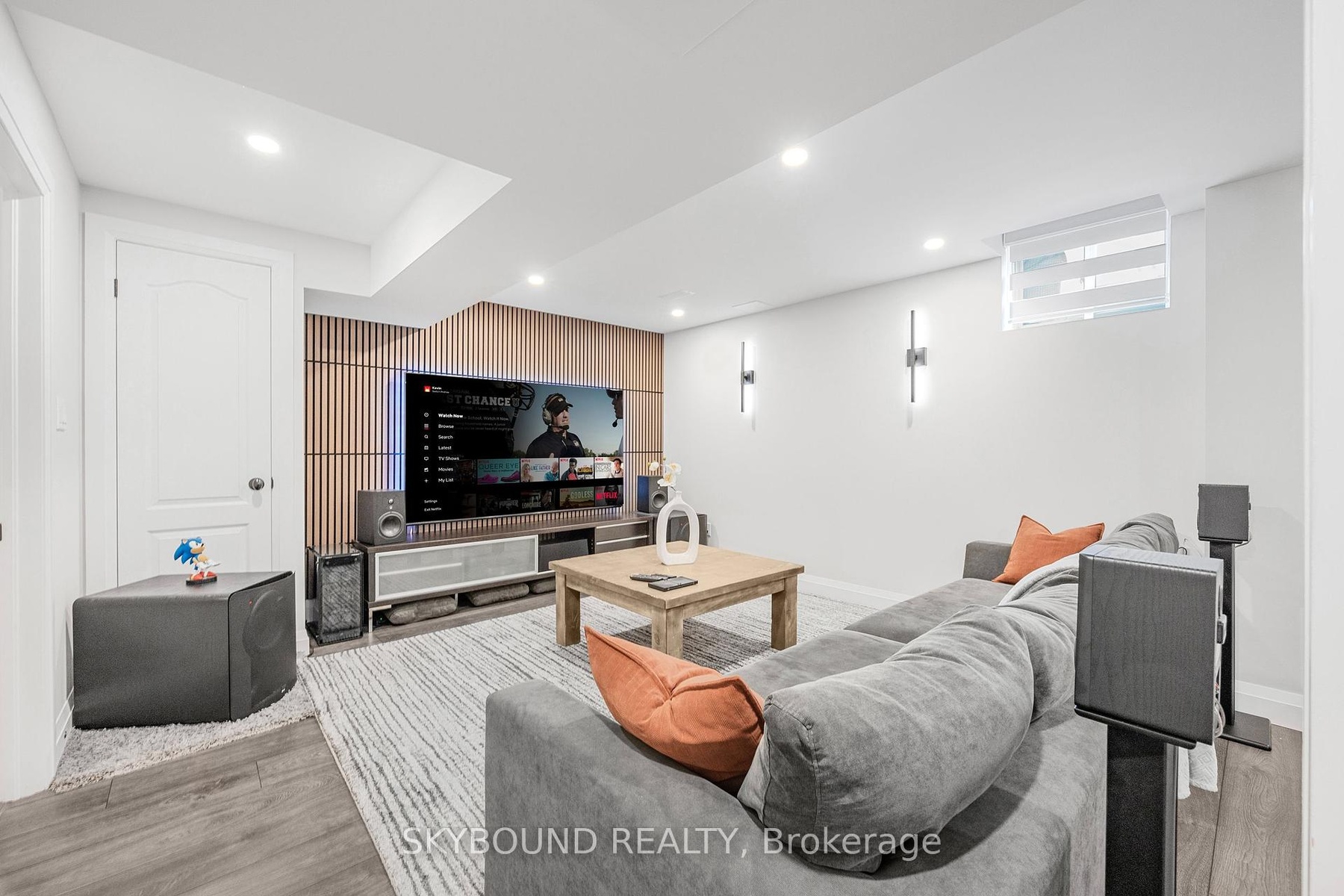 DescriptionAbsolutely Stunning, Magnificently Renovated Family Home In Alton Village with Over $200K in Upgrades! This open-concept gem features a custom chef inspired kitchen with GE Café Series appliances, quartz counters & full-height quartz backsplash, feature wall with a stylish electric fireplace. Enjoy engineered hardwood plank flooring throughout main & second floor with matching oak staircase & iron pickets, smooth ceilings on main floor and bsmt, pot lights and upgraded casings and baseboards.The second-floor media room offers a built-in entertainment unit and walkout to a balcony overlooking front yard. The spacious primary suite includes his & hers closets plus a walk-in, feature wall, and a luxurious 5-pc ensuite with oversized glass shower. Beautifully finished basement with 3-pc bath and modern touches offering 2 feature walls plus additional storage and cold cellar. Outside: fully fenced professionally landscaped lot, exposed aggregate concrete front porch, walkway and patio, pergola, garden shed, iron door inserts in front and second level balcony doors, insulated garage doors & EV outlet ready to charge your electric vehicle. Close to schools, shopping, parks, and Hwys 407, 403 & QEW!!! This gorgeous home shows like a builders model home!!Virtual Tour: https://my.matterport.com/show/?m=WN1XLcayBqGAmenities- Auto Garage Door Remote