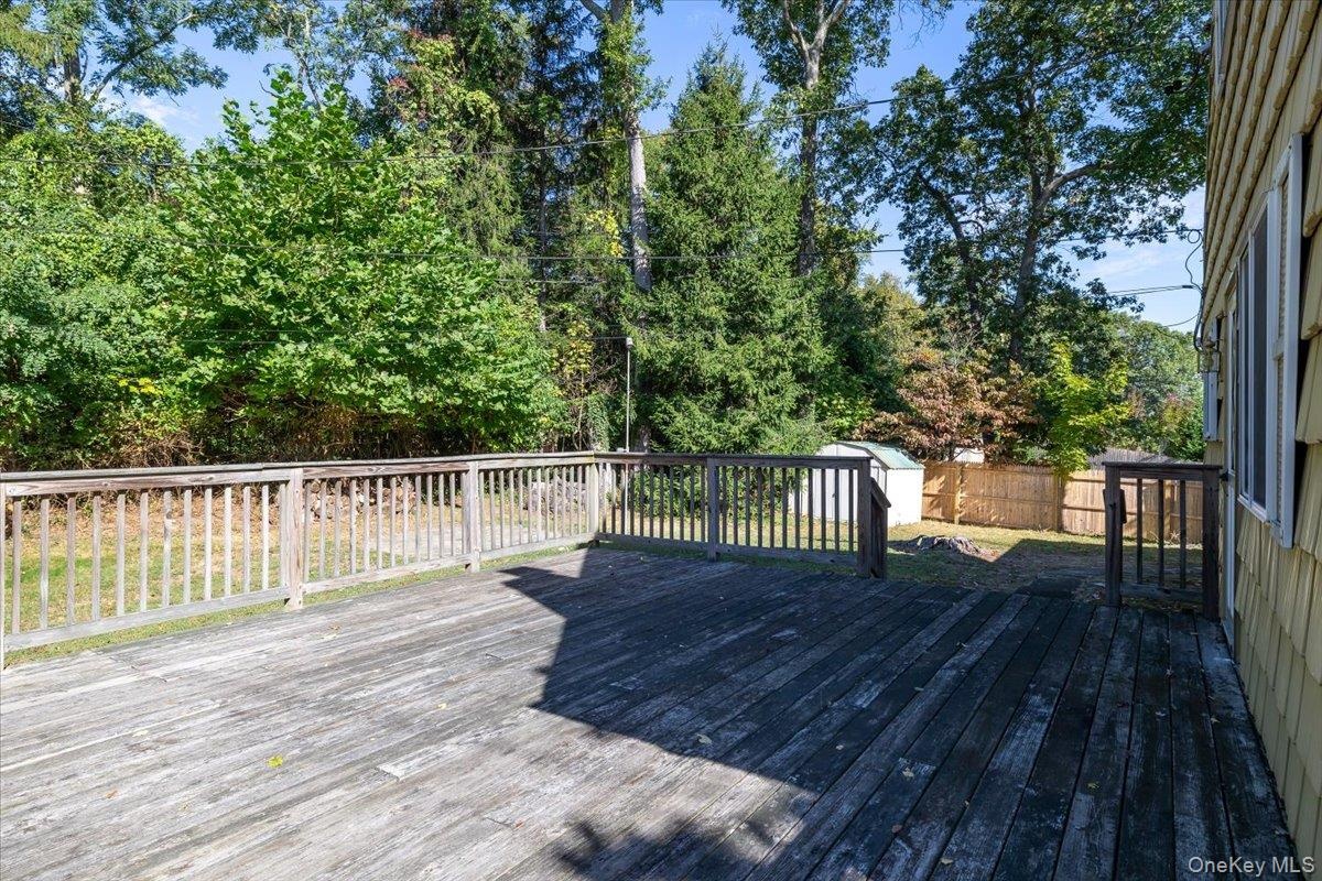 This warm and inviting 5 bedroom, 1.5 bath farm ranch home is located on .26 acres in beautiful Kings Park. It features open concept living room and dining room. The spacious eat in kitchen with new faux wood luxury vinyl flooring, offers a cozy wood burning fireplace, and leads to a wood deck with private backyard, perfect for entertainment! All three first floor bedrooms have wood floors under the carpets, one of them being the primary bedroom which offers an ensuite powder room. There is also a full bathroom with tub on the first floor. The second floor boasts freshly painted bedrooms. The large hall storage space/ closet is perfect for a possible future conversion to a bathroom. This second level would be great as a primary bedroom suite, office, guest or exercise room. Convenient one car garage with entrance into partial basement.