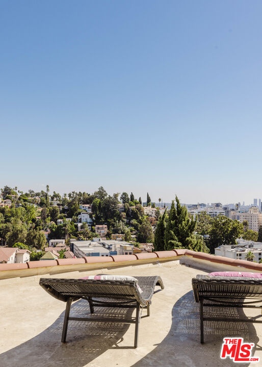 Immersed in the fabric of Los Angeles, this hillside Mediterranean jewel offers numerous lounging decks and rooftop terraces with views of iconic landmarks. This storied duplex comprises both 2039 and 2041 Glencoe Way and was previously owned by Theo Wilson, a trailblazing journalist for the Los Angeles Times and New York Times. Experience a dreamy, enchanting lifestyle that only a home of this original character can provide, with rich period aesthetic details preserved inside and out. Vivid color complements moody hues to inspire deep thought and creativity. At 2041, enjoy authentic Spanish terra cotta tile floors, stucco fireplace, and built-ins in the delightful living room with French doors that open to the front patio. The kitchen is warm and inviting with a subway tile backsplash, aegean blue cabinetry, stainless-steel appliances, and bar ledge. The formal dining room, with its rich wood floors, also has French doors to the outside. A wrought-iron staircase leads to the primary bedroom with picture windows framing sweeping views of the city, and secondary bedrooms and bathrooms have built-ins and period details. One of the bedrooms has its own private entrance, offering added flexibility and privacy. There is also an office/gaming room with vaulted ceilings with exposed beams surrounded by striking vistas of treetops and hillsides. The living room of 2039 features an original 1926 brick fireplace, entertainer's bar, charming bookcase, and lofty ceiling with exposed beams, with direct access to a spacious patio perfect for outdoor gatherings. The eat-in kitchen has been extensively and beautifully updated with copper hardware, open shelving, bright subway tile backsplash, an abundance of cabinetry, and top-of-the-line appliances. The primary bedroom has a large skylight, French doors opening to a rooftop lounging deck, an adjacent sitting alcove with picture window, and en-suite bathroom. The secondary bedroom, currently used as an office, offers direct access to the outdoors and features its own en-suite bath. Relax, entertain, and dine al-fresco from multiple tiered patios, screened for privacy from the street, including a trellis-covered outdoor dining room with views of the hills and city. Both addresses include covered parking and an in-unit laundry. Live in one and rent out the other for a steady flow of passive income. The Hollywood Bowl is also close by, with no need for ride-share or transportation. 2039 is Luxury Exempt and therefore not subject to the limitations of rent control. Within the last five years, many updates have been made throughout; both addresses have newer water heaters, water filtration systems, and HVAC. New doors and windows come with a transferrable 10-year warranty. 2041's upgrades include a newly installed EV charging station and kitchen appliances (three years), and 2039's kitchen has updated flooring, cabinetry, lighting, and appliances (two years). Welcome!
