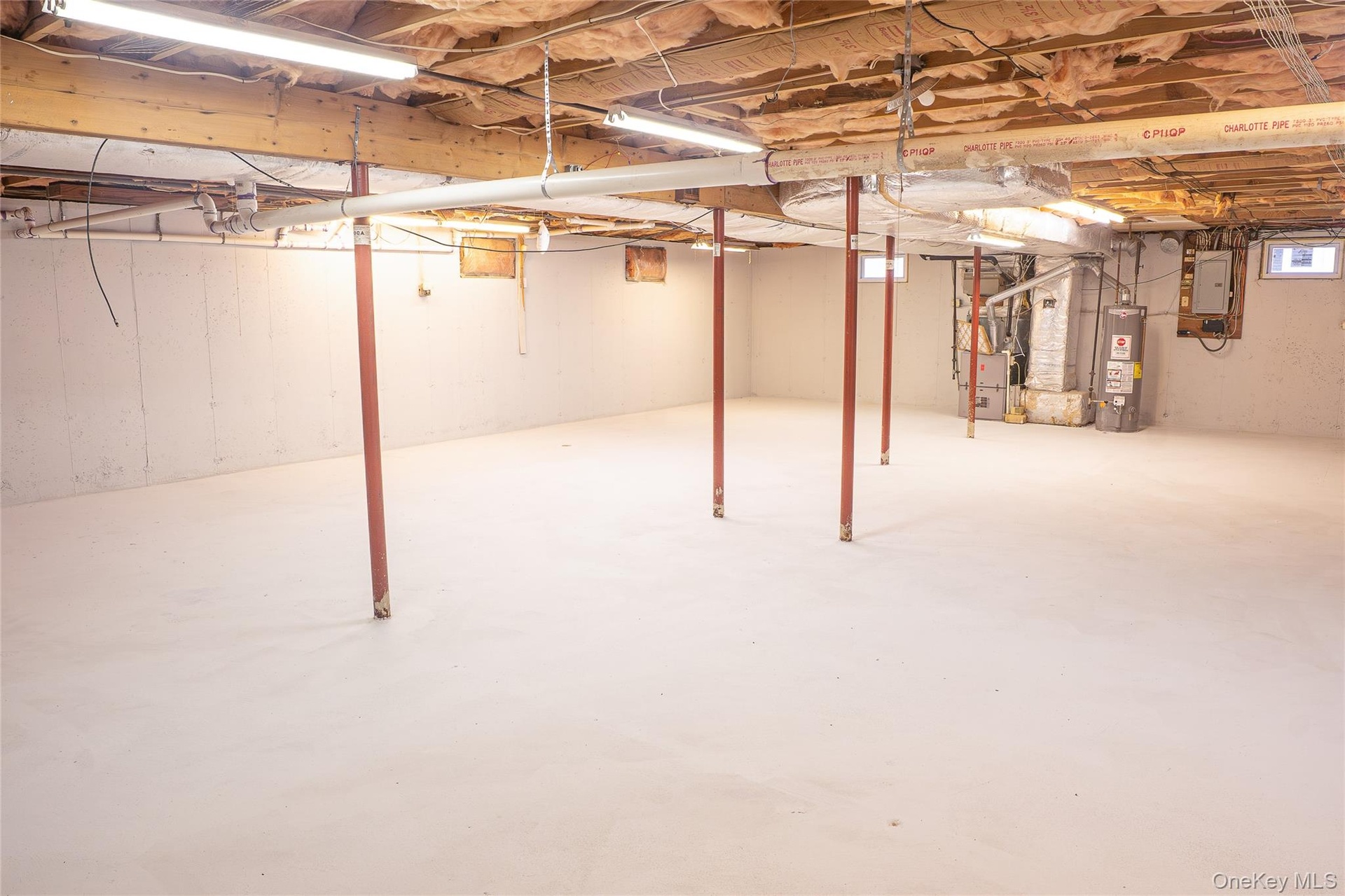 - Unfinished below grade area with gas water heater and electric panel