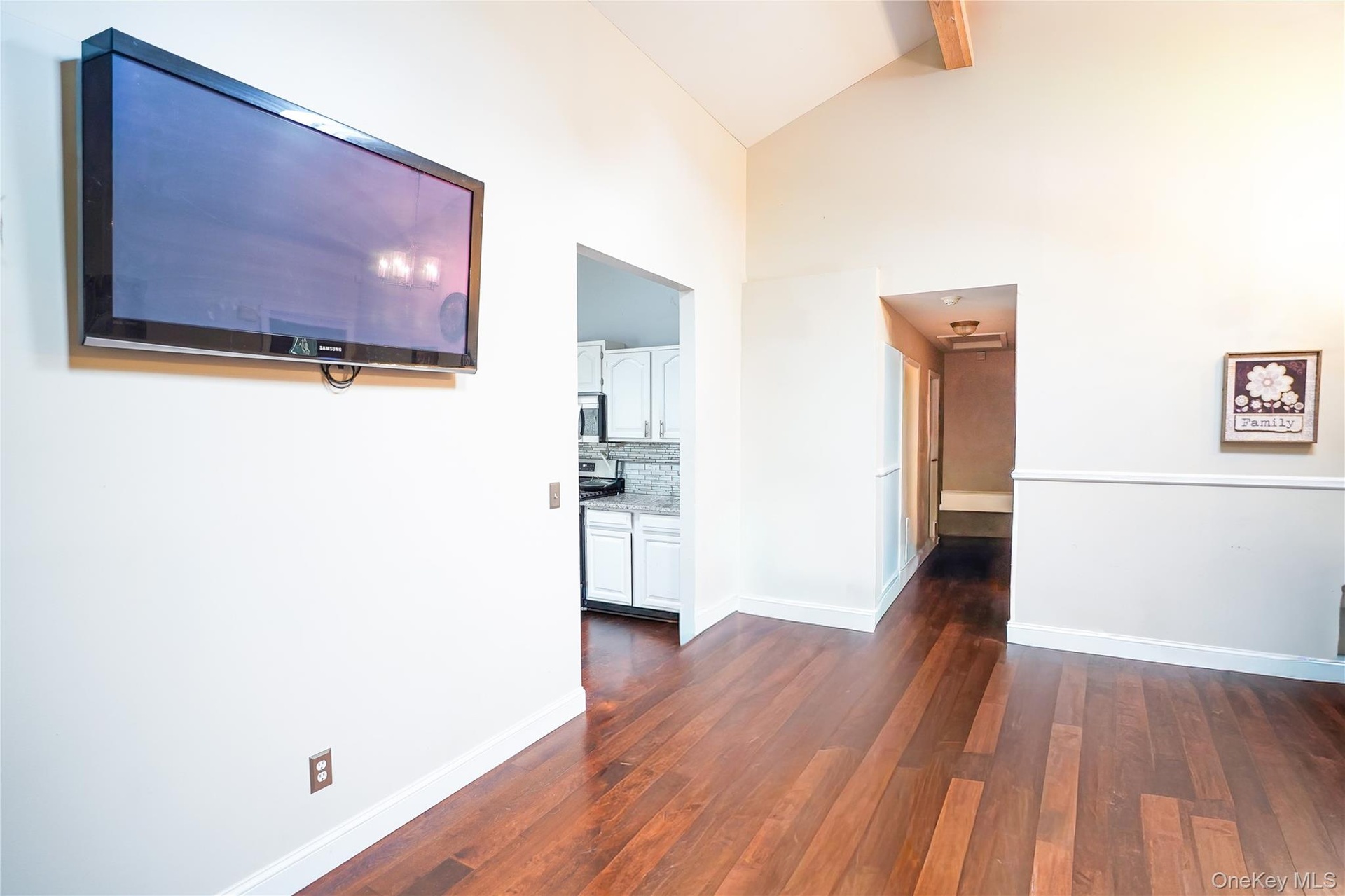 - Living room with wood finished floors and baseboards