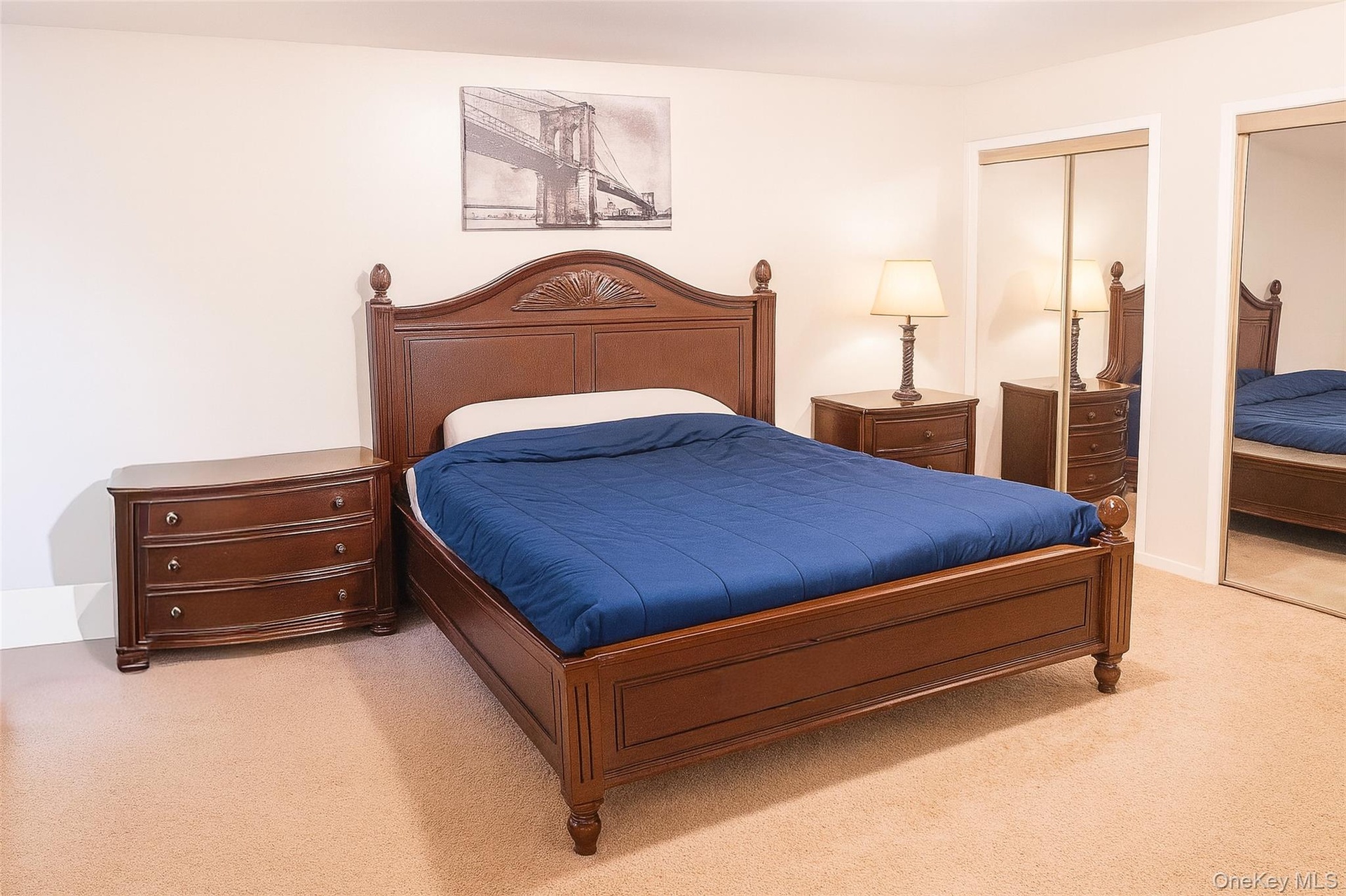 - Carpeted bedroom featuring two closets