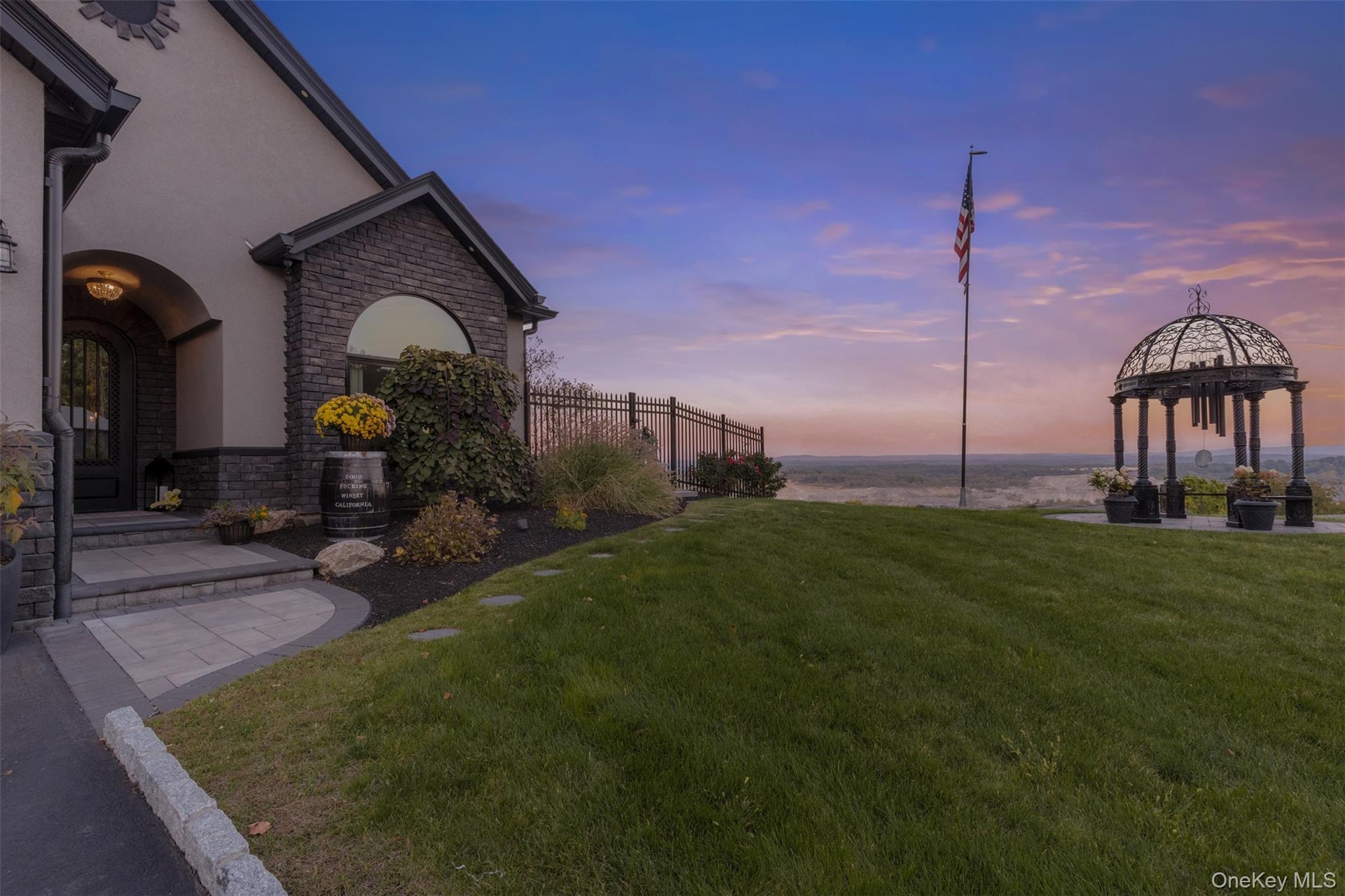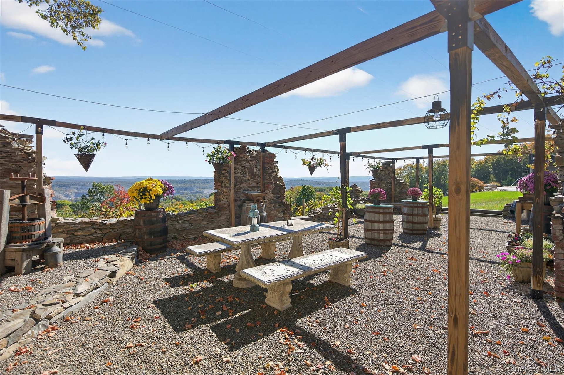 The exterior is an entertainer’s dream, spanning 3.9 acres of lush, landscaped grounds. Enjoy a resort-style inground pool with water features and slide, a stacked-stone outdoor bar with changing room and bath, a custom-built fireplace, outdoor shower, hot tub, and sauna. A secret garden retreat with its own fireplace and starlit patio offers an intimate escape, while additional highlights include a playground, vineyard with grapevines and fruit trees, detached barn, and beautifully hand-stacked stone walls. Multiple terraces, a Juliet spiral staircase with balcony, and a covered porch complete the extraordinary outdoor setting.