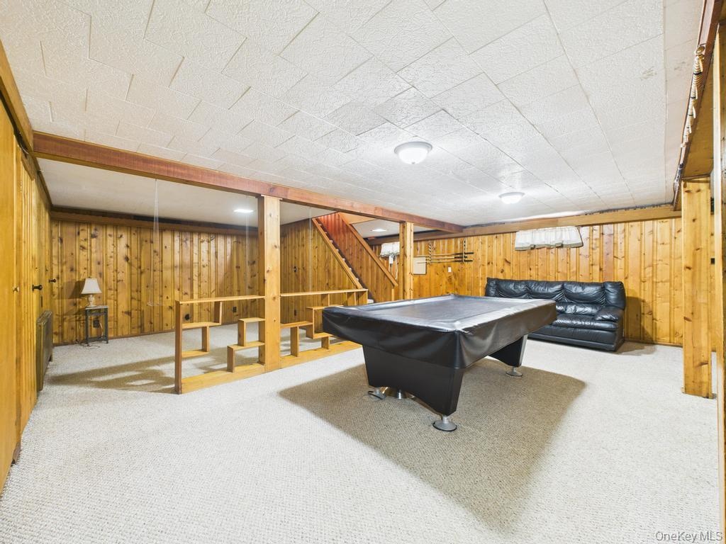 - Stairs with carpet floors, a high ceiling, and a baseboard heating unit