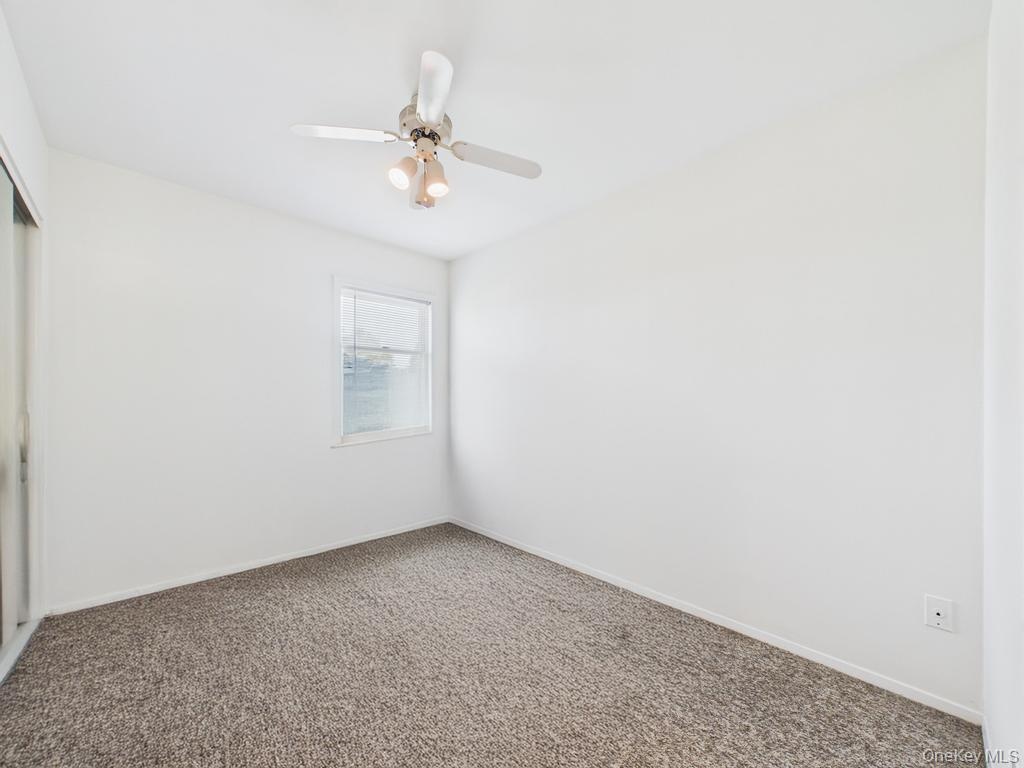 - Unfurnished bedroom featuring carpet flooring, a closet, and a ceiling fan