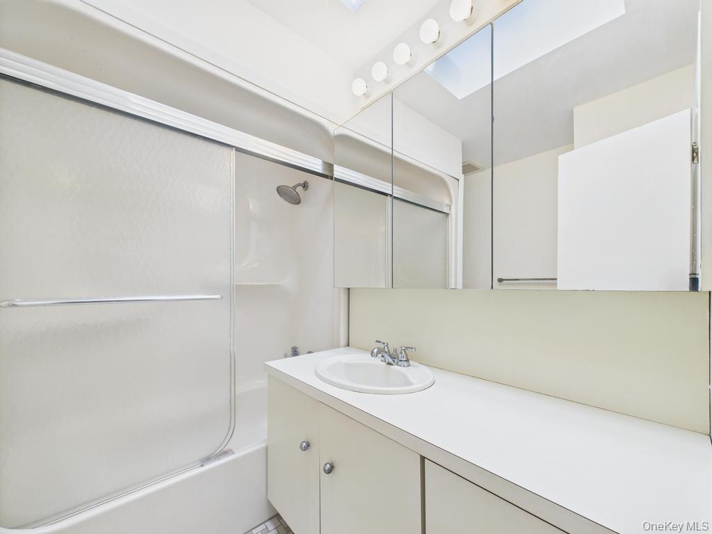 - Full bath with shower / bath combination with glass door, a skylight, and vanity