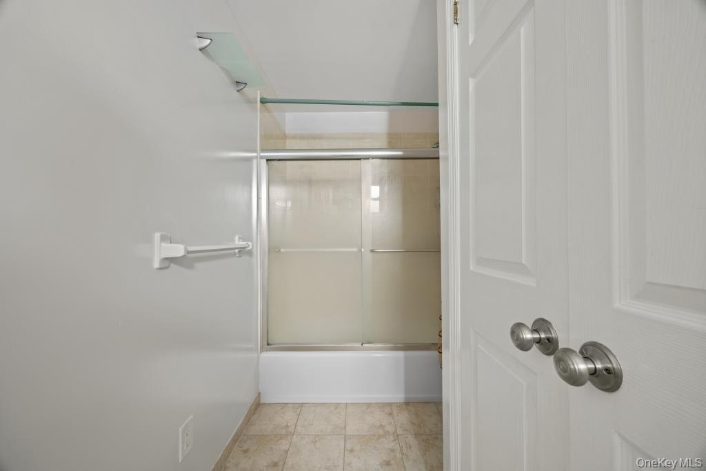 - Full bathroom featuring enclosed tub / shower combo and light tile patterned floors