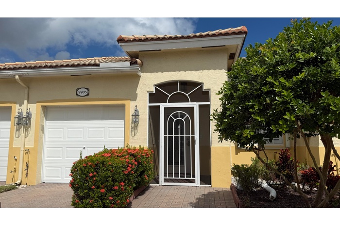 DescriptionBeautiful 2 bedroom, 2 bathroom villa with 1-car garage and peaceful garden views. This bright home features vaulted ceilings and a spacious kitchen with quartz countertops and stainless steel appliances. The split bedroom layout offers privacy, with a large primary suite including a walk-in shower and generous walk-in closet. Tile flooring runs throughout the entire home, complemented by a screened lanai and paved driveway. Additional features include a full-size washer and dryer and accordion storm shutters for peace of mind.Baywinds is a gated, resort-style community offering an active clubhouse with pool, fitness center, tennis, and pickleball. Conveniently located near shopping, dining, Palm Beach International Airport, downtown attractions, and beautiful beaches.