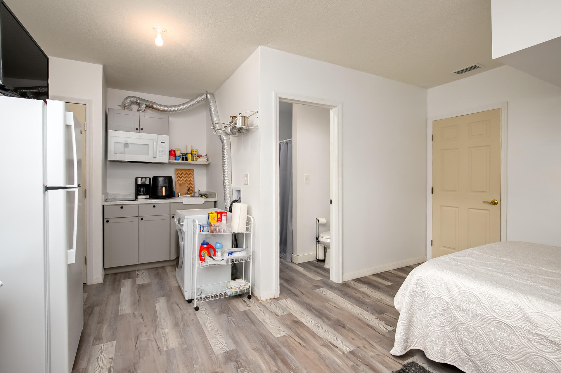 DescriptionThis 2022 home features three bedrooms, two bathrooms, a designated dining room, a den/family room, and an unpermitted studio apartment occupying two-thirds of the three car garage. The kitchen features stainless steel appliances and quartz countertops that overlook the lving room. The primary bedroom is complemented by an ensuite bathroom and a walk-in closet. A Samsung washer and dryer furnish the laundry room, which leads directly to the garage. The studio features a kitchenette and has its own private entrance. In the backyard, you'll find a concrete patio and various fruit trees - some of which are already bearing fruit! This home is conveniently located near shopping, schools, and restaurants.Please note that the washer/dryer and refrigerator in the studio aren't included.