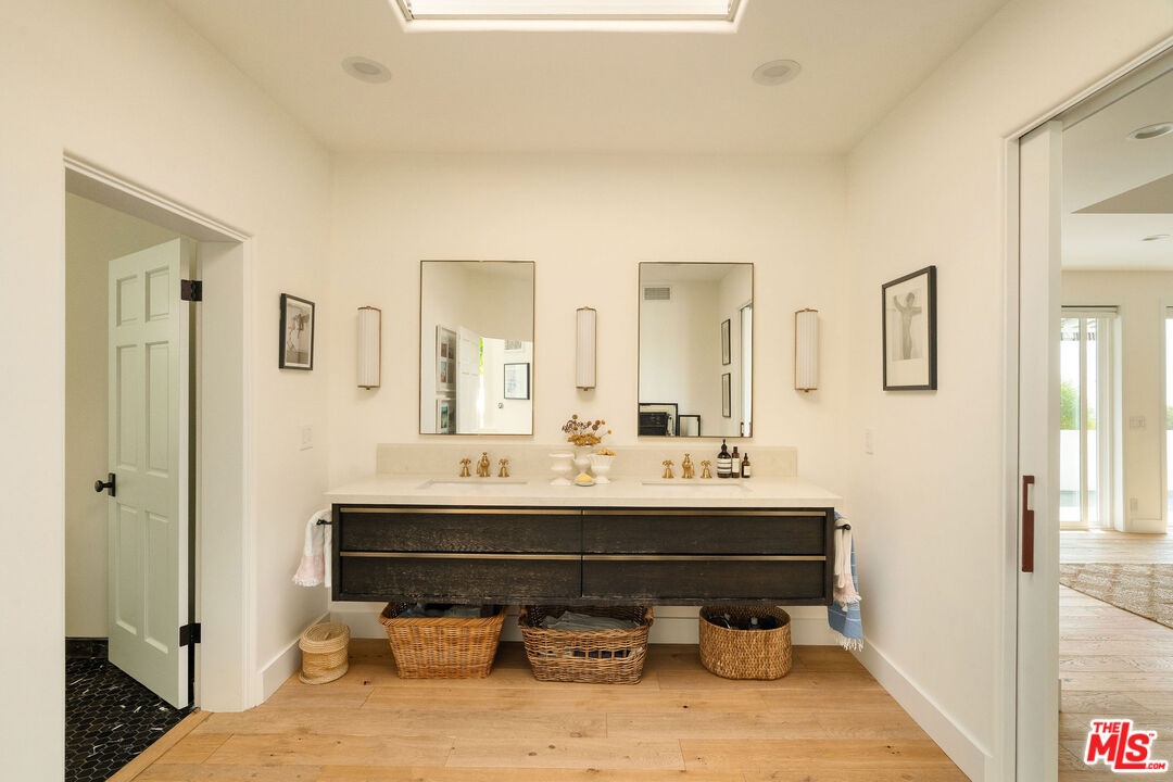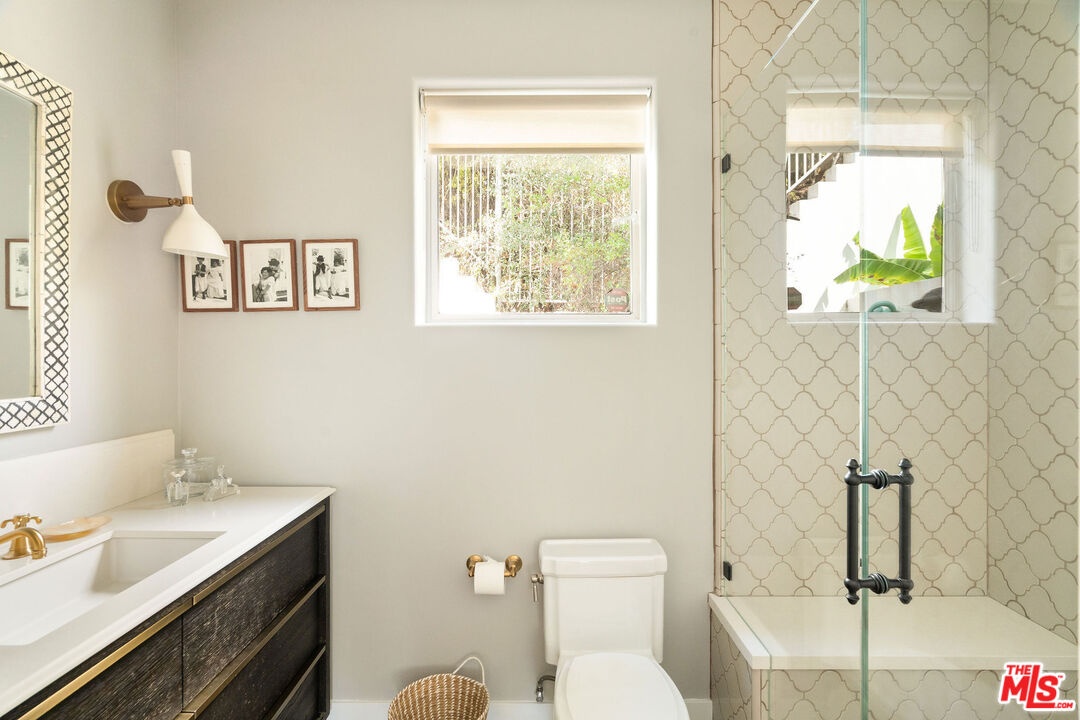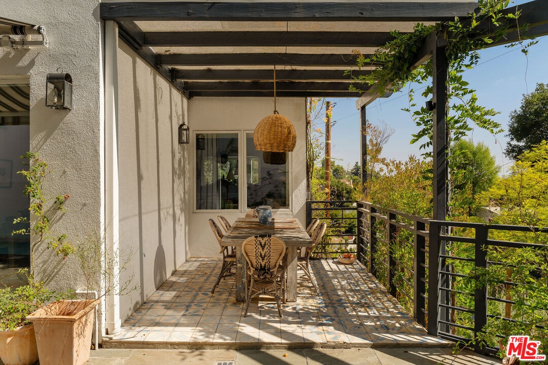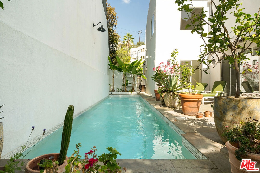 DescriptionBeautifully renovated Beachwood Canyon contemporary masterpiece! Perched above the Hollywood Reservoir, this house is an art lover's dream come true, drenched in natural light with soaring ceilings, hardwood floors, gallery-style walls, and designer light fixtures throughout. The main floor is where the entertaining magic happens, with a huge living room that opens to a wrap-around porch, built-in bar, dining room that opens to the backyard with patio and heated pool, and a gorgeous chef's kitchen with top-of-the line appliances, marble countertops, black Zelig tiled backsplash, Farrow and Ball painted cabinets, and a lovely built-in seating area. The main floor also offers a powder room and two en-suite bedrooms. Upstairs, a practical and stylish library/office leads to the jaw-dropping primary suite, which features dual closets, an incredible bathroom with dual sinks, soaking tub, and steam shower, and a second wrap-around porch offering sweeping views of the hills and Downtown LA skyline. The outdoor space not only includes the pool and multiple patios, there is also a Provence-inspired garden with charming pathways dotted with citrus trees and herbs. So much to love inside and out and a great location close to Beachwood Village and scenic hiking trails, this home offers the dream Beachwood Canyon lifestyle.NeighborhoodMore listings: